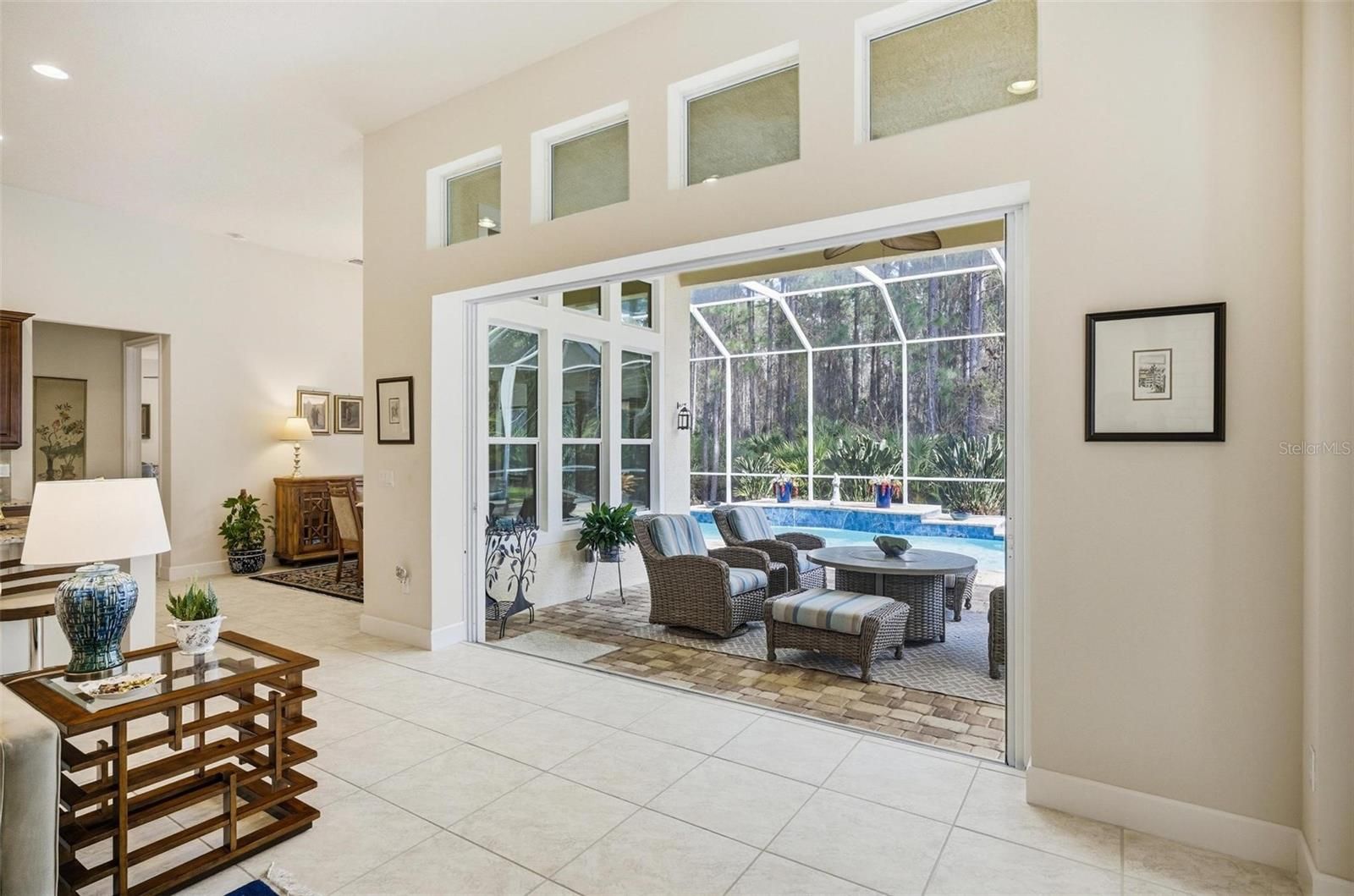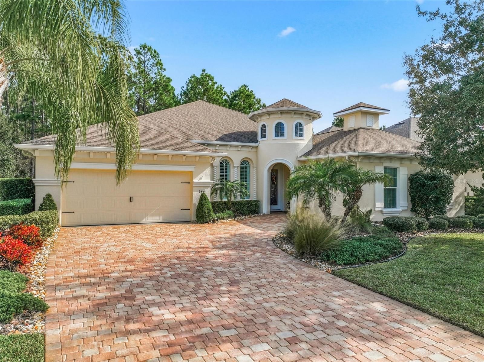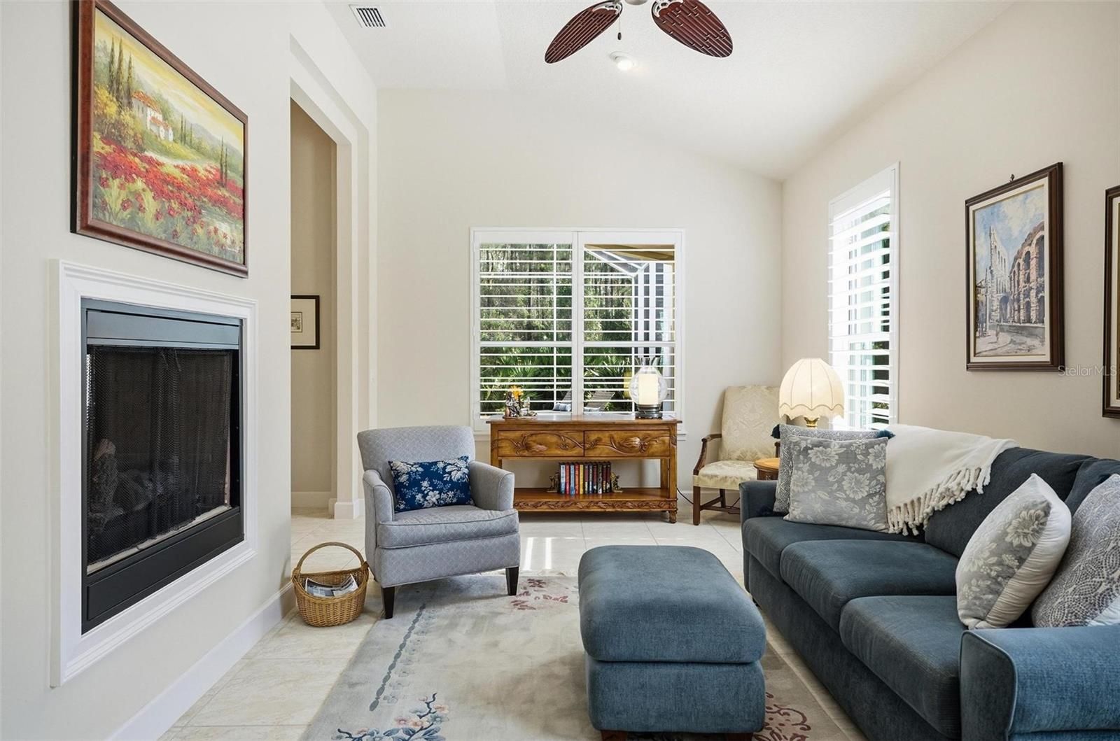 Discover this thoughtfully designed Cameron floor plan perfectly positioned on a preserved lot within the gated community of Plantation Bay. Here, elegance, privacy, and modern luxury blend seamlessly to create your own resort-style sanctuary. Featuring 3 bedrooms plus a private office, 2 baths, and a sparkling pool under a screened lanai, this home was designed for both relaxed living and effortless entertaining. Step inside to a welcoming foyer where floating cabinets add a designer touch. French doors open to a spacious office — ideal for working from home or a quiet retreat. Beyond, the open-concept living area impresses with a stunning double-sided stone electric fireplace connecting the vaulted sunroom and main living room. Triple sliders and transom windows flood the space with natural light and open fully to the lanai for true indoor-outdoor living. The gourmet kitchen is a chef’s dream, featuring 42-inch wood cabinetry, granite countertops, a 10-foot island with pendant lighting, tile backsplash, stainless steel appliances (including a new 2024 refrigerator), and a custom pantry. Next to the kitchen is the dining area with rolling shades with completes the perfect gathering space. Your primary suite is a private oasis with an ensuite bath offering dual granite vanities, a soaking tub, a separate shower as well as a large walk-in closet. The split floor plan provides two guest bedrooms and a recently remodeled bath — ideal for family or visitors. Step outside to your tranquil pool and lanai, surrounded by professional landscaping and perfect for outdoor living or al fresco dining. Additional features include tile flooring in main areas, carpeted bedrooms, new 2024 electric hybrid water heater, Culligan whole-house water softener, laundry room with 32-inch upper cabinets, front load washer and dryer with pedestals, plus three-car garage (two-car + one-car split) with epoxy floor in the main garage, seamless gutters, landscape lighting at front and back of the house and a long paver driveway. This open floorpan is perfect for entertaining in the living room, retreating in the sunroom, or relaxing in the master suite. The pool and lanai create a tranquil space crafting a haven to relax, entertain, and enjoy those special moments all day long where every day feels like vacation. Living in Plantation Bay offers optional membership access to world-class amenities — including 45 holes of private golf, 10 tennis courts, 10 pickleball courts, two resort pools, a fitness center, and two full-service clubhouses offering dining, social events, and entertainment. Membership is not mandatory and can be tailored to your lifestyle. Start living the Florida resort lifestyle today. - Schedule your private showing and experience this exquisite home for yourself. Some furnishings available for purchase — ask for details.