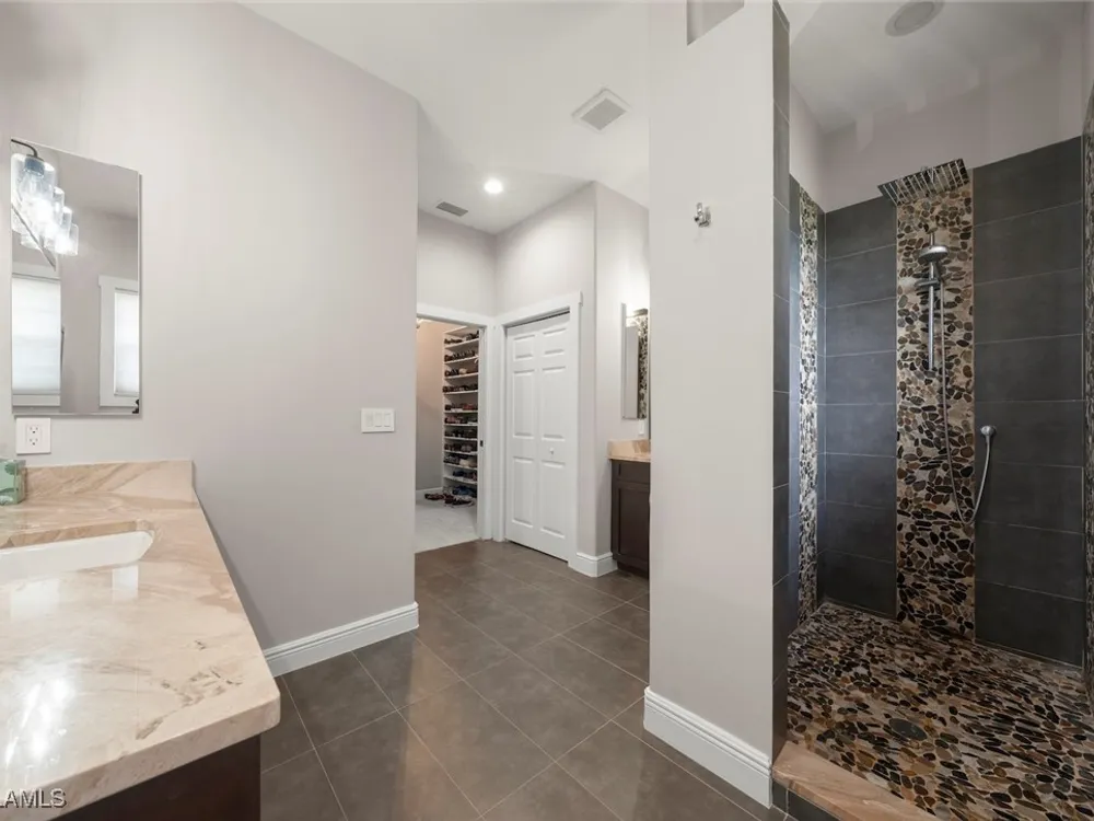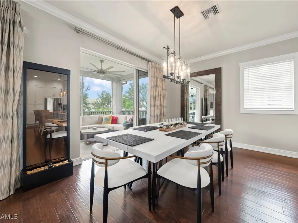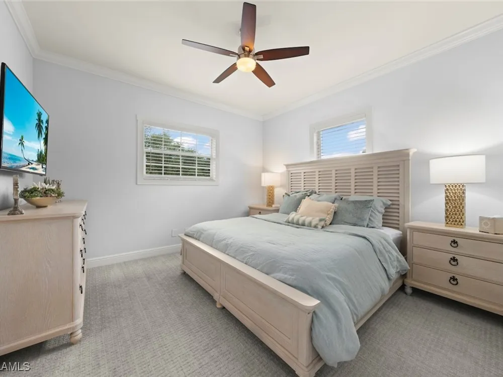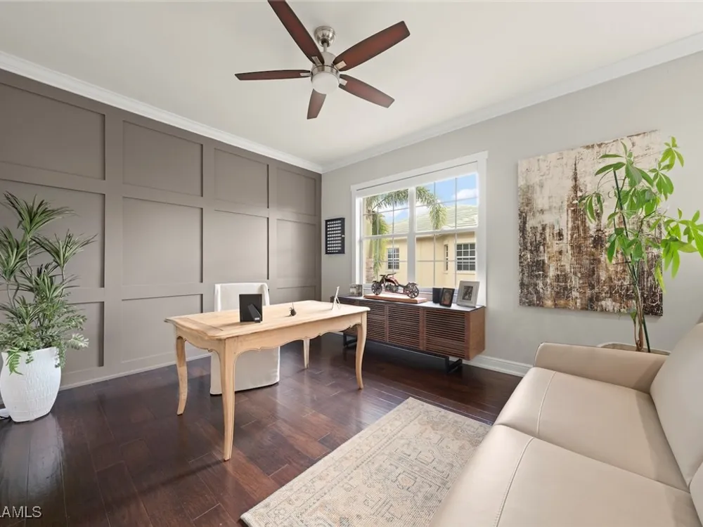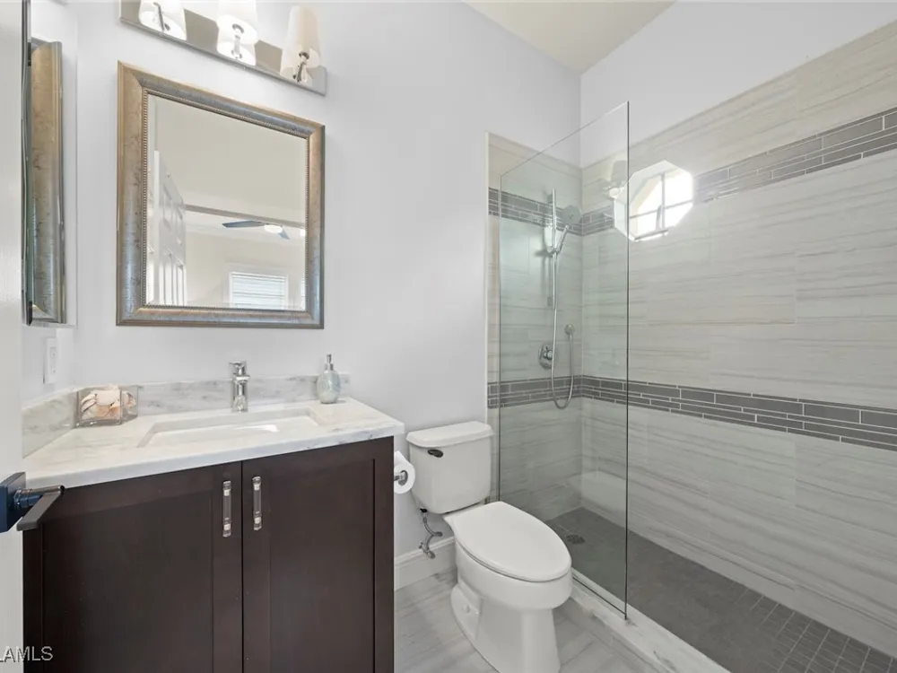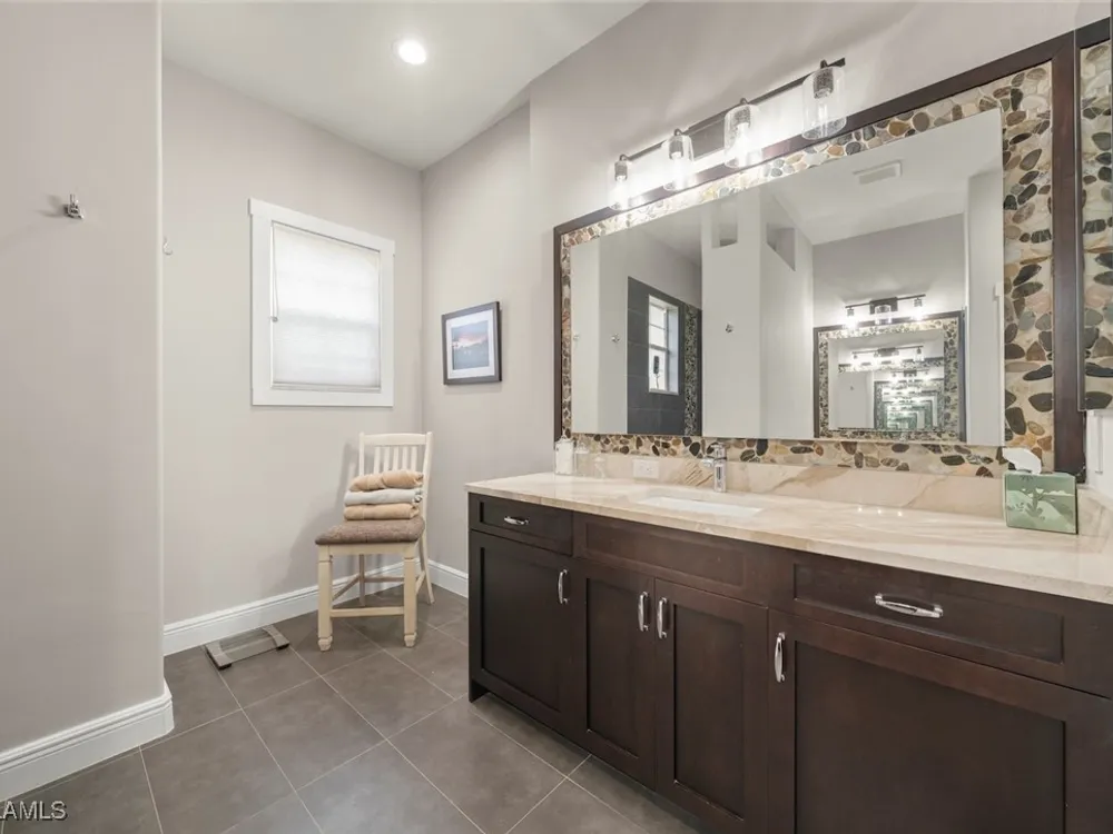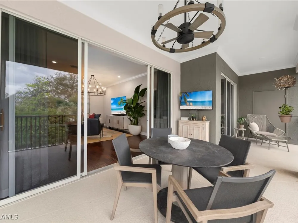 Welcome to Vintage Reserve at The Vineyards, where this beautifully renovated top-floor coach home offers over 2,300 square feet of light-filled living with 3 bedrooms, a private office, and 3 full bathrooms. Soaring ceilings, crown molding, and an open-concept design create an inviting atmosphere, complemented by a modern kitchen with white cabinetry, stainless steel appliances, sleek countertops, oversized island with seating, and a built-in beverage cooler. Rich wood flooring, updated lighting, and refined details carry throughout, while the expansive great room and primary suite open to a large screened lanai with serene preserve views. The primary suite boasts plush new carpeting, a custom walk-in closet, and a spa-inspired bath with dual vanities and walk-in shower, while the office features elegant board-and-batten accents for a sophisticated workspace. Additional highlights include a 2-car garage with brand-new epoxy flooring and abundant natural light. Vintage Reserve is a gated enclave within The Vineyards, where residents enjoy scenic walking paths, lakes, and the option to join Vineyards Country Club with two championship golf courses, tennis, pickleball, fitness center, spa, pools, and both casual and fine dining—all just minutes from Naples’ world-class shopping, dining, and white-sand beaches.
