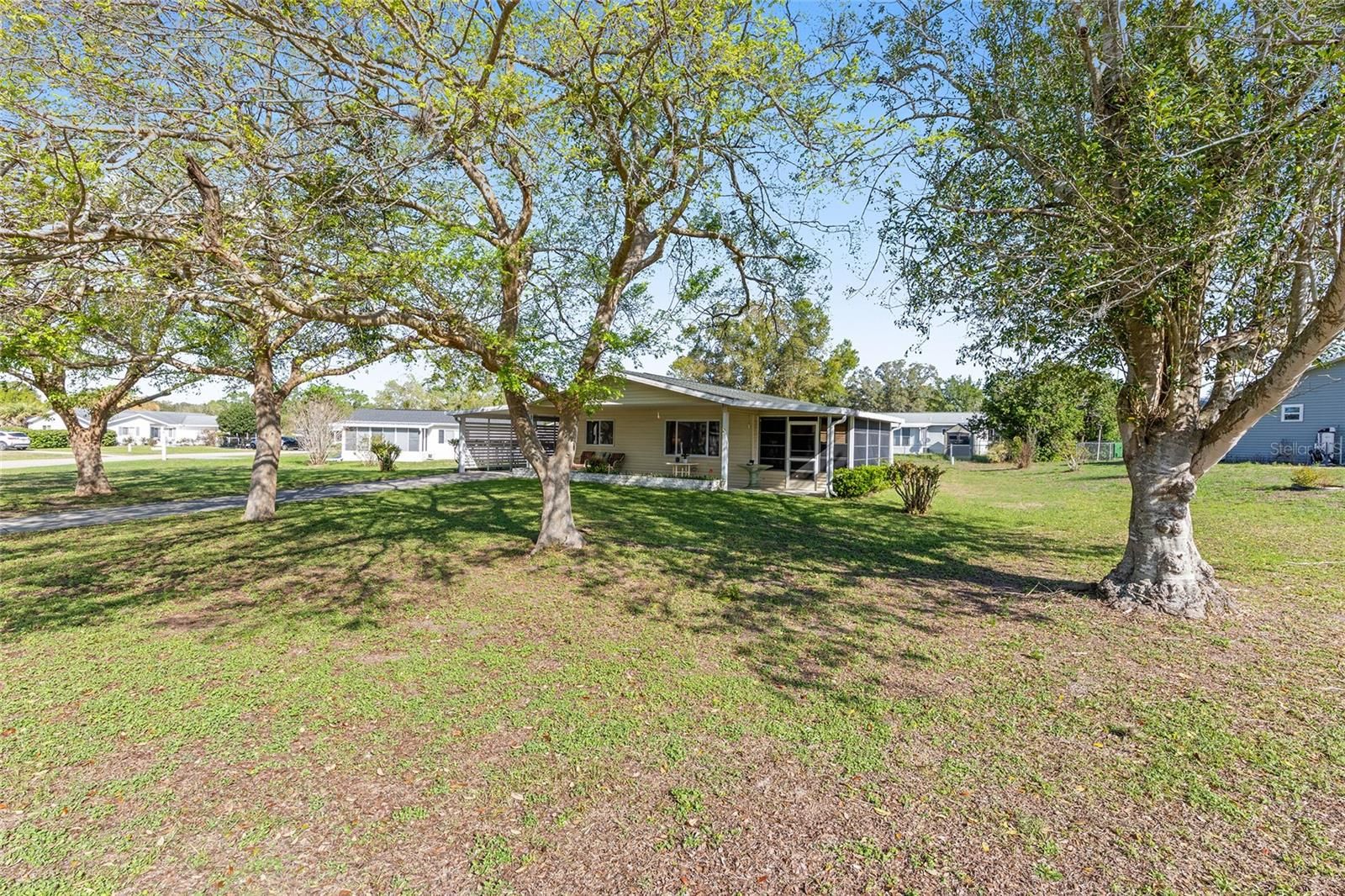 Welcome to this 2 bedroom, 2 bath home located in the desirable 55+ community of Spruce Creek II in Southwest Ocala. Situated on a spacious .26 acre lot with beautiful mature trees in the front yard, this 1,352 square foot home offers a great combination of comfort, functionality, and location. Built in 1988, the home features several important updates, including a roof replaced in 2016 and a drainfield updated approximately one year ago. The carport area includes a convenient laundry room along with additional storage space. Enjoy extra living space in the enclosed lanai with vinyl windows, perfect for relaxing year round. Spruce Creek North is known for its low maintenance lifestyle and active amenities, including a community pool, clubhouse, fitness center, tennis and racquetball courts, walking paths, and security patrol. HOA fees are just $118 per month and include basic cable, trash pickup, and access to all community facilities. Conveniently located near shopping, restaurants, medical facilities, supermarkets, Walmart, and with easy access to SR-200, this home offers both value and location. If you are looking for an affordable 55+ home with flexible living space, a larger lot, and a convenient Ocala setting, this one is worth seeing in person. Please note, the home is currently tenant occupied and the tenant is in the process of packing and preparing to move out by May 1st. As a result, interior photos may reflect some clutter, but the home will be fully vacated soon.