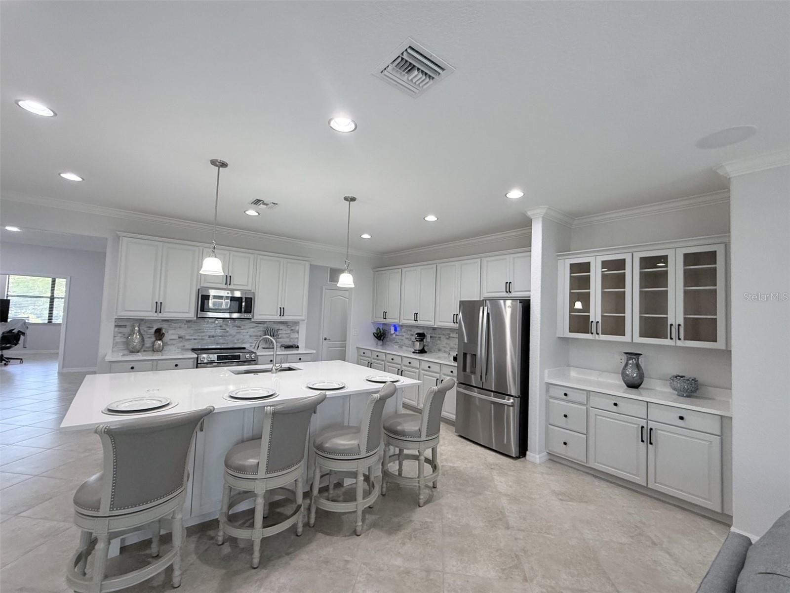 HUGE PRICE REDUCTION - THIS IS NOT YOUR TYPICAL LENNAR HOME! When a floor plan is thoughtfully redesigned to meet modern lifestyles, it stands out. This River Strand home has been strategically reimagined to replace an undefined foyer with high-value functional spaces like the addition of a dedicated office, wine bar with Thor Wine Refrigerator and still space for a dining room. Step thru to the real star of the show - this kitchen serves as the home's centerpiece, featuring a GE Profile Induction cooktop with convection and air frying capabilities, a new GE Profile French door refrigerator, and a whisper-quiet dishwasher. The expanded quartz island is a structural upgrade, providing integrated storage and dual Thor beverage drawers. The interior features a fresh, neutral palette enhanced by custom entry woodwork, remote-controlled LED lighting, and modern ceiling fans. Prioritizing safety and efficiency, the home features PGT Impact Windows in guest bedrooms and custom-height living room windows designed to maximize natural light while framing views of the private pool and golf course. Tech integrations include the Screen Logic Pool Control system for effortless mobile management of lighting and temperature, plus a level 2 electric car charger in the double garage. Enjoy resort-style living in Bradenton without the mandatory golf fees. Residents retain full access to 8 Pickleball courts and 9 lighted Har-Tru Tennis courts, Two community clubhouses - the main clubhouses just finished an $8million dollar renovation - with fitness centers and resort pools, On-site restaurant and tiki bar yet this home does not include the golf membership great for the Resort Style Amenities, especially when not being a golfer and one doesn't need to pay for such. Located near Costco, Target, and yet to open Whole Foods, this property offers unparalleled convenience. Commuters enjoy quick access to St. Pete and Sarasota, while the world-class sands of Anna Maria Island and Siesta Key are a short drive west.