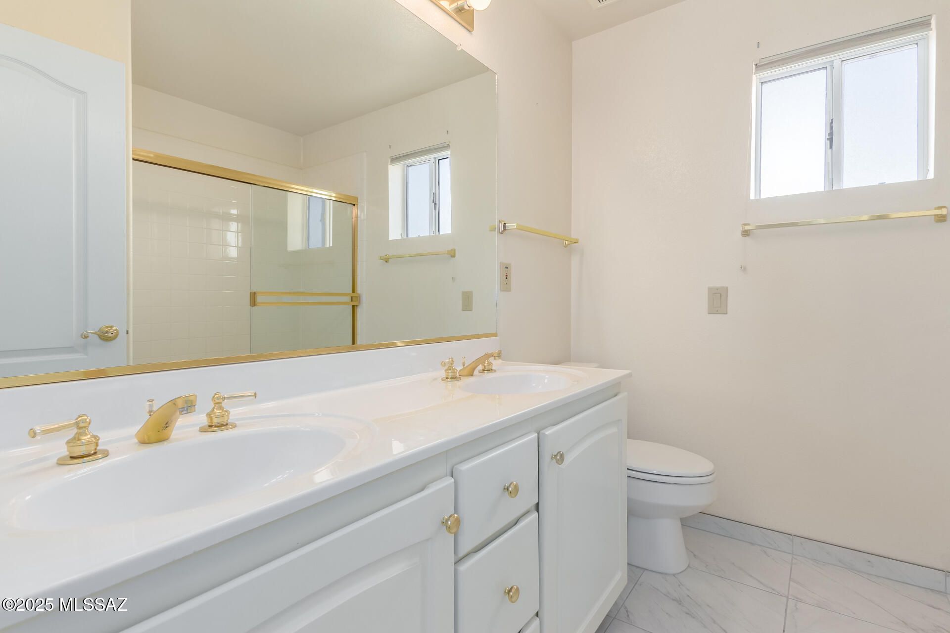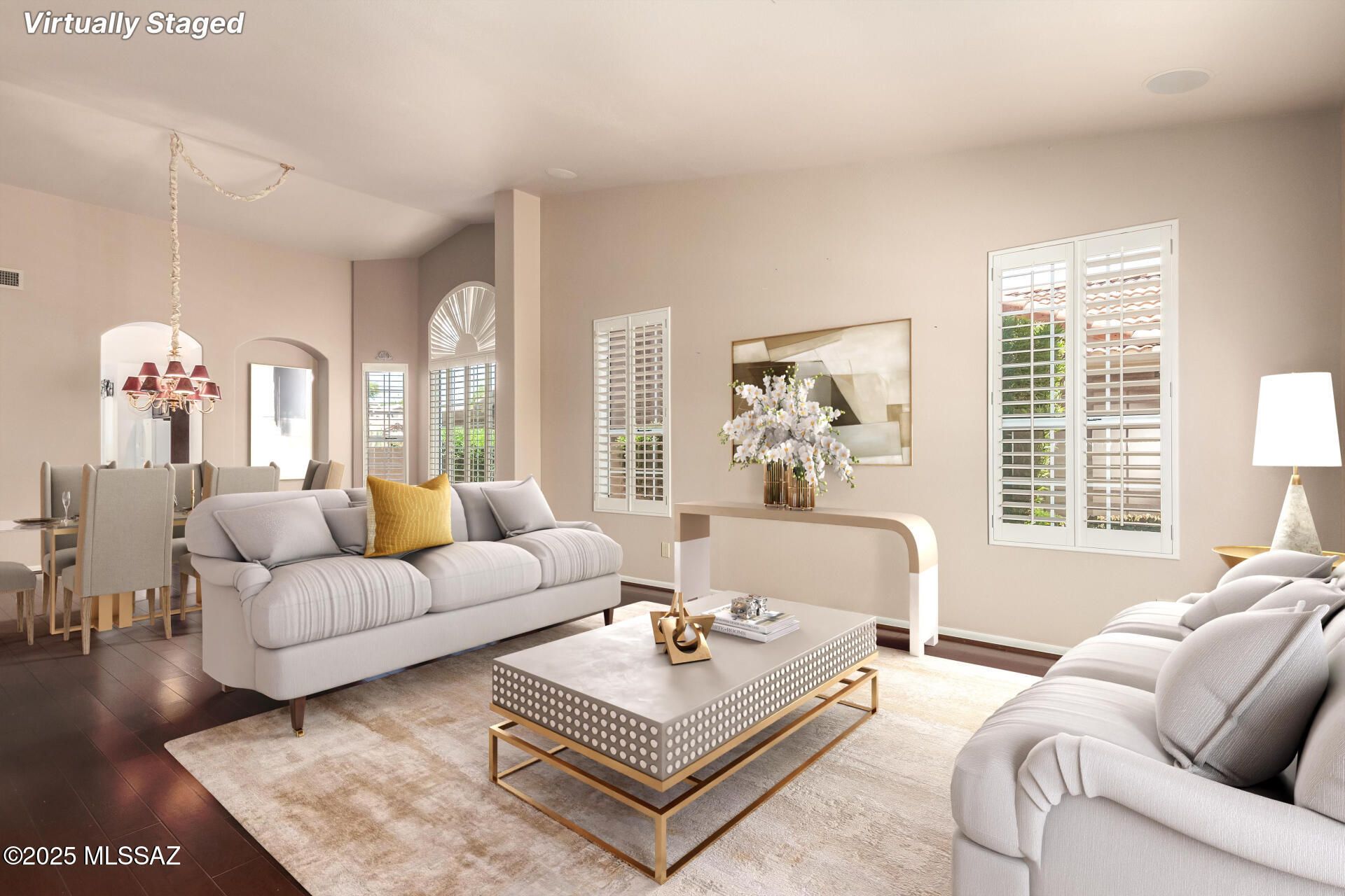 Unbeatable price for sweeping mountain vistas & room to spread out! This two‑story home in SaddleBrooke offers 3,253 sq ft of comfort, with daily living on the main level & guest quarters privately upstairs.*Expansive great room--12 ft ceilings, Catalina views*Entertainer's kitchen--sleek corian counters, updated appliances/cabinets, walk‑in pantry* Owner's suite, office, additional 1/2 bath, & laundry all on the 1st floor for stair‑free everyday living*2 generous guest bedrooms & full bath upstairs--give guests their own space*Built-in BBQ*Oversized 2.5‑car garage with built‑in cabinets & golf‑cart bay*Garage & Driveway coated with epoxy for lasting valueAll this in SaddleBrooke--Southern Arizona's premier active Adult