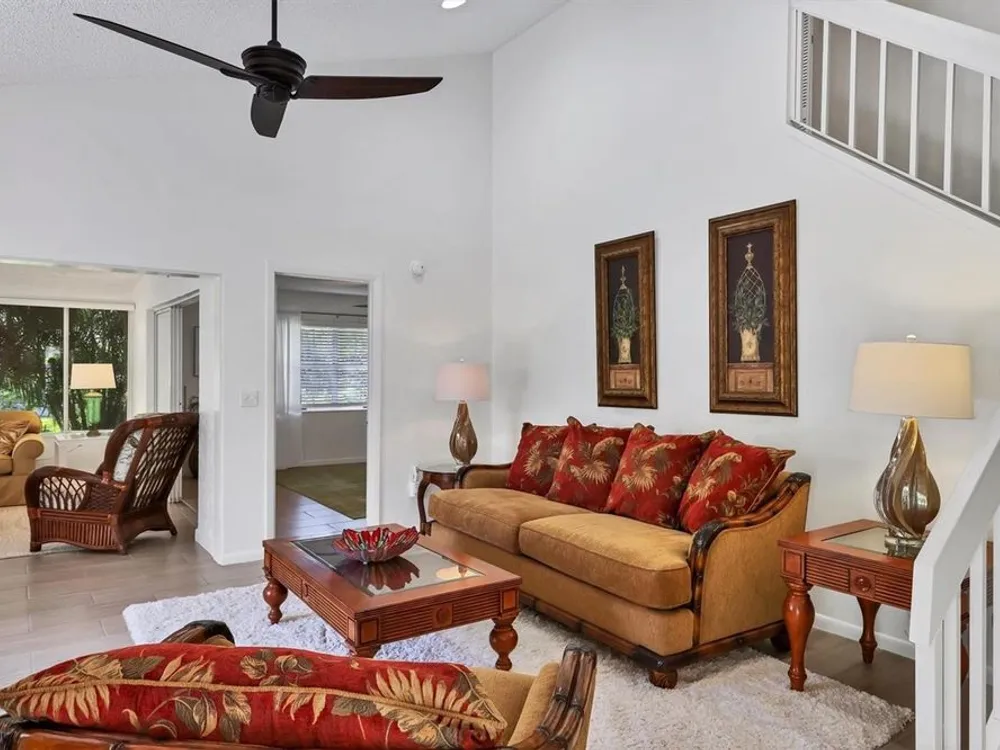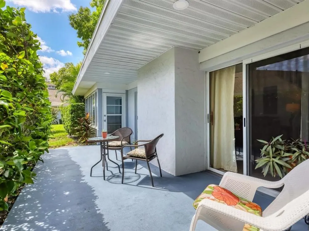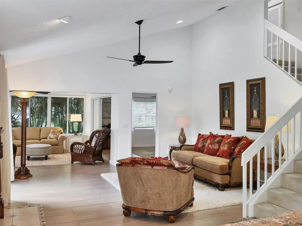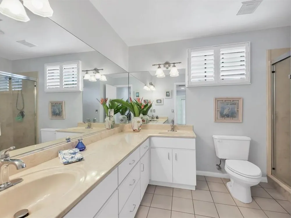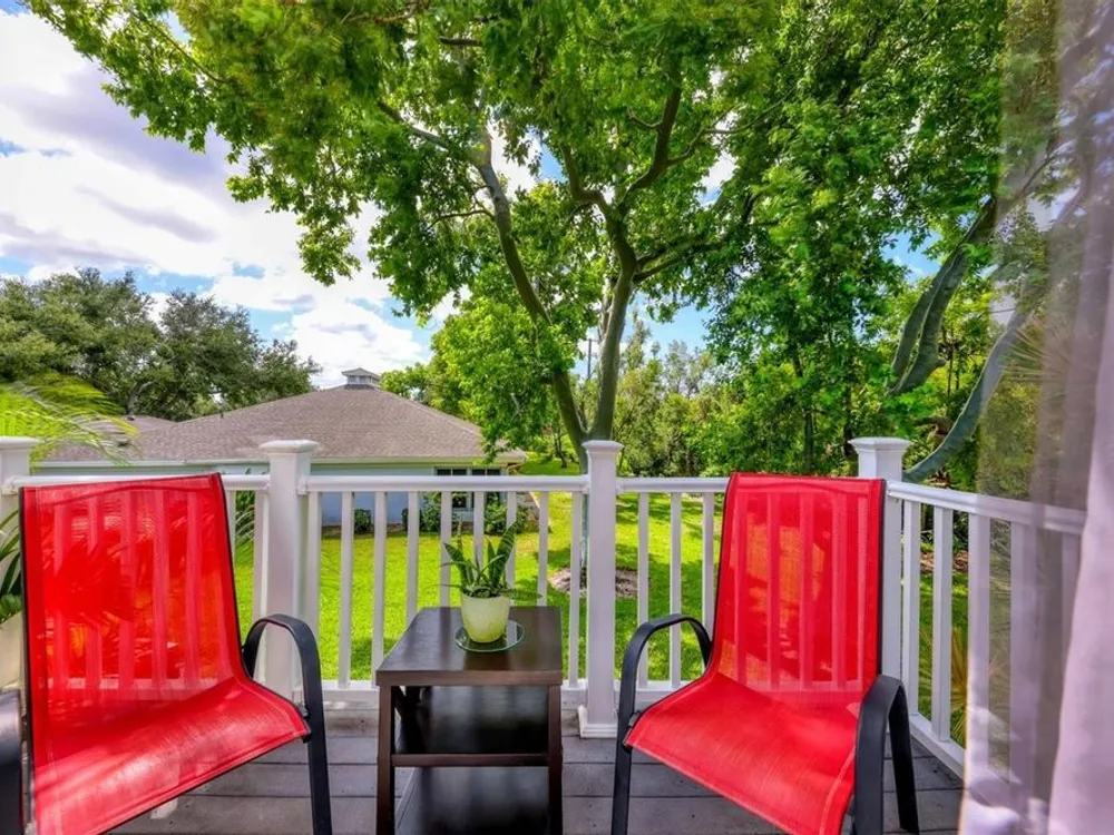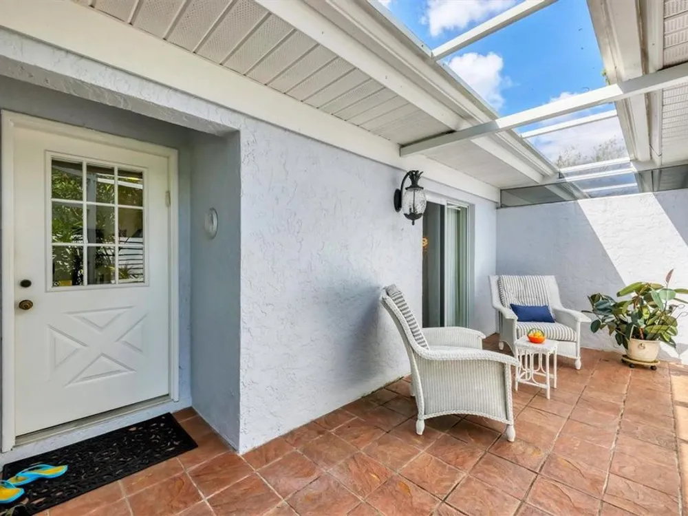 Welcome to 6465 Carrington Circle in Sarasota, a spacious villa in the sought-after 55+ community of Westwoods at Sunrise. Offering over 2,000 square feet, this home features three bedrooms and two bathrooms, highlighted by two primary suites—one upstairs with a private balcony for enjoying morning coffee or evening sunsets, and one downstairs for convenient single-level living—making it ideal for hosting guests or accommodating multi-generational needs. The flexible floor plan includes an enclosed lanai that can serve as a cozy TV room, office, or formal dining space, plus an eat-in kitchen, a bright living room with volume ceilings, and sliding glass doors that fill the home with natural light and open to a private patio. A screened lanai connects the residence to an oversized two-car garage, while mature plantings enhance the curb appeal and outdoor charm. Exceptional storage is found throughout with numerous closets, and the property has been well maintained with a new roof in 2019 and new AC in 2018. Offered partially furnished, the home is part of a community known for its charm, tree-lined streets, and amenities including two heated pools, pickleball, and a pet-friendly policy for one pet up to 25 pounds—all with no CDD fees. Conveniently located near I-75, shopping, restaurants, Detwilers, and just a short drive to Siesta Key, this villa offers comfort, versatility, and a fantastic Sarasota lifestyle—whether for year-round living or as a second home.