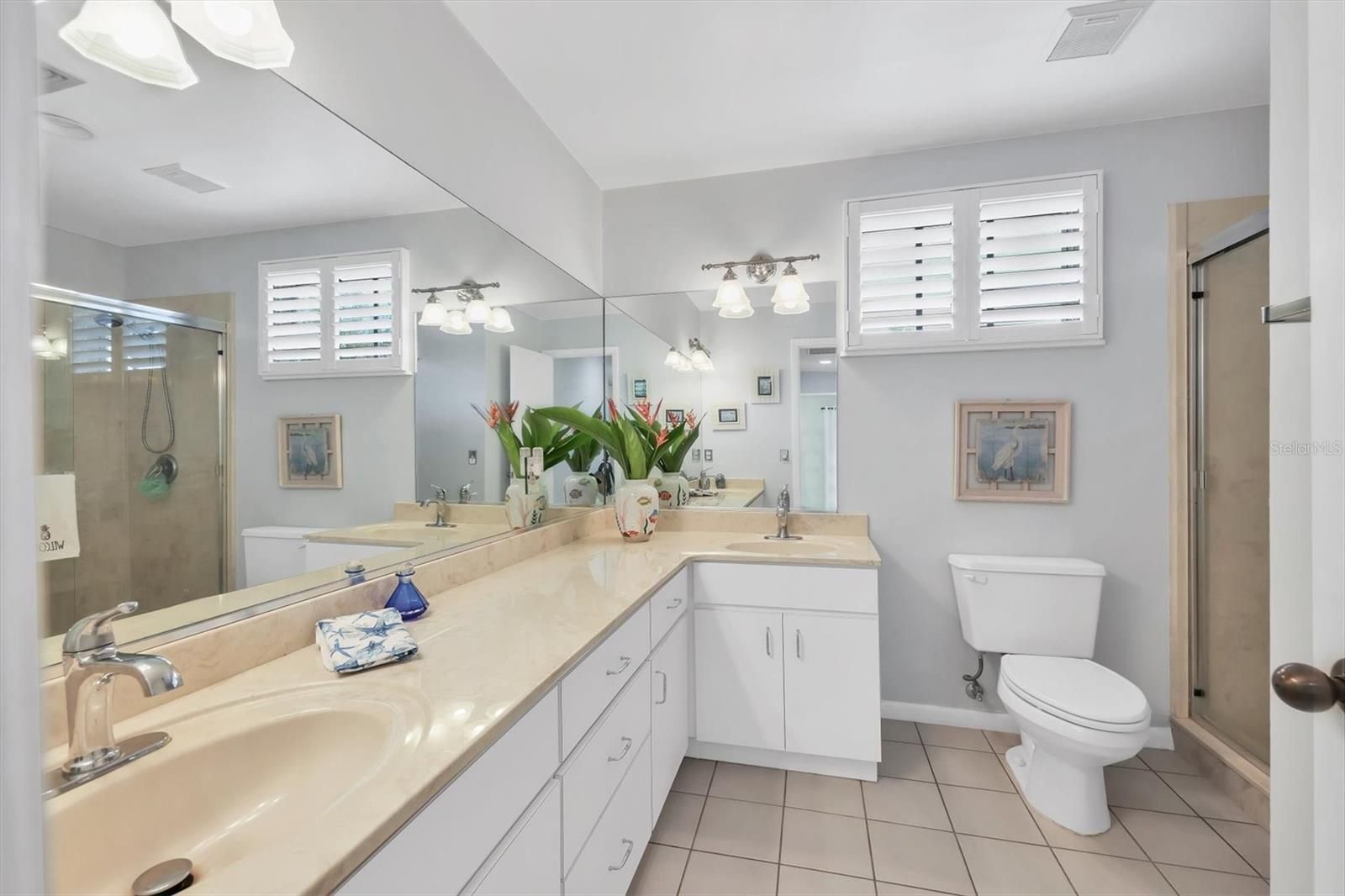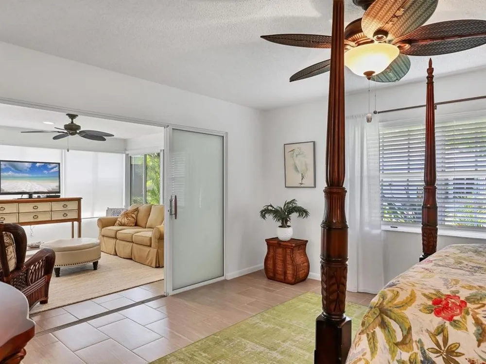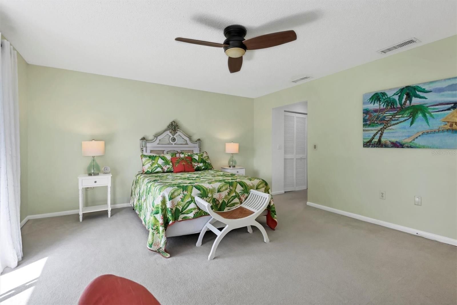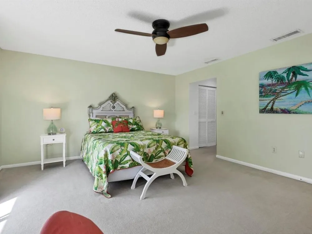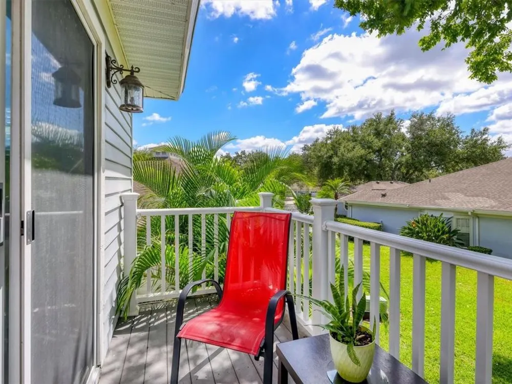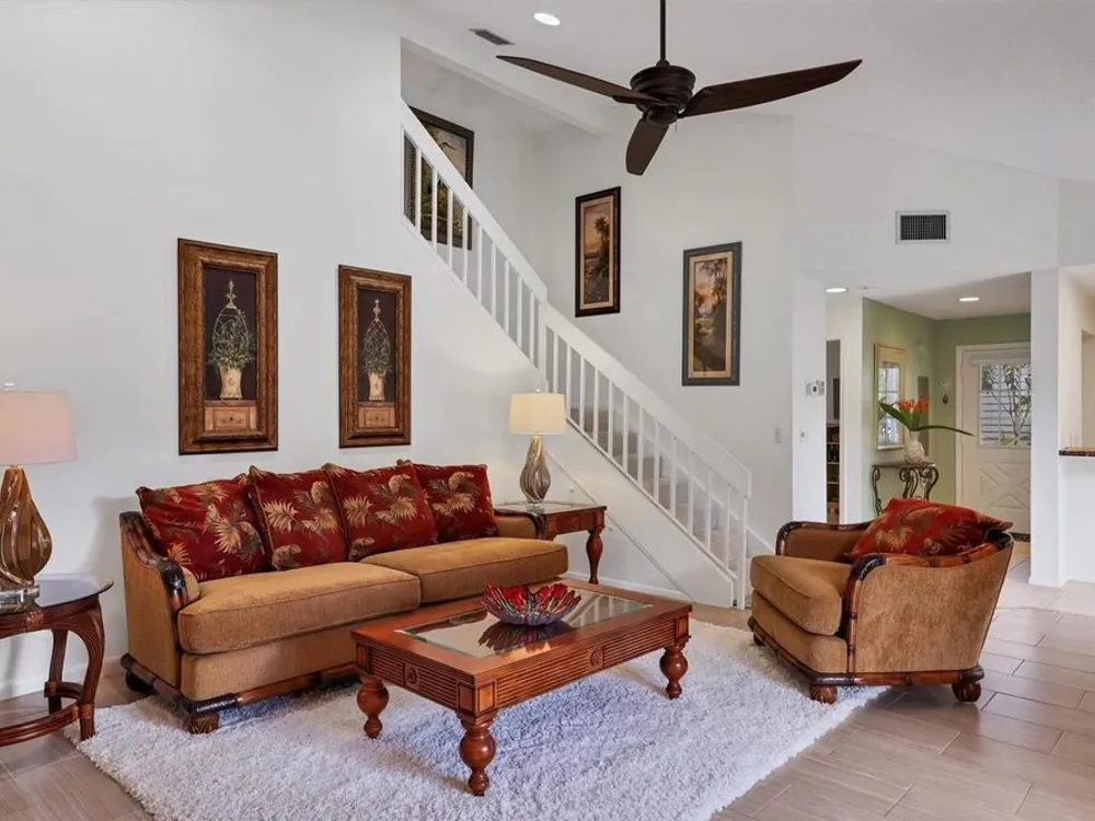Welcome to 6465 Carrington Circle in Sarasota, a spacious villa in the sought-after 55+ community of Westwoods at Sunrise. Offering over 2,000 square feet, this home features three bedrooms and two bathrooms, highlighted by two primary suites—one upstairs with a private balcony for enjoying morning coffee or evening sunsets, and one downstairs for convenient single-level living—making it ideal for hosting guests or accommodating multi-generational needs. The flexible floor plan includes an enclosed lanai that can serve as a cozy TV room, office, or formal dining space, plus an eat-in kitchen, a bright living room with volume ceilings, and sliding glass doors that fill the home with natural light and open to a private patio. A screened lanai connects the residence to an oversized two-car garage, while mature plantings enhance the curb appeal and outdoor charm. Exceptional storage is found throughout with numerous closets, and the property has been well maintained with a new roof in 2019 and new AC in 2018. Offered partially furnished, the home is part of a community known for its charm, tree-lined streets, and amenities including two heated pools, pickleball, and a pet-friendly policy for one pet up to 25 pounds—all with no CDD fees. Conveniently located near I-75, shopping, restaurants, Detwilers, and just a short drive to Siesta Key, this villa offers comfort, versatility, and a fantastic Sarasota lifestyle—whether for year-round living or as a second home.