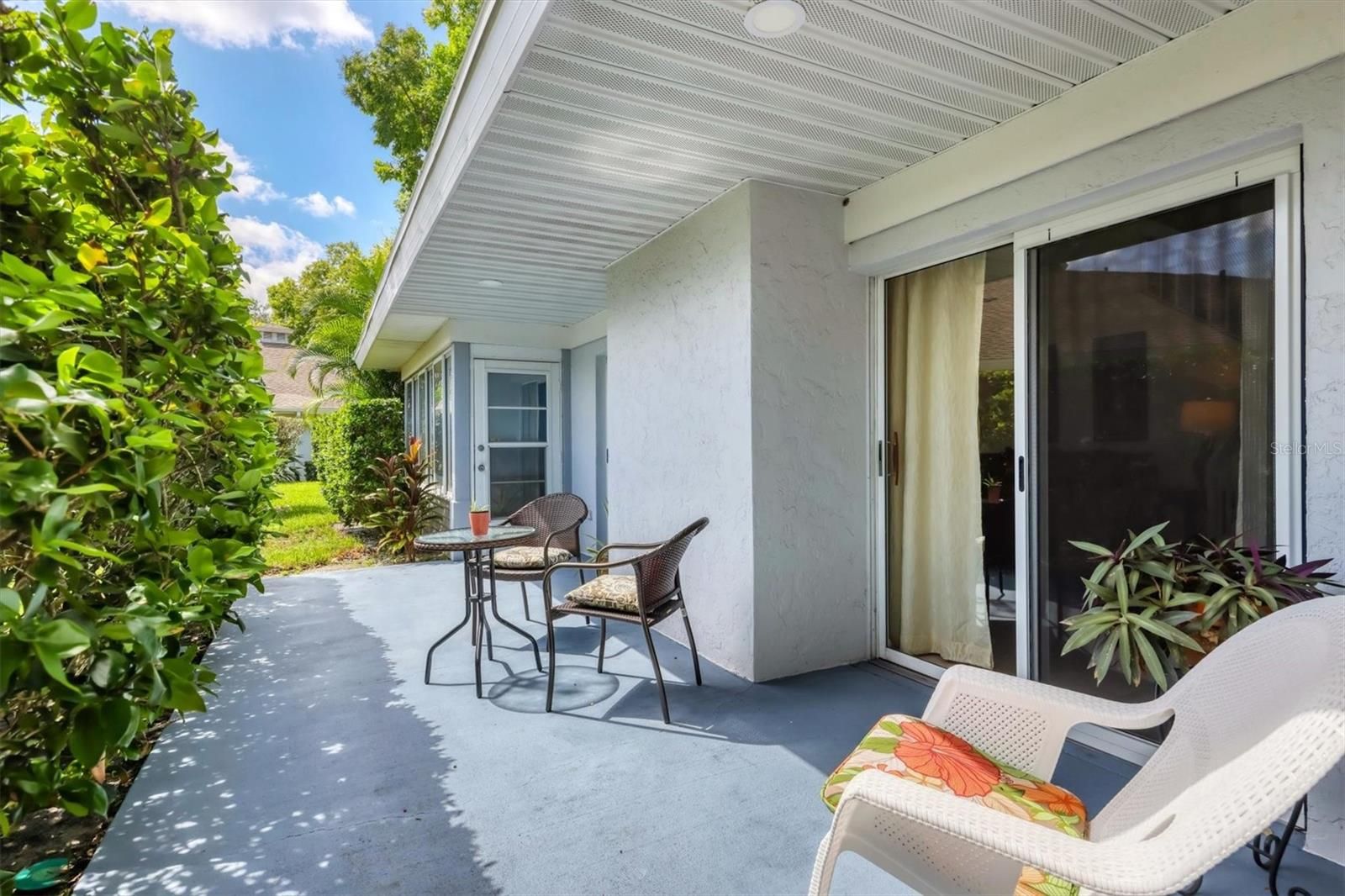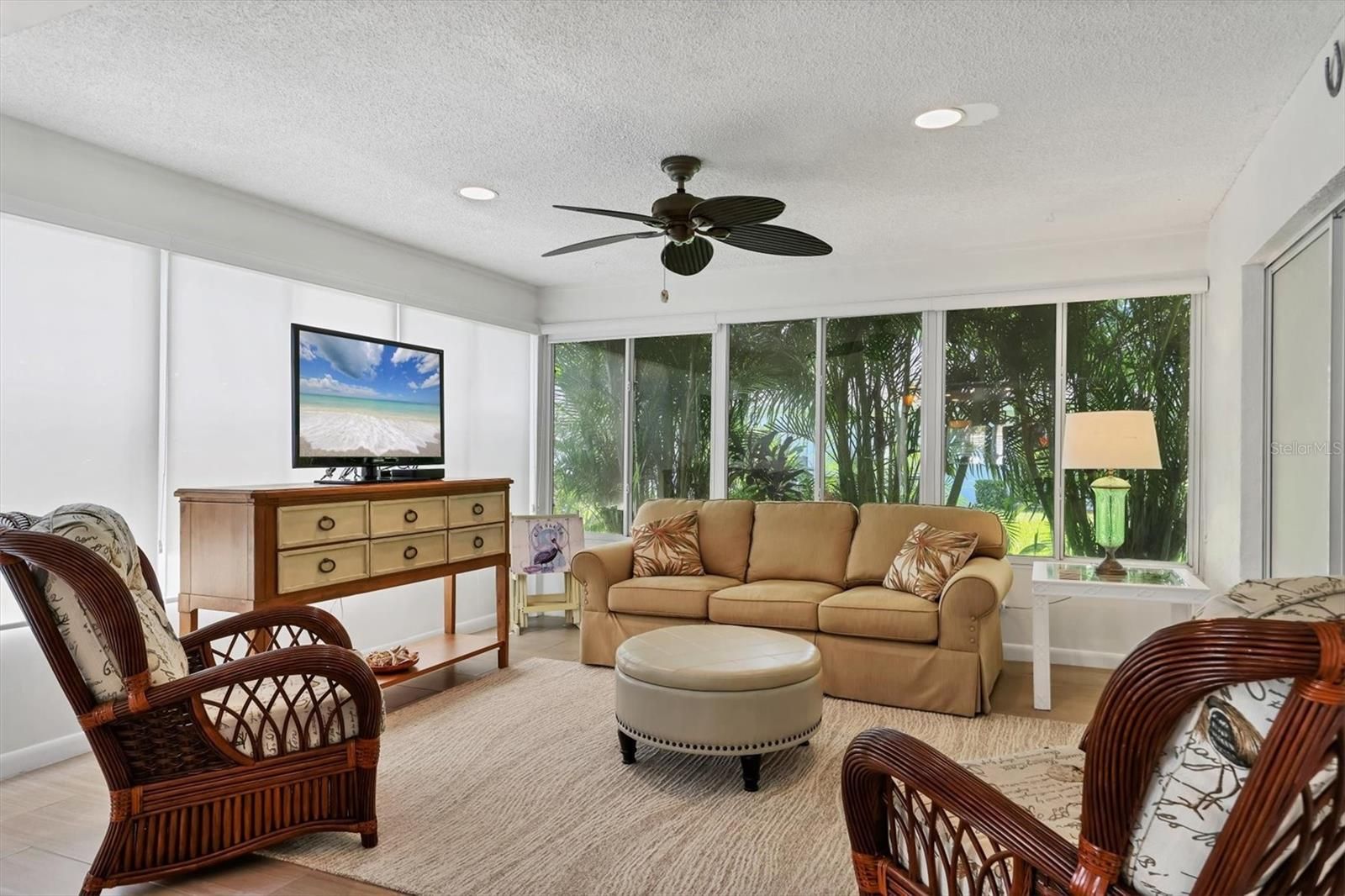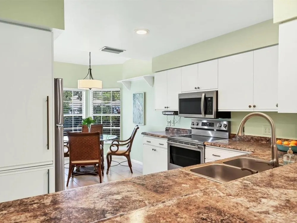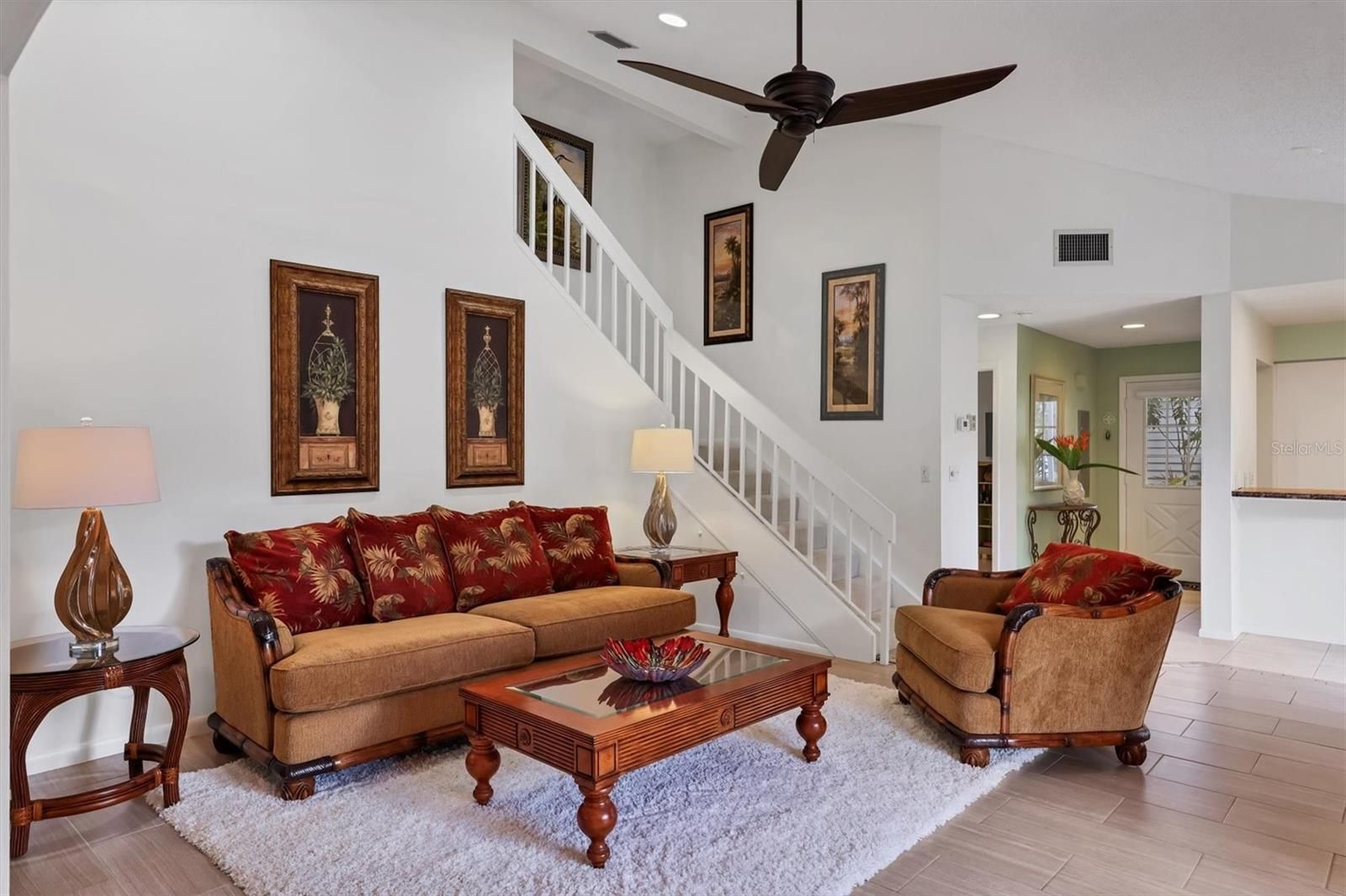 Welcome to 6465 Carrington Circle in Sarasota, a spacious villa in the sought-after 55+ community of Westwoods at Sunrise. Offering over 2,000 square feet, this home features three bedrooms and two bathrooms, highlighted by two primary suites—one upstairs with a private balcony for enjoying morning coffee or evening sunsets, and one downstairs for convenient single-level living—making it ideal for hosting guests or accommodating multi-generational needs. The flexible floor plan includes an enclosed lanai that can serve as a cozy TV room, office, or formal dining space, plus an eat-in kitchen, a bright living room with volume ceilings, and sliding glass doors that fill the home with natural light and open to a private patio. A screened lanai connects the residence to an oversized two-car garage, while mature plantings enhance the curb appeal and outdoor charm. Exceptional storage is found throughout with numerous closets, and the property has been well maintained with a new roof in 2019 and new AC in 2018. Offered partially furnished, the home is part of a community known for its charm, tree-lined streets, and amenities including two heated pools, pickleball, and a pet-friendly policy for one pet up to 25 pounds—all with no CDD fees. Conveniently located near I-75, shopping, restaurants, Detwilers, and just a short drive to Siesta Key, this villa offers comfort, versatility, and a fantastic Sarasota lifestyle—whether for year-round living or as a second home.