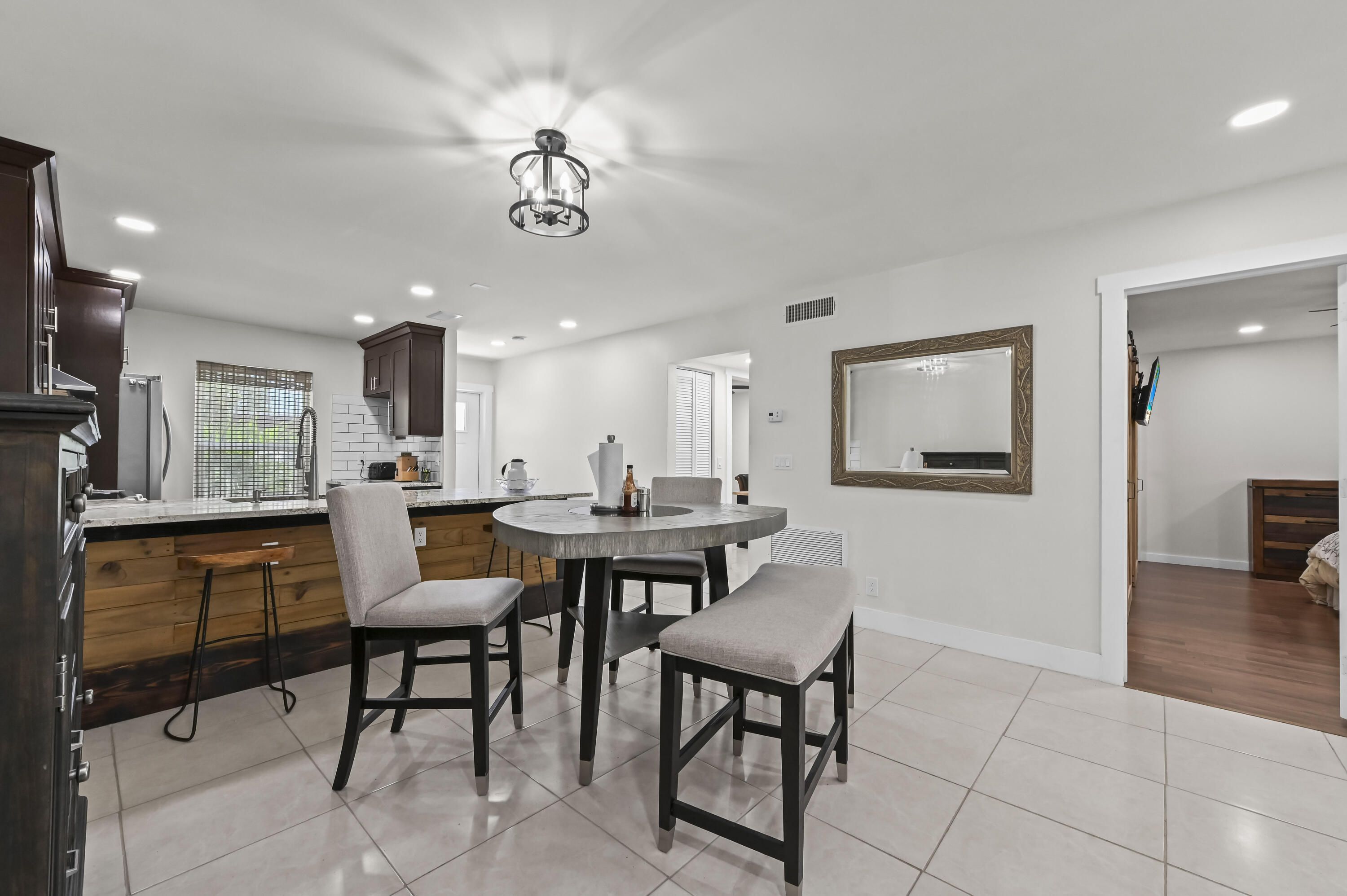 Step into this beautifully appointed villa, a stunning 2-bedroom, 2-bathroom residence that perfectly blends comfort with modern style. The open living areas are designed for seamless flow, creating a bright and inviting atmosphere. The kitchen is a true highlight, featuring sleek granite countertops, a stylish tiled backsplash, and recessed lighting that enhances both form and function. The main bedroom offers a private sanctuary, complete with a luxurious ensuite bathroom and a walk-in closet with an elegant barn door, adding a touch of rustic charm to this contemporary space. Enjoy year-round relaxation in the enclosed patio, featuring sliding impact windows that offer a perfect vantage point to take in the beautiful window treatments and a large, private backyard a rare find for condo living. The home also includes a storage closet with built-in shelves for optimal organization. Located within a well-maintained 55+ community, residents enjoy a wealth of resort-style amenities. Plus, with a prime location just minutes from fine shopping, diverse dining options, and much more, this home offers the ideal combination of peaceful living and urban convenience.