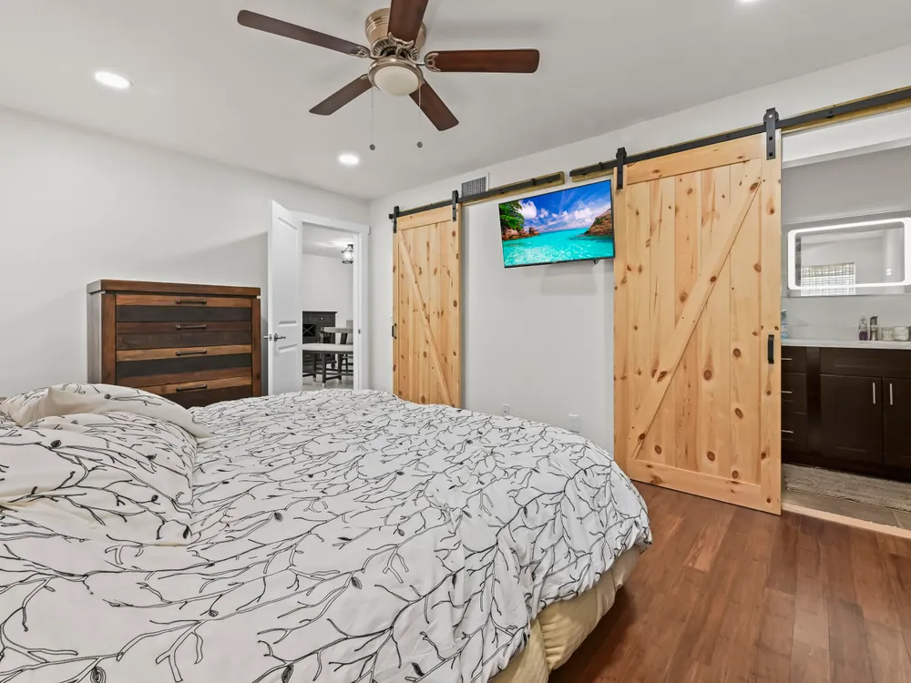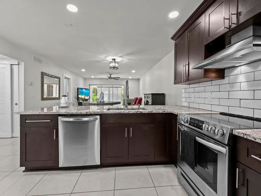 Step into this beautifully appointed villa, a stunning 2-bedroom, 2-bathroom residence that perfectly blends comfort with modern style. The open living areas are designed for seamless flow, creating a bright and inviting atmosphere. The kitchen is a true highlight, featuring sleek granite countertops, a stylish tiled backsplash, and recessed lighting that enhances both form and function. The main bedroom offers a private sanctuary, complete with a luxurious ensuite bathroom and a walk-in closet with an elegant barn door, adding a touch of rustic charm to this contemporary space.