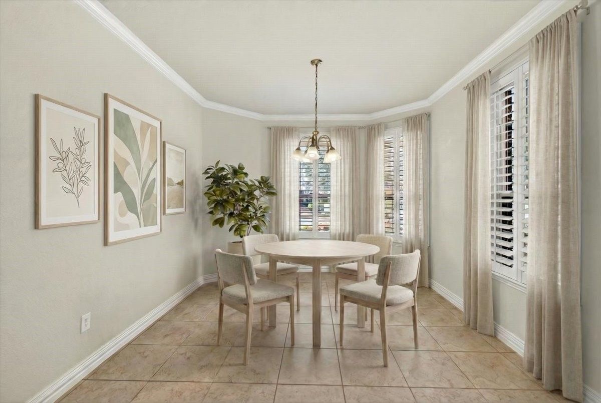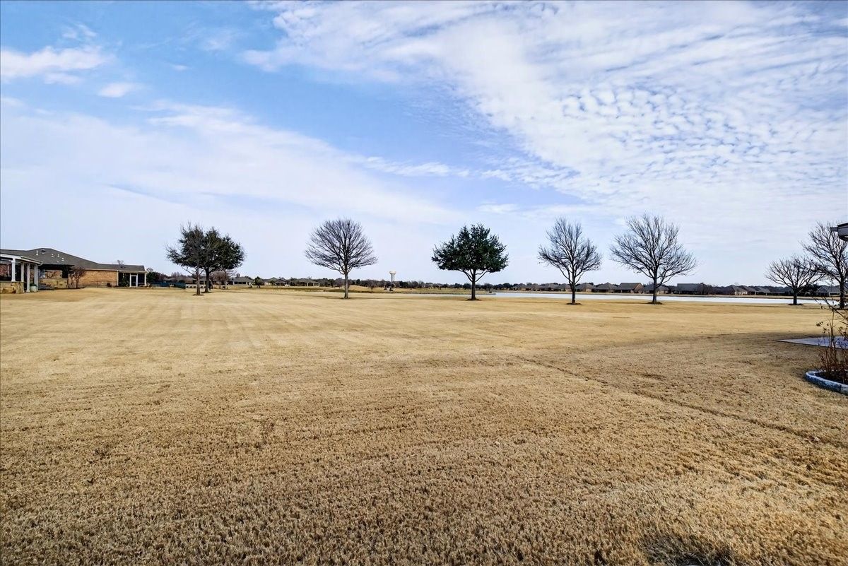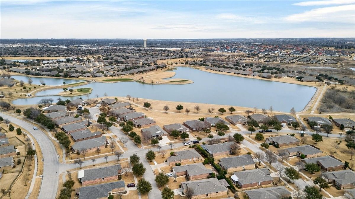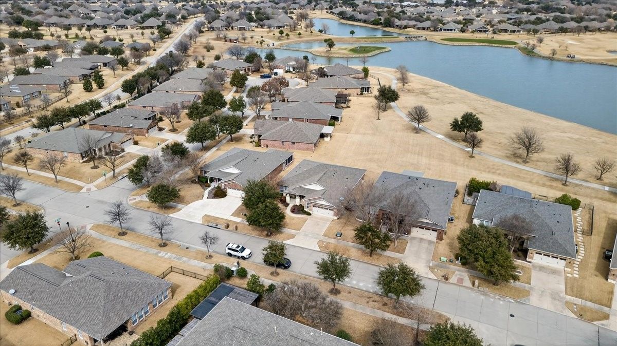 Refined living awaits in this beautifully appointed home located in the sought-after Frisco Lakes Del Webb Community, perfectly positioned on a premium lot with serene water views. A covered front porch with stone accents sets the tone for this elegant residence. The open-concept design is ideal for entertaining, with a sunlit living area framed by a wall of windows overlooking the tranquil backyard. The gourmet kitchen features granite countertops, a large island, 5-burner gas cooktop, stainless steel appliances, convection oven, and abundant cabinets for storage. The luxurious primary suite offers a spa-inspired bath with dual vanities, garden tub, separate shower, and walk-in closet. Two split bedrooms share a Jack-and-Jill bath, complemented by a private study and guest powder bath. Plantation shutters and crown molding add timeless style. Enjoy peaceful lake views from the covered patio. Utility room with sink. Oversized garage with golf cart space. Frisco Lakes is a 55+ Age restricted Community with golf, club house, restaurant, pools, fitness, walking path, pickle ball, tennis courts for a active social lifestyle.