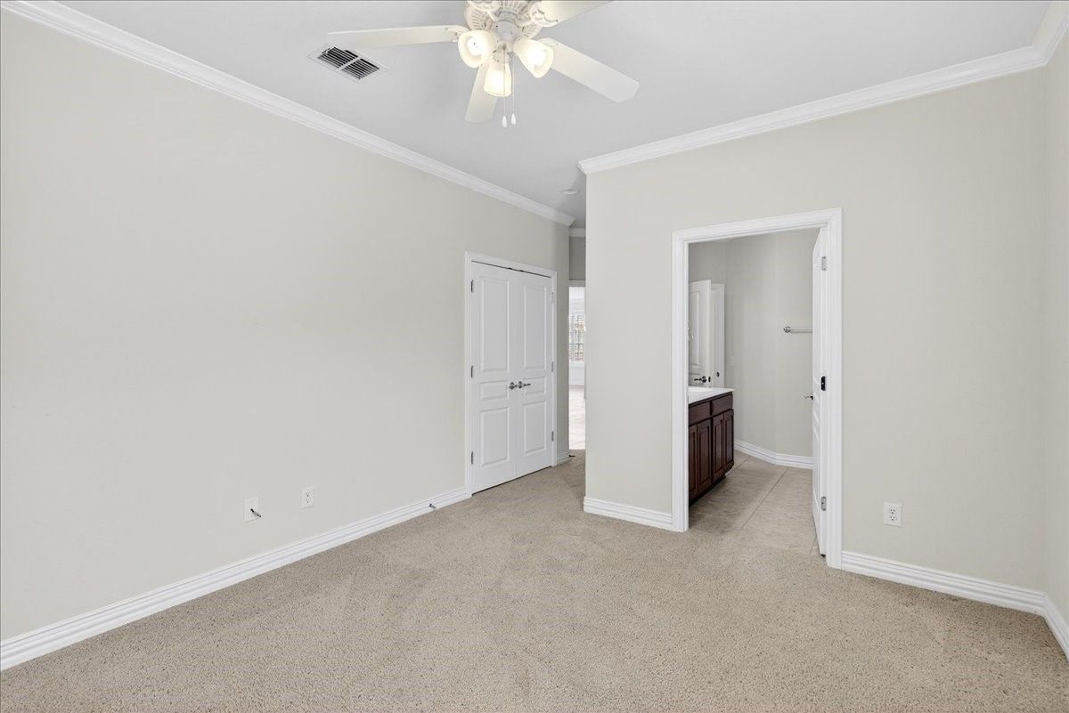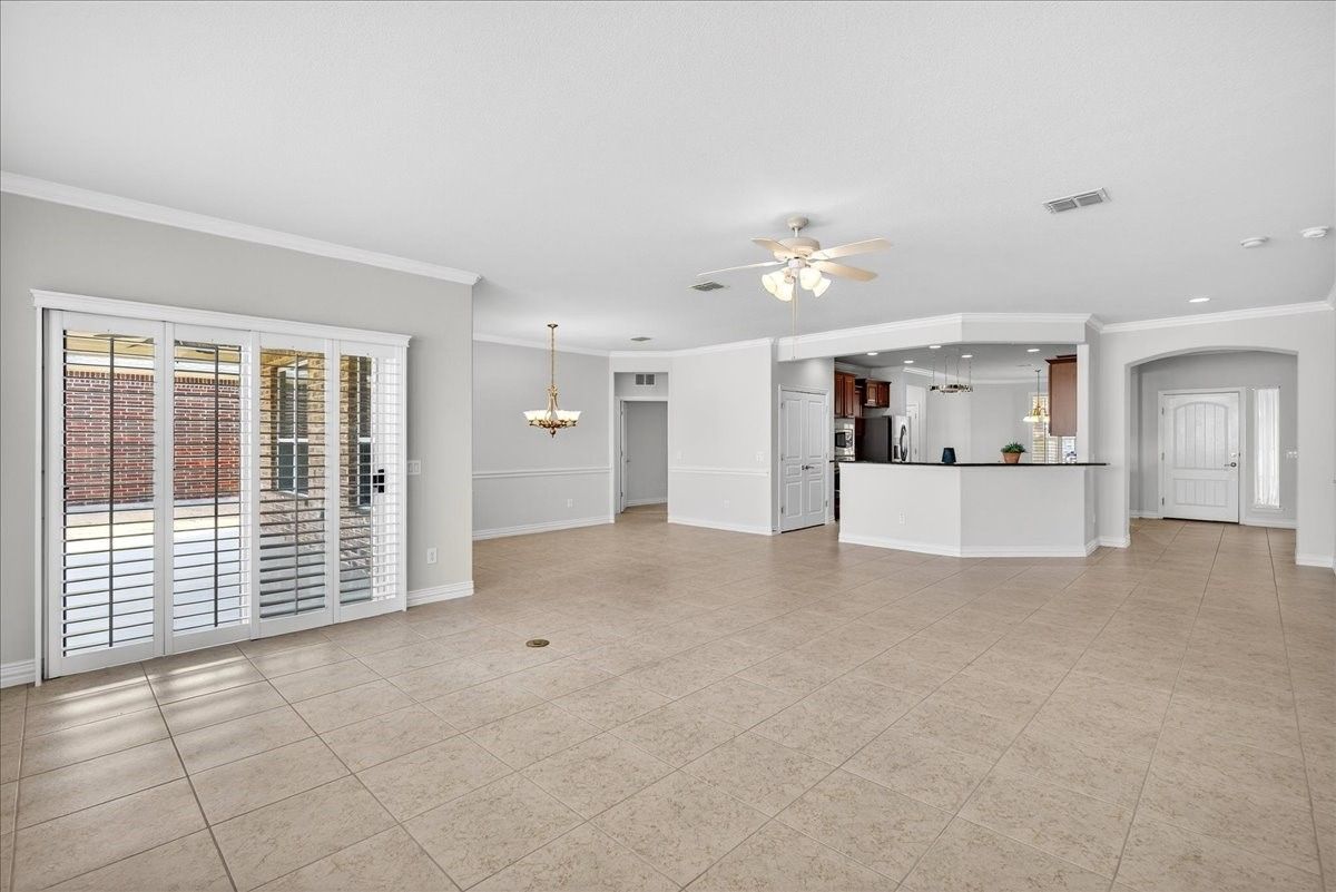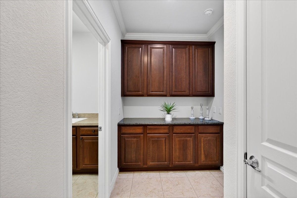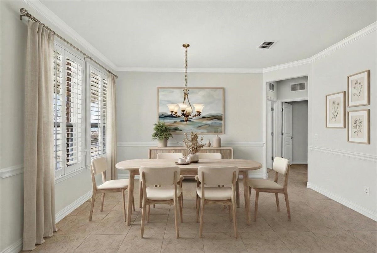 Refined living awaits in this beautifully appointed home located in the sought-after Frisco Lakes Del Webb Community, perfectly positioned on a premium lot with serene water views. A covered front porch with stone accents sets the tone for this elegant residence. The open-concept design is ideal for entertaining, with a sunlit living area framed by a wall of windows overlooking the tranquil backyard. The gourmet kitchen features granite countertops, a large island, 5-burner gas cooktop, stainless steel appliances, convection oven, and abundant cabinets for storage. The luxurious primary suite offers a spa-inspired bath with dual vanities, garden tub, separate shower, and walk-in closet. Two split bedrooms share a Jack-and-Jill bath, complemented by a private study and guest powder bath. Plantation shutters and crown molding add timeless style. Enjoy peaceful lake views from the covered patio. Utility room with sink. Oversized garage with golf cart space. Frisco Lakes is a 55+ Age restricted Community with golf, club house, restaurant, pools, fitness, walking path, pickle ball, tennis courts for a active social lifestyle.