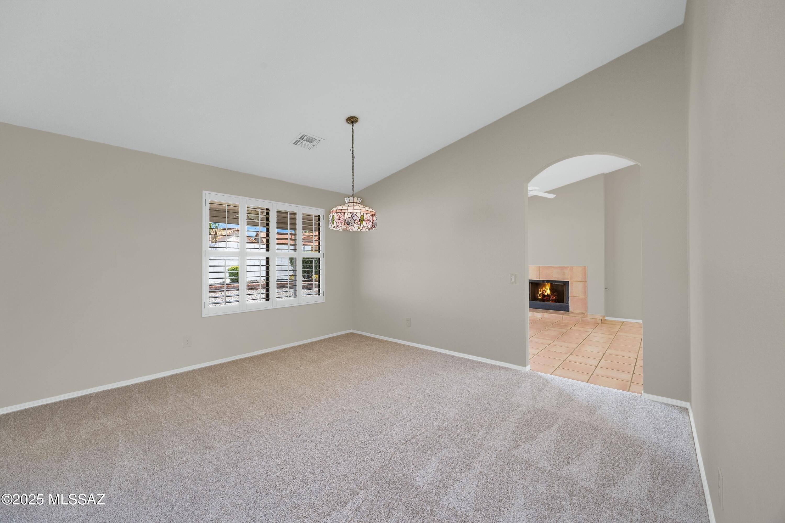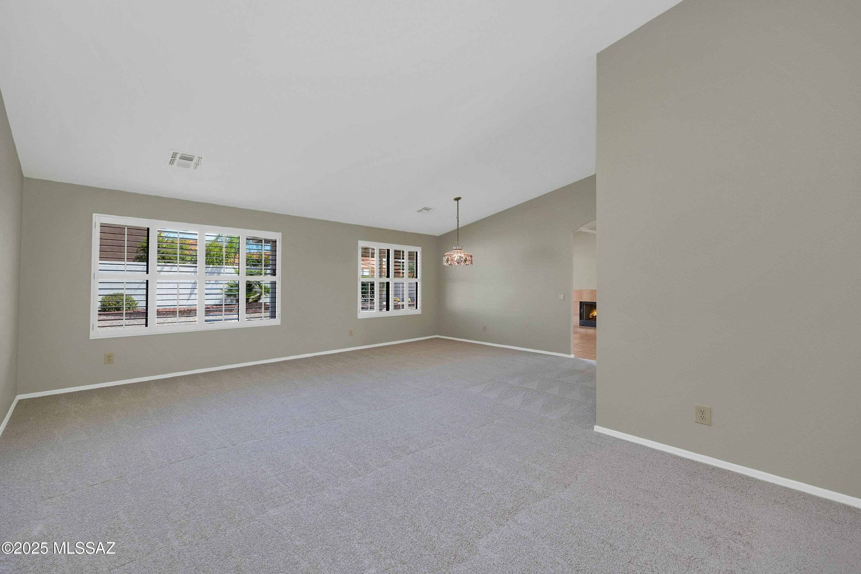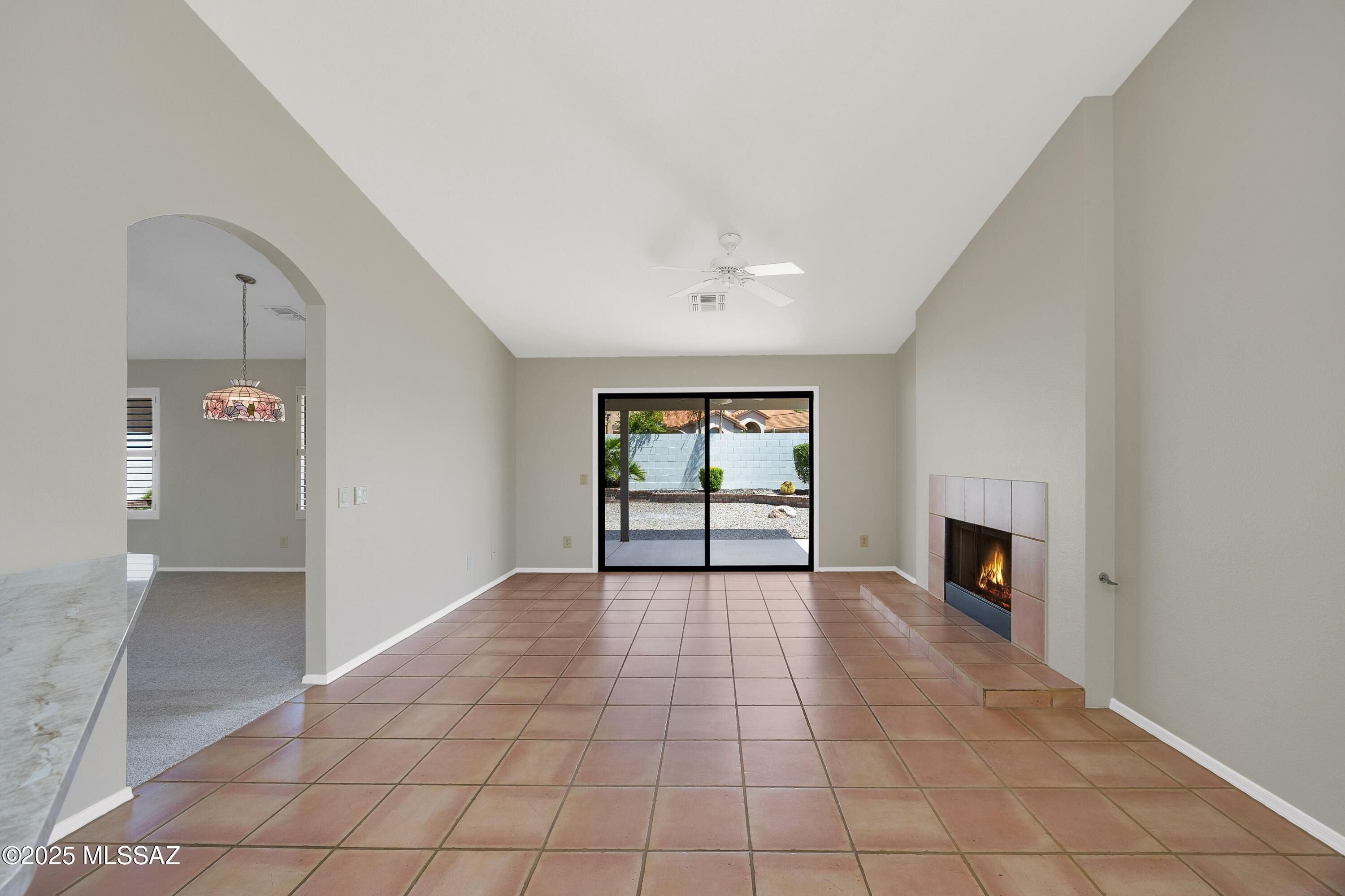 Topaz on .25 Lot with Mountain Views. Freshly Painted Interior & New Carpet Installed Aug. 2025! Spacious Living Room & Dining Area. Updated Kitchen offers Quartz Counters, Stainless Steel Appliances, White Cabinets with soft close, Water Filtration System under sink & Kitchen Dining to enjoy! Family Room has Gas Fireplace & Slider to Patio. Owner's Suite has Slider to Yard. Owner's Bathroom with Walk-in Shower & Walk-in Closet. Guest Bedroom with Closet. Updated Guest Bathroom that offers Quartz Counter & custom Walk-in Shower with Glass Doors. Laundry Room with W/D & Cabinets with Desk. Extended 2 Car Garage with space for golf cart has 2017 HVAC, 2024 W/H & Cabinets. Covered Patio, Garden Beds, 2 Citrus Trees, Gated Yard Full of Possibilities & Mountain Views to enjoy day or night!