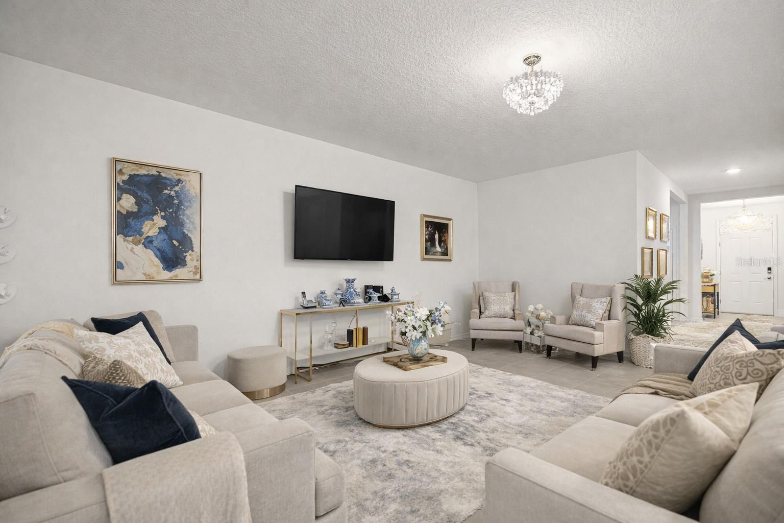 BEAUTIFULLY MAINTAINED Smart Home on One of the Best lots in a Premier 55+ Community. Pride of ownership shines throughout this accommodating residence offering comfort, convenience, and a relaxed atmosphere with LOW HOA fees and a GATED ENTRY. This home delivers serene living at its finest. Nestled on a quiet, low traffic street and overlooking peaceful green space, the property provides direct walk-able access to the clubhouse, resort style pool, and recreational courts—or enjoy the ease of getting around by golf cart. The exterior received a full PROFESSIONAL REPAINT in January 2026 adding to its move in ready appeal. INTERIOR HIGHLIGHTS: Four spacious bedrooms offering exceptional flexibility for a couple and their guests, or the extra space is ideal for a home office, media room, or as a hobby room. Bright, open floor plan with abundant natural light and a wide welcoming hallway. Beautiful kitchen featuring expansive granite counters, island with sink and breakfast bar, walk in pantry, SOFT-CLOSE CABINETRY, and stainless steel appliances. The dining area can easily adapt to extend the table for holiday gatherings. The primary suite is its own oasis at the rear of the home, large enough for a king sized bed and features dual walk in closets. En suite bathroom has a luxurious granite, full bathroom-length double vanity, and a water closet for added privacy. Capitalize on ENERGY SAVINGS with smart home features, BRAND NEW FANS, and an inside HVAC closet. The roomy INSIDE LAUNDRY ROOM provides for additional space in the generously sized garage too. OUTDOOR LIVING: Enjoy the quiet—no traffic noise here. The SCREENED-IN LANAI sits on the cool side overlooking a beautifully landscaped backyard accented with vibrant rose bushes, creating a peaceful retreat for morning coffee or evening relaxation. Stone edging and gutters add efficiency to the clean environment. The HOA includes mowing. COMMUNITY AMENITIES: Residents enjoy the security of a gated entrance and access to a stunning amenities center featuring Sparkling resort style pool, Bocce ball and pickle ball courts, Clubhouse with community and meeting spaces, Kitchen area and fitness center. CONVENIENT LOCATION: Just minutes from 3 Publix supermarkets, medical facilities, restaurants, cafés, and boutique shopping, this home offers the perfect blend of tranquility and everyday convenience. A transferable builder warranty adds peace of mind.
