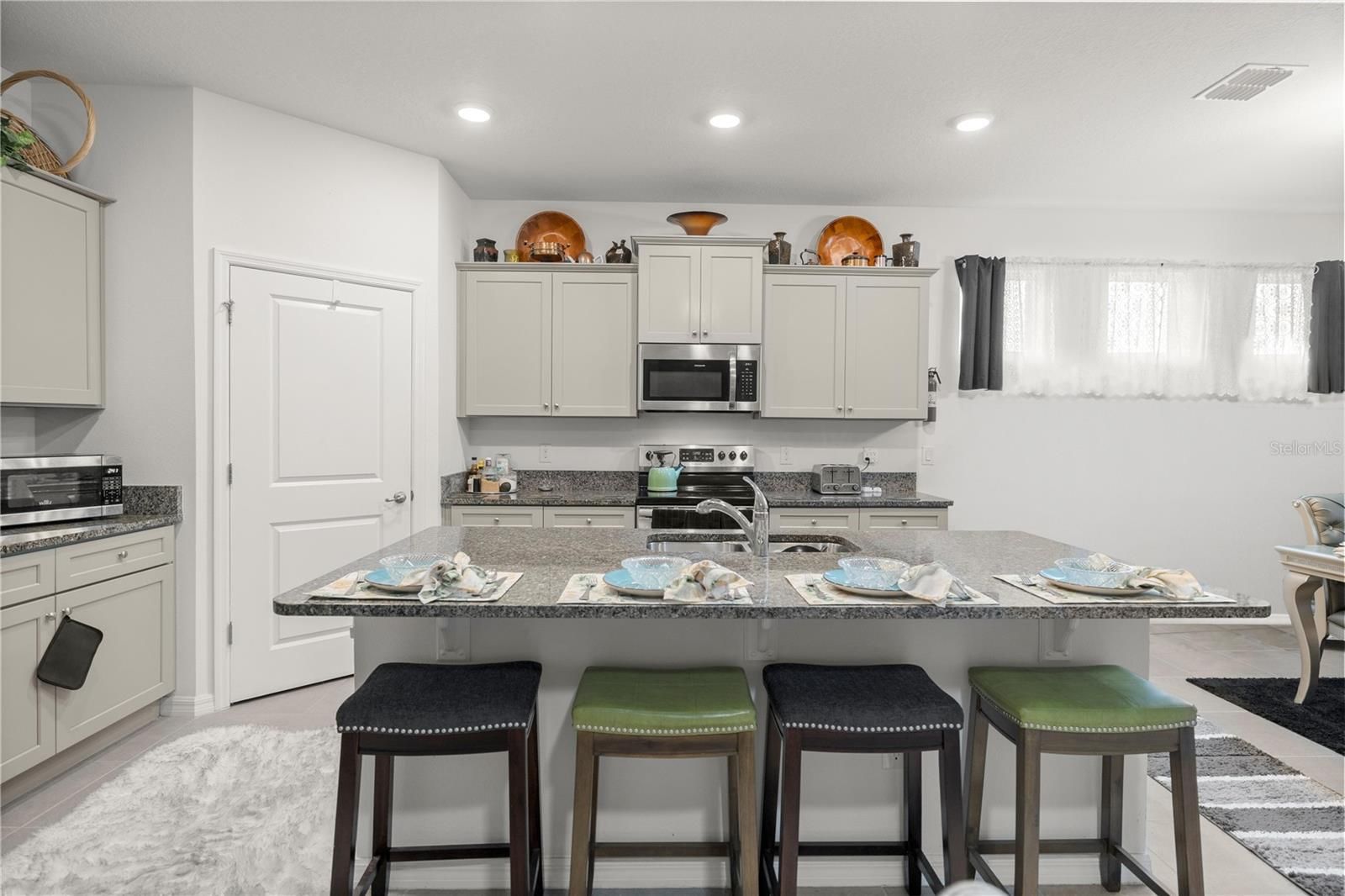Beautifully Maintained Home on One of the Best Lots in a Premier 55+ Community Pride of ownership shines throughout this well maintained residence, perfectly positioned on one of the most desirable lots within this gated, premier 55+ lifestyle community. Offering comfort, convenience, and a relaxed atmosphere with low HOA fees, this home delivers serene living at its finest. Nestled on a quiet, low traffic street and overlooking peaceful greenspace, the property provides direct walkable access to the clubhouse, resort style pool, and recreational courts—or enjoy the ease of getting around by golf cart. The exterior received a full professional repaint in January 2026, plus stone edging and rain gutters adding to its move in ready appeal. Interior Highlights: Four spacious bedrooms offering exceptional flexibility for guests, a home office, media room, or hobby space. Bright, open floor plan with abundant natural light and a wide welcoming hallway. Beautiful kitchen featuring expansive granite counters, island with sink and breakfast bar, walk in pantry, soft close cabinetry, and stainless steel appliances. The primary suite is its own oasis at the rear of the home, large enough for a king sized bed and featuring dual walk in closets. En suite bath with full length granite vanity, separate his and her sinks, and a water closet for added privacy. Outdoor Living: Enjoy the quiet—no traffic noise here. The screened lanai sits on the cool side overlooking a beautifully landscaped backyard accented with vibrant rose bushes, creating a peaceful retreat for morning coffee or evening relaxation. Community Amenities: Residents enjoy the security of a gated entrance and access to a stunning amenities center featuring Sparkling resort style pool, Bocce ball and pickleball courts, Clubhouse with community and meeting spaces, Kitchen area and fitness center. Convenient Location: Just minutes from Publix, medical facilities, restaurants, cafés, and boutique shopping, this home offers the perfect blend of tranquility and everyday convenience. A transferable builder warranty adds peace of mind.