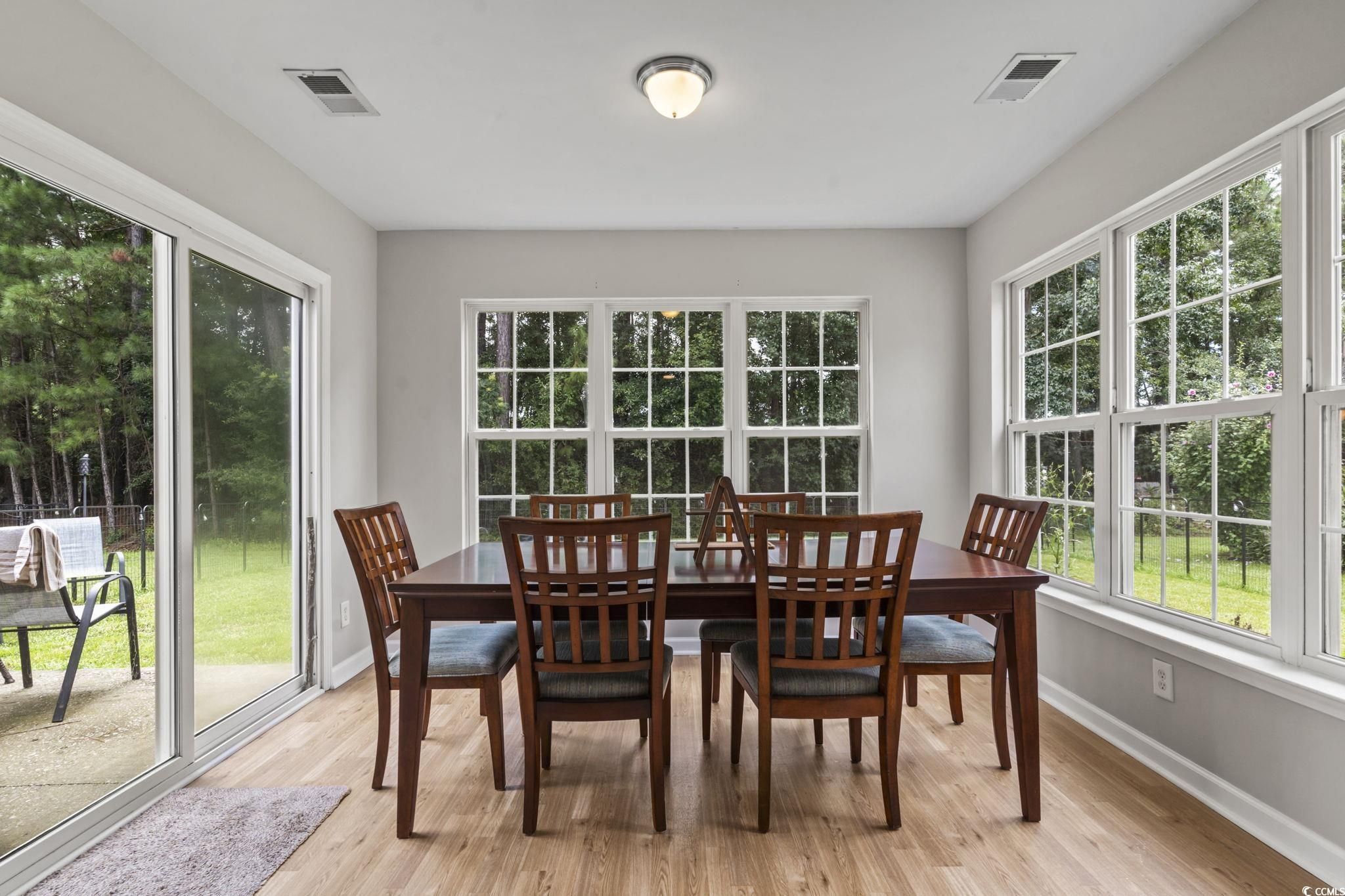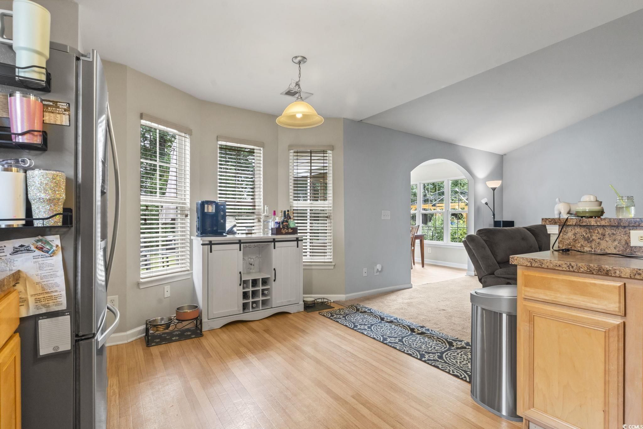 BEAUTIFULLY MAINTAINED 4-BEDROOM HOME WITH BONUS/FLEX ROOM IN GATED COMMUNITY – PRICED TO SELL! Welcome to this gorgeous 4-bedroom, 2-bath home with a spacious bonus/flex room and oversized 2-car garage, located in the highly desirable gated community of Myrtle Beach Golf & Yacht Club. This meticulously maintained property offers excellent curb appeal with charming brick accents and comes with a new roof and HVAC system installed in 2023 for peace of mind. Step inside and you’ll immediately notice the tasteful updates, including stylish new flooring and a functional split floor plan. The inviting living room features vaulted ceilings and an abundance of natural light, creating a bright, open space perfect for relaxing or entertaining. The kitchen is a chef’s delight, offering plenty of cabinetry, generous counter space, stainless steel appliances, and a cozy dining area. The primary suite is located at the front of the home and features a walk-in closet along with a private bath complete with dual sinks and a large walk-in shower. Three additional bedrooms are equally spacious, each with large closets and easy access to the second full bathroom. The fourth bedroom, located upstairs, provides flexible space that can also be used as a bonus room, home office, or game room depending on your needs. Home offers the unique opportunity to assume a very low interest mortgage. Enjoy tranquil wooded views from the light-filled Carolina Room, which opens to a private patio and is ideal for outdoor relaxation or morning coffee. The oversized garage offers plenty of room for beach gear, golf clubs, and additional storage. All appliances, including the washer and dryer, are included with the home. Myrtle Beach Golf & Yacht is a secure, amenity-rich community featuring 24-hour gated security, a pool, tennis courts, and more. Conveniently located near major highways, this home provides easy access to shopping, dining, golf, and everything the Grand Strand has to offer. Don’t miss your opportunity to own this exceptional home in a prime location so schedule your showing today!