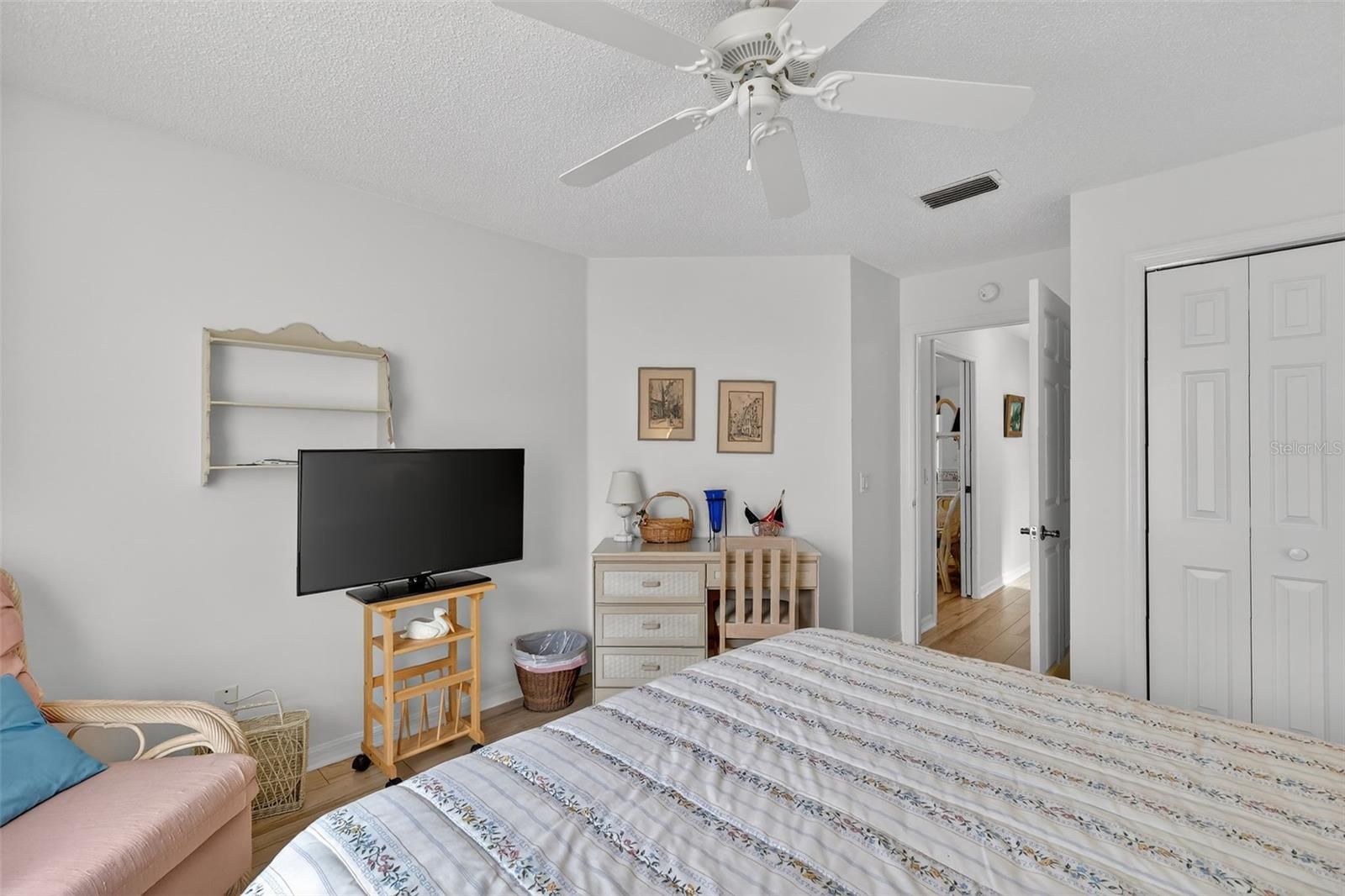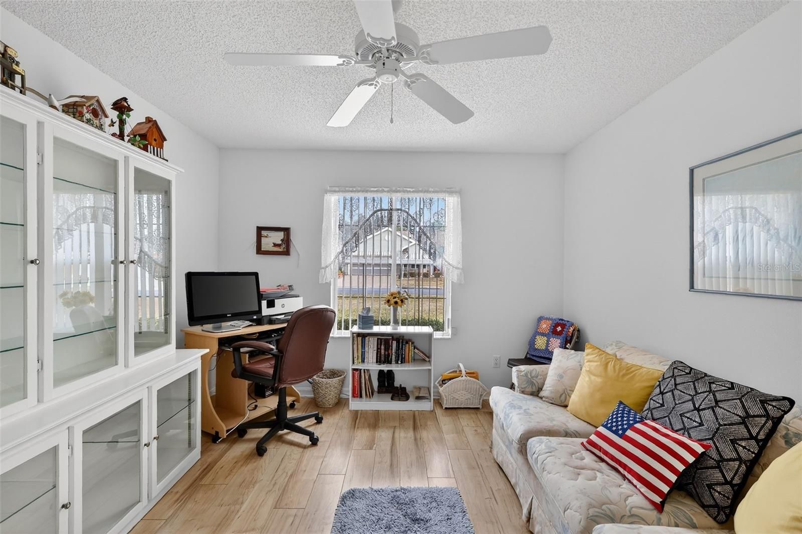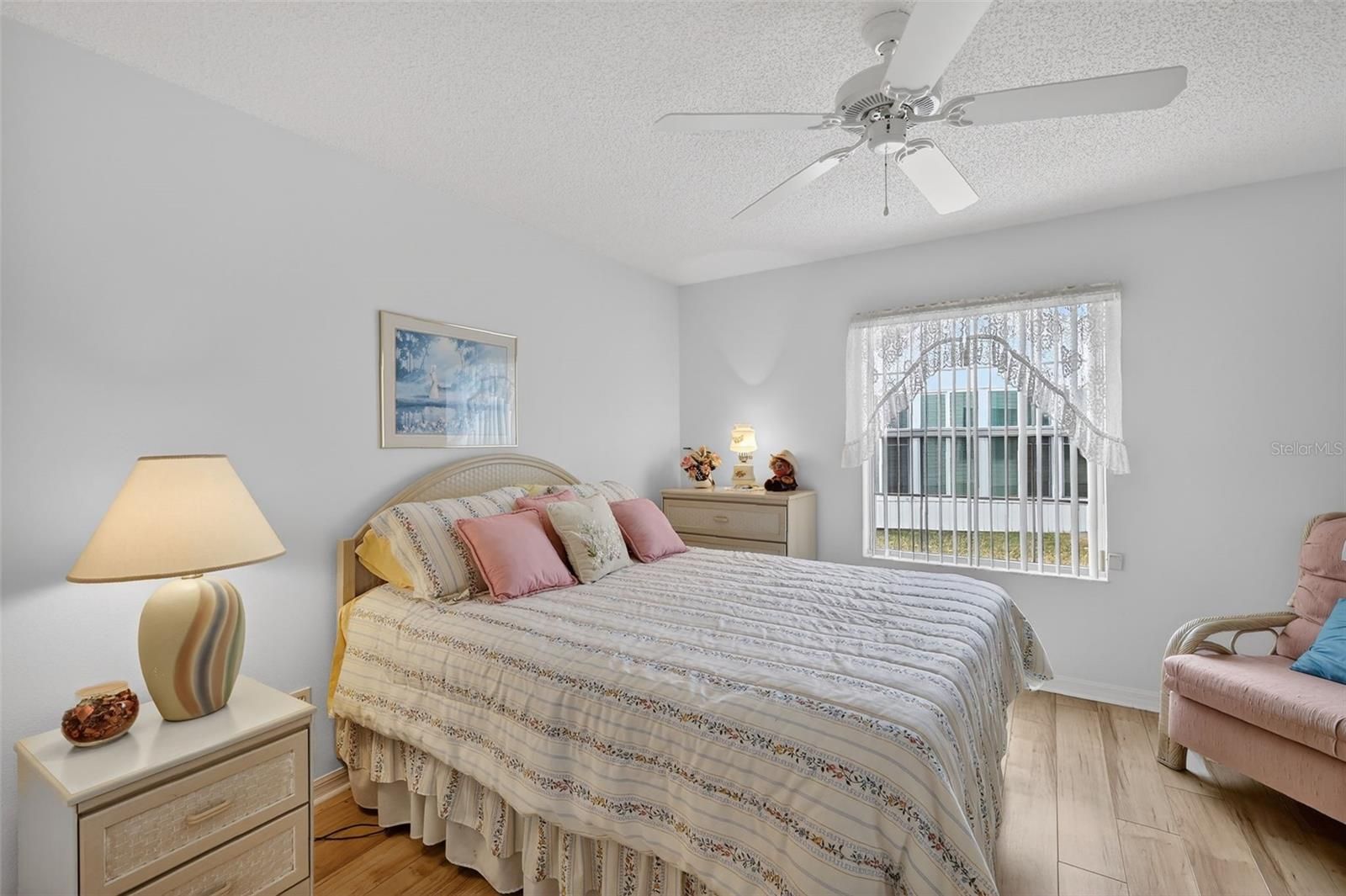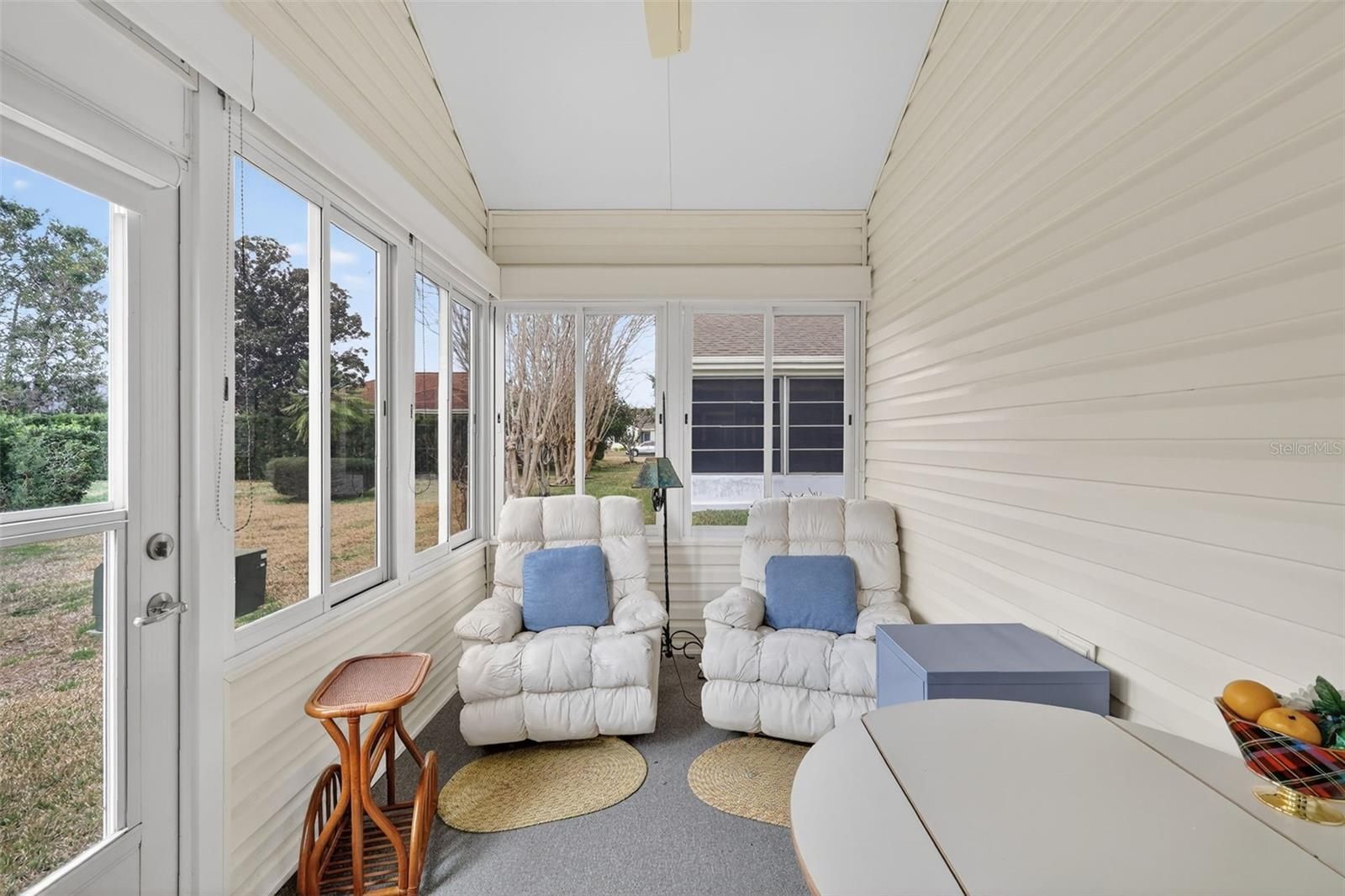 Welcome to this inviting and FULLY FURNISHED 3-bedroom, 2-bath home with 1,774 SqFt of living space, located in the Village of De La Vista in The Villages 55+ community. From the moment you step inside, you’ll feel the home’s charming and welcoming atmosphere, highlighted by light-colored laminate flooring, soothing paint tones, and elegant chair rail accents. The living room blends seamlessly into a dedicated dining room and nicely sized family room with a freestanding electric fireplace in between. The primary suite includes an ensuite bath featuring a walk-in shower and a large walk-in closet. The additional bedrooms and guest bath are thoughtfully located away from the primary suite, providing privacy for both owners and guests. This home is designed with comfort and convenience in mind, featuring an ADA-accessible entryway, wide doorways throughout plus recent updates including a new roof and new HVAC unit. Ideally situated between Spanish Springs and Sumter Landing town squares, you’ll have easy access to dining, shopping, and entertainment. Best of all, this property comes with no bond, offering exceptional value in one of Florida’s most sought-after active adult communities.