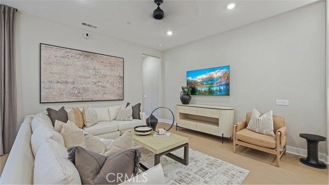 This three-story townhome is host to an open floorplan shared between the kitchen, living and dining rooms, with direct access to an outdoor room through sliding glass doors. A secondary bedroom at the back is ideal for overnight guests or a home office. A loft and three bedrooms occupy the second floor, while the top level has a spacious bonus room and outdoor terrace.