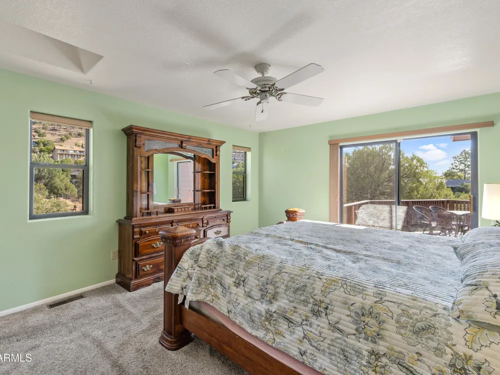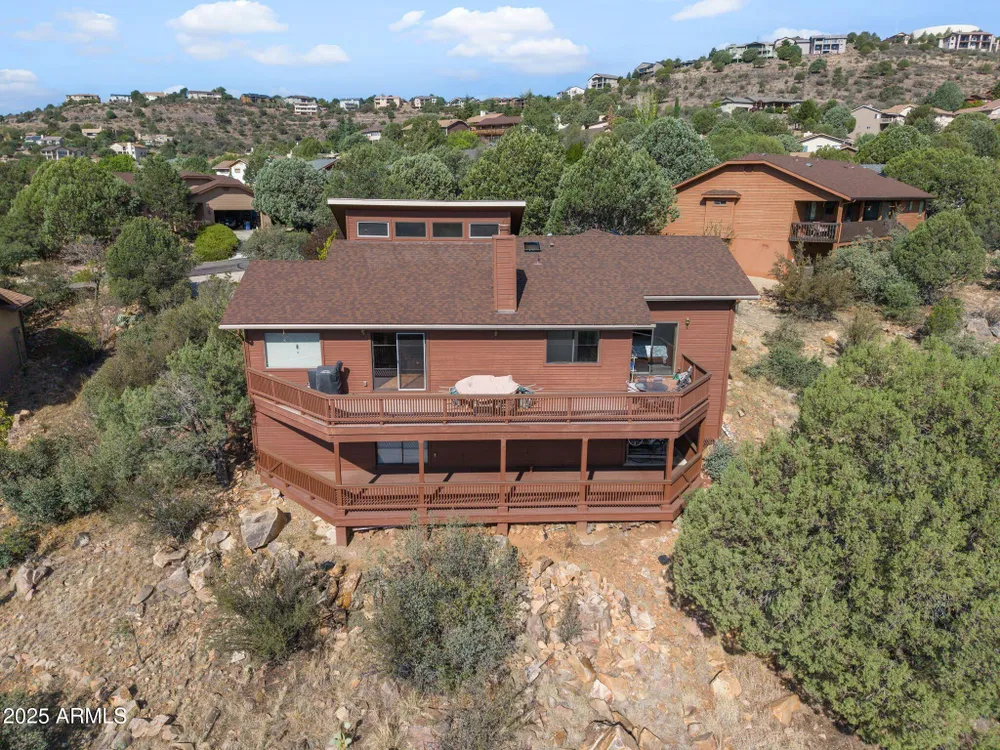Perched on the mountainside in the highly sought-after Yavapai Hills community, this stunning home offers priceless views and the perfect blend of style and comfort. Known for its welcoming neighborhood feel and sparkling community pool, Yavapai Hills is one of Prescott's most desirable locations—and this home is a rare find. The main living area features a semi-open floor plan with soaring ceilings that frame breathtaking panoramic views. Both levels boast full-length decks, inviting you to relax, entertain, and soak in the fresh mountain air. With 4 spacious bedrooms and 3 full bathrooms, there's room for everyone. The updated kitchen shines with stone countertops, combining elegance with functionality. Every detail of this home is designed to highlight the incredible setting!