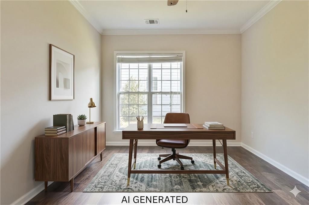 - Crown Molding, Dual Pane Window(s), Insulated Windows, Home Office