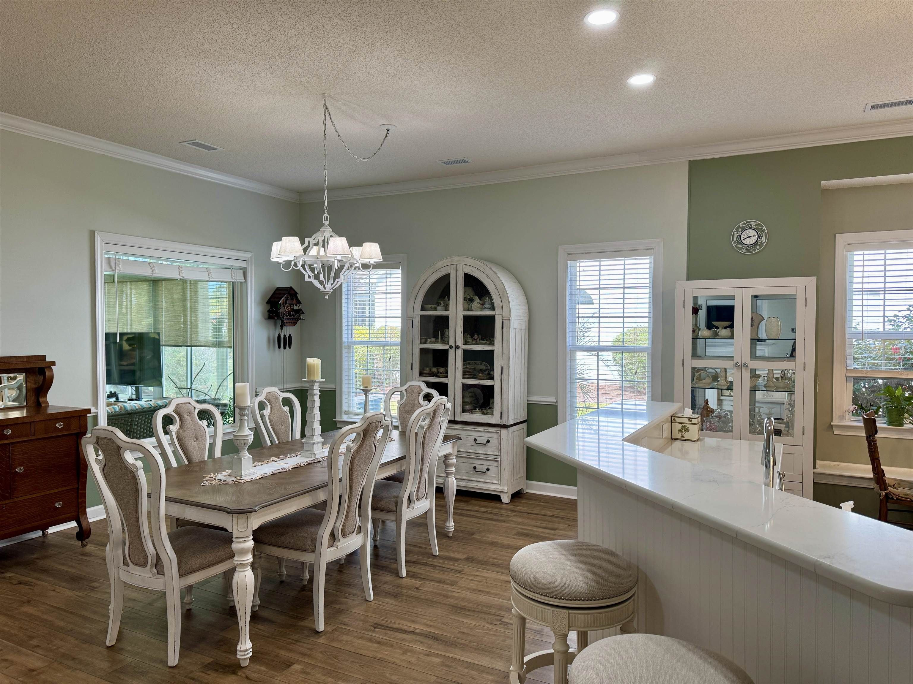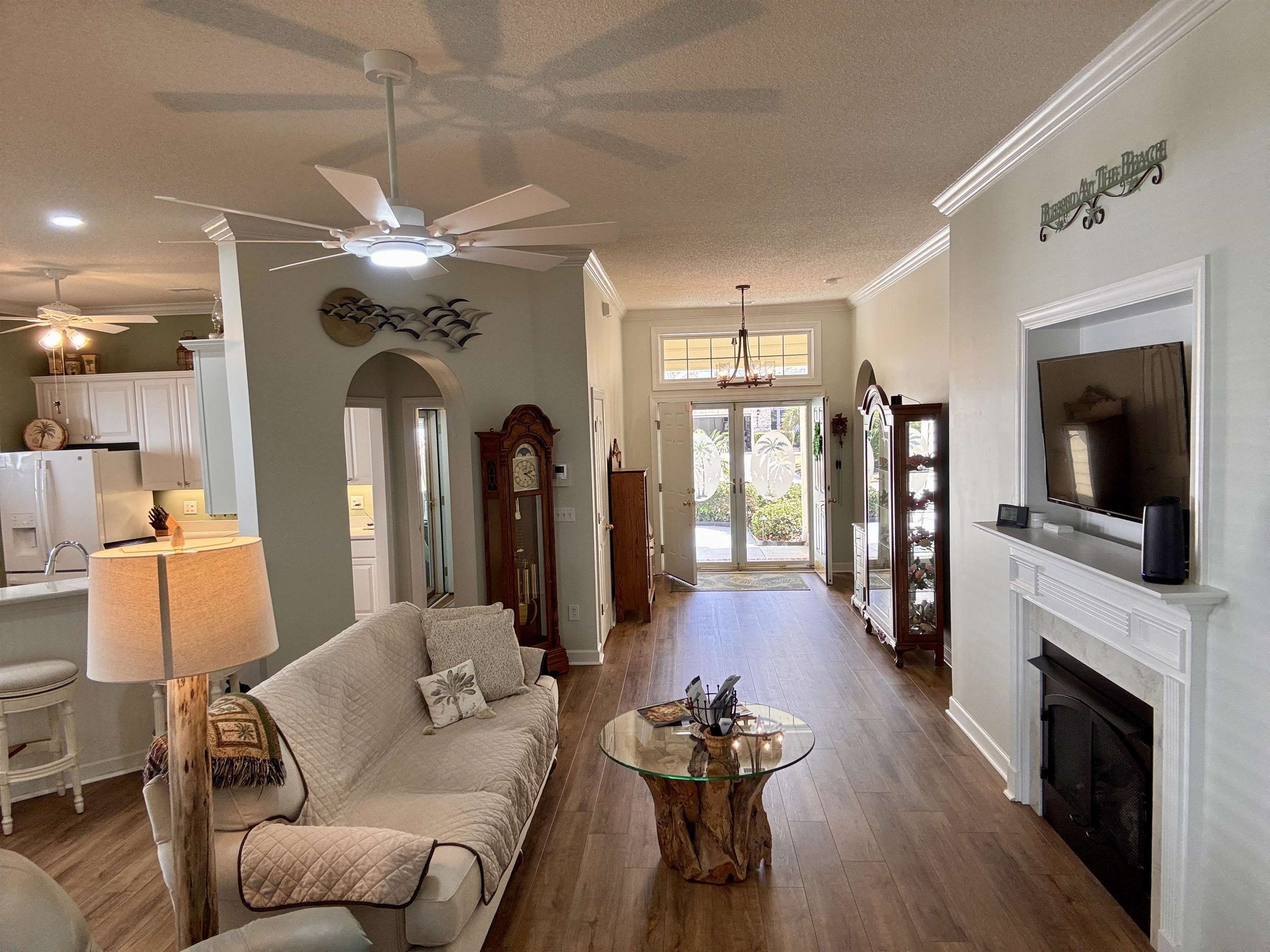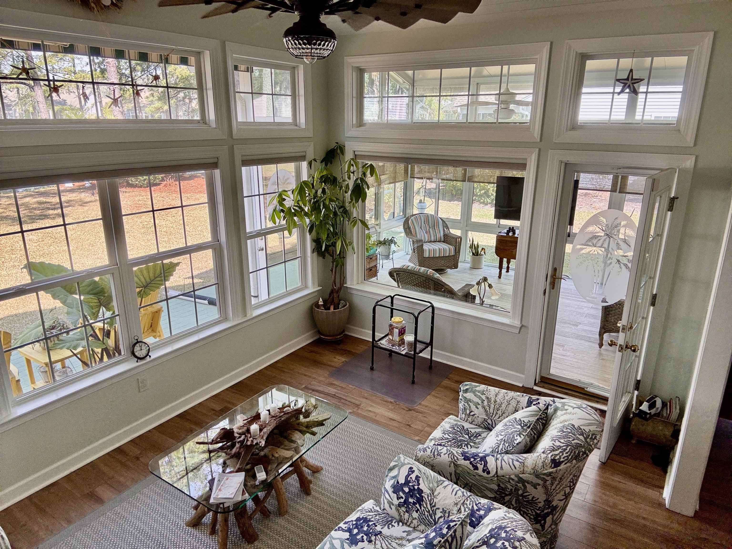 Beautiful completely remodeled 3 bedroom, 2 bath home with an extra large 3 car garage with epoxy coated floor, mini split AC/Heat system, mop sink and a built in Beach storage cabinet, perfectly positioned on a professionally landscaped homesite in the award winning Golf Course Community of Blackmoor. This beautiful home has breathtaking water views from nearly every main living area, with large windows and a Carolina Room designed to keep you connected to the abundant wildlife and tranquil setting. Step through the double front doors into a bright, open living space where the lake becomes the backdrop to everyday living. The spacious living room features a marble trimmed fireplace with a white wood mantle and LVP floors that flow seamlessly into the Carolina Room, Dining Room, and Kitchen, creating an inviting layout for relaxing or entertaining. The kitchen offers white 42” cabinetry, quartz countertops, a large breakfast bar, under cabinet lighting, special in-sink-erator for instant hot water, a pantry, GE appliances, and a dining area, making it both functional and welcoming. The primary master suite overlooks the lake and includes a beautifully remodeled master bathroom with a large walk in shower, double vanity, water closet, an over sized walk in linen closet. and generous custom desinged walk-in closet. The two additional bedrooms, second full bathroom and hall linen closet are located at the front of the home, providing privacy for guests. One bedroom is currently used as an office. Enjoy the outdoors year-round from the enclosed four-season sunroom/screened porch featuring easy pull down shades, extra electrical outlets, full glass bottom windows and a mini split AC/Heat system. Relax on the expansive patio shaded by a remote-powered Sunsetter retractable awning with dimable lighting—perfect for enjoying the changing lake views throughout the day and evening. Other features to this lovely home include custom cabinetry off the kitchen in the laundry area, a coat closet in the foyer, arched door ways, high ceilings, all new light fixtures, designer ceiling fans, and high end fixtures. Additional Major improvements include a new heat pump and air handler (2026), roof (2018), whole-house surge protection, 55 gallon hot water heater with circulating pump for faster hot water to the rear of the home, Metal pull down stairs to attic storage over the garage, three attic exhaust fans, a Generac generator, professionally installed landscape lighting (2025), Rain Bird irrigation system, plus gutter helmets. The oversized 3-car garage is a standout feature that is wide open, with naiutral light plus over head light fixtures, heating and air, a ceiling fan, attic storage, built-in storage cabinetry, workshop space, a mop sink, a side door, and insulated garage doors with vents. Residents of Blackmoor enjoy access to a clubhouse, pool, and pickleball courts, all surrounding the Gary Player Signature course at Blackmoor Golf Club. Conveniently located just minutes from the beaches, the Murrells Inlet MarshWalk, shopping, dining, medical facilities, and the Intracoastal Waterway, this home offers the best of Grand Strand living.