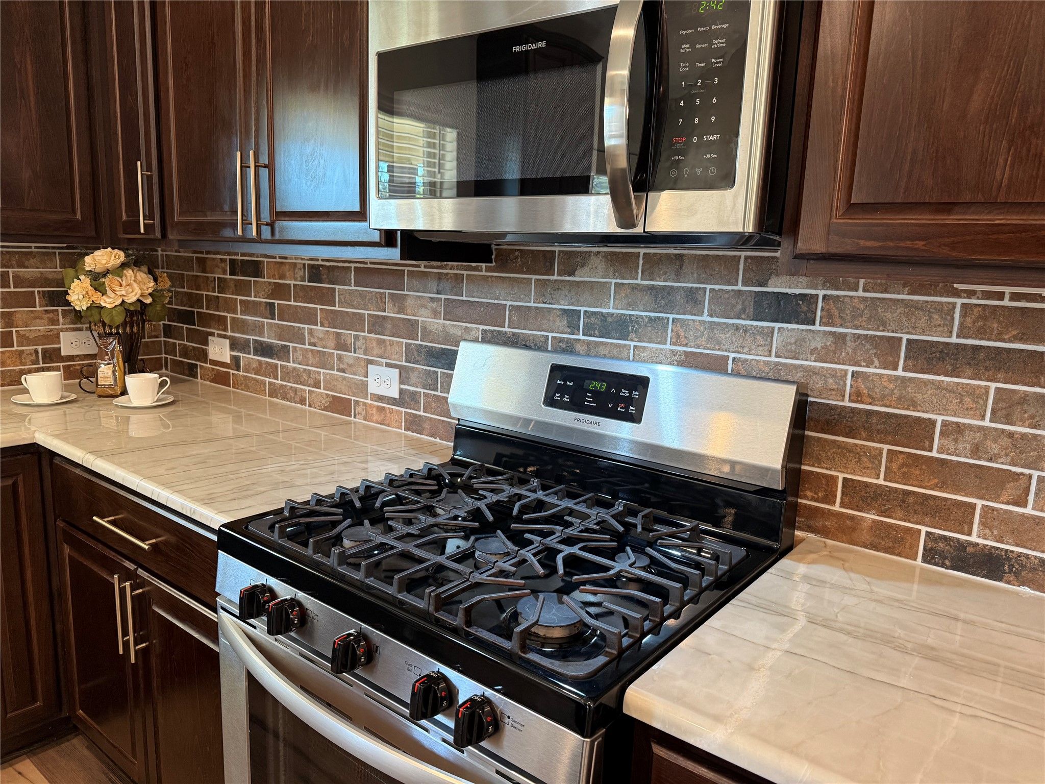 - Dishwasher, Electric Oven, Gas Cooktop, Disposal, Microwave, ENERGY STAR Qualified Appliances, Refrigerator