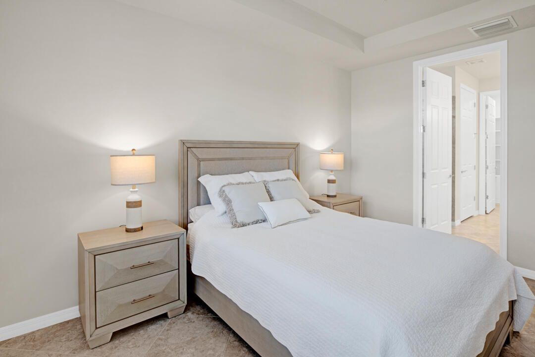 Move in Ready with a beautiful lake view! 2 bedrooms, 2 bathrooms, plus den/office with French doors in gated, pet friendly, Veranda Gardens. Gourmet kitchen features a large island, GAS range with hood, SS appliances, stylish backsplash, and designer lighting. Open-concept layout seamlessly connects the kitchen, dining, and living areas with tile flooring throughout. A spacious sunroom leads to the extended screened lanai, where you'll enjoy sparkling lake views. Large primary suite is a true retreat with spa-like bath, walk-in shower, dual sinks, walk-in closet with built-in shelving. Additional highlights: laundry room w/storage, 9' ceilings, plantation shutters, remote blinds, 8-ft doors, ceiling fans, smooth-finish walls, IMPACT windows, New A/C and water heater.