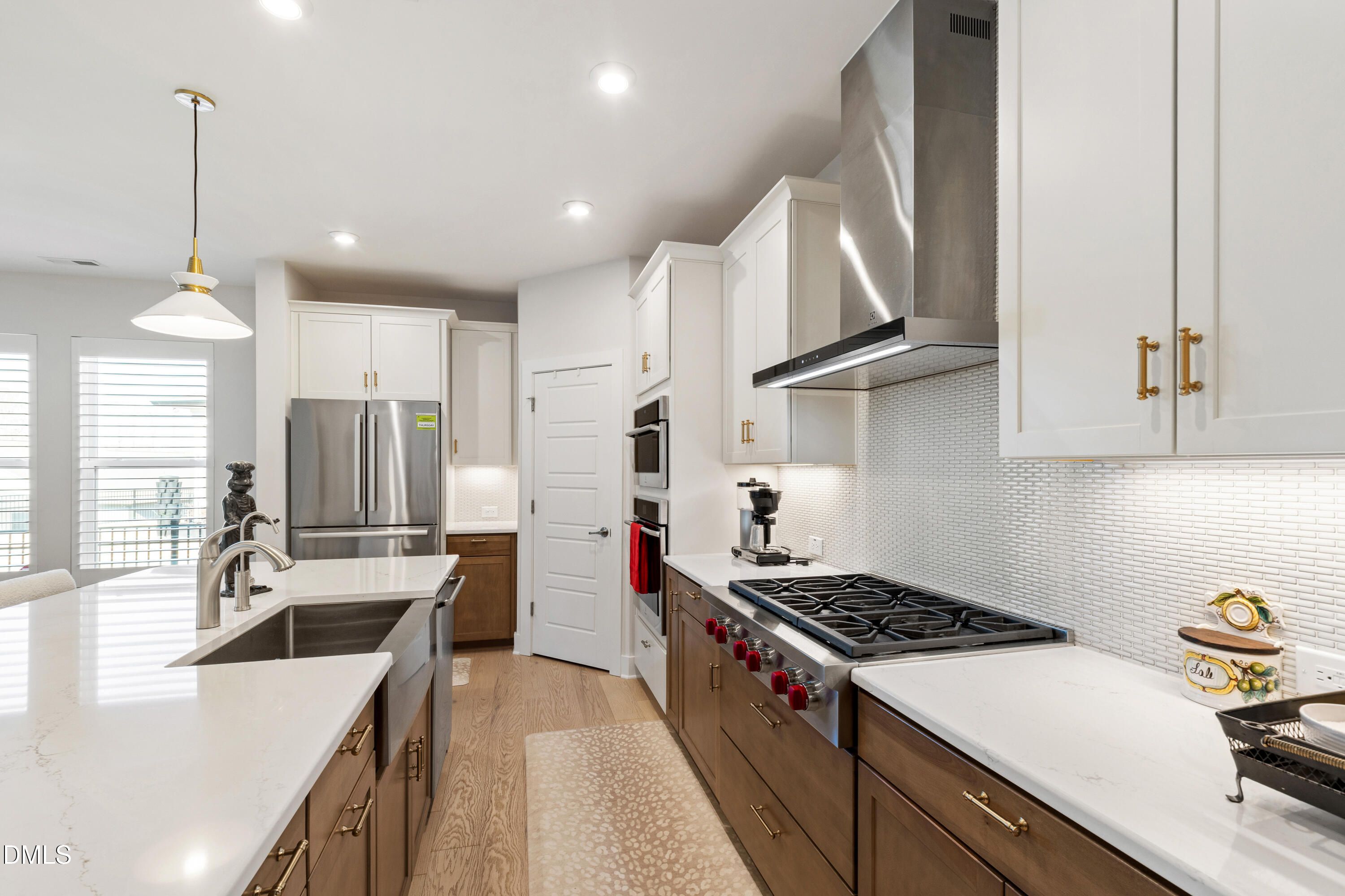 - Dishwasher, Disposal, Electric Oven, Gas Cooktop, Microwave, Range Hood, Stainless Steel Appliance(s), Tankless Water Heater, Washer, Washer/Dryer