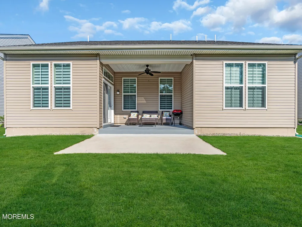 Step into design perfection with this beautifully open and inviting floor plan! The gourmet kitchen is a chef's dream, offering granite countertops, stainless steel appliances, ample cabinetry, and a center island that flows effortlessly into the casual dining area and spacious great room, perfect for entertaining or relaxing in comfort. The primary Suite features a generous walk-in closet and a spa-like bath complete with a seated shower and dual-sink vanity. A comfortable guest bedroom and full bath complete this thoughtfully designed single-level home. Enjoy peaceful mornings and cozy evenings on the charming covered rear porch. The yard is private with no neighbors behind you. Plus, you'll love having access to the award-winning 13,000 sq. ft. clubhouse, boasting fitness rooms, billiards, card rooms, a heated outdoor pool, and so much more!