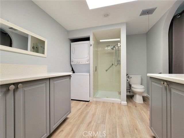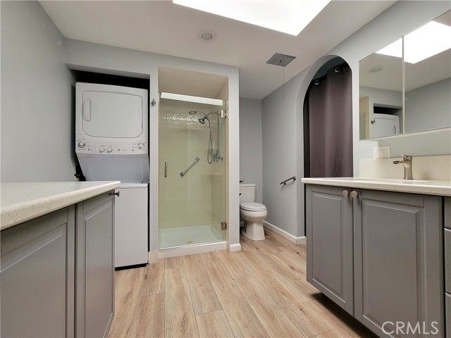 Enjoy this charming remodeled Granada located near Serpentine Walk. It is light and bright and enjoys a southeastern exposure. Eminities feature central heat and air, smooth ceilings, newer windows, and a stackable washer/dryer. This gem features ceiling fans installed in the dining room and master bedroom. With two wonderful outdoor areas, one a tiled atrium and a cozy front patio, covered for you to enjoy the beautiful California weather. This is a premier 55 + senior community located very near Laguna Beach and offers many great amenities. A 27-hole executive course awaits you with a 9-hole executive walking course, tennis courts, bocceball courts, several excellent fitness centers, seven clubhouses, five pools, and Clubhouse 4, which offers everything from oil and water color painting to ceramics and jewelry making. The wood shop awaits you, and also the sewing room. There are over two hundred clubs with an interest in charming everyone, and an 850-seat theatre with many highly gifted performers and community Theatre Guild performances. Come and live in this exceptional senior community and stay healthy and happy.