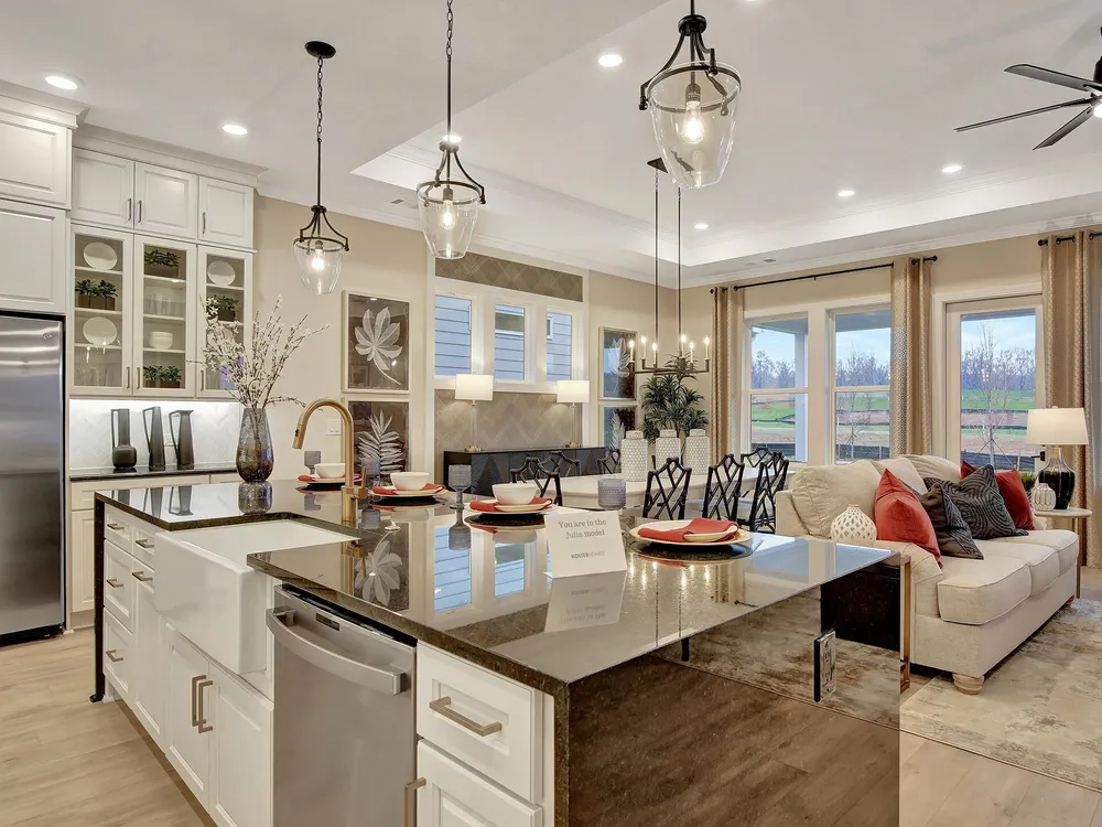 - Double Vanity, Main Level Primary, Tray Ceiling(s), Walk-In Closet(s), Den, Great Room, Laundry Facility