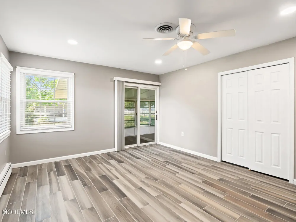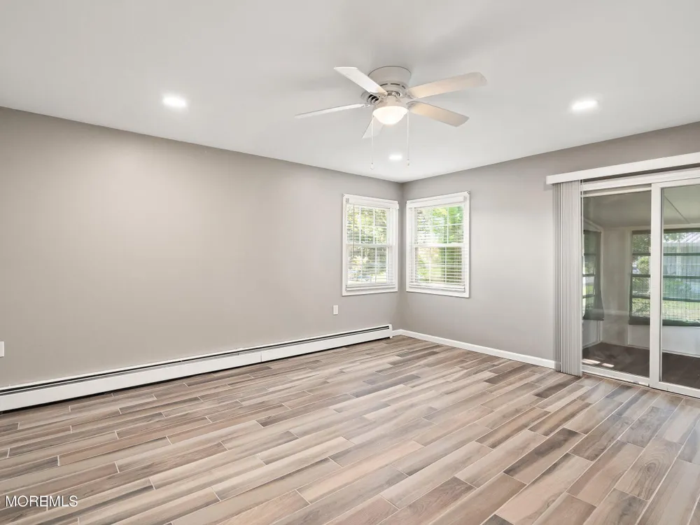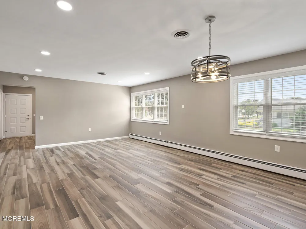 Welcome to this beautifully maintained, freshly painted 2-bedroom, 2-bath Capri model in the desirable Holiday City West active adult community. Gleaming wood plank porcelain tile floors flow throughout the spacious living and dining areas, while the updated kitchen boasts stainless steel appliances, granite countertops and marble backsplash. Sliders from the living room lead to a bright, private sunroom—perfect for morning coffee or evening relaxation. Enjoy the charm of a cozy front porch and the convenience of an attached garage. Community amenities include a clubhouse, pool, tennis, bocce, and numerous social activities, all just minutes from shopping, dining, and the Jersey Shore. Don't miss this opportunity!