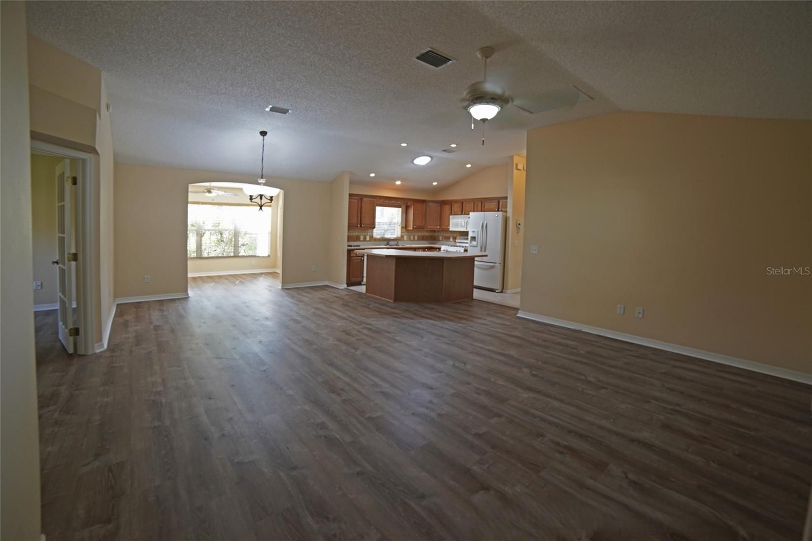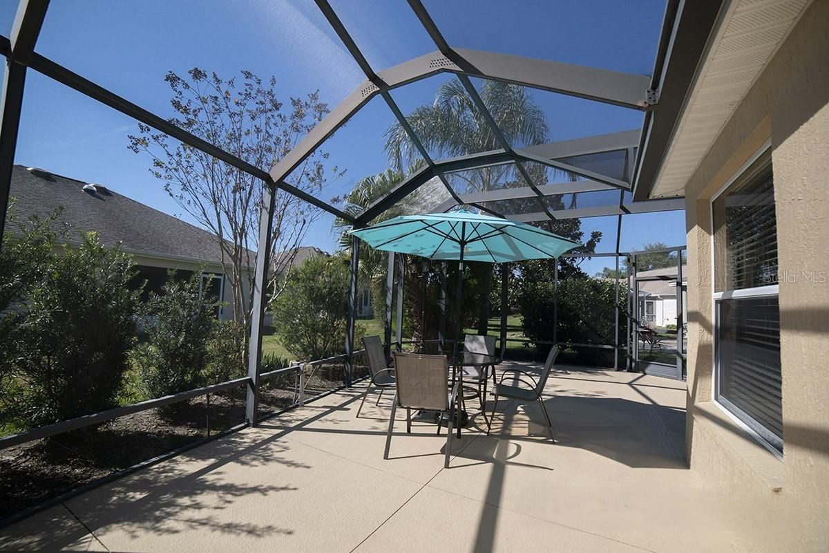 Paradise found in the sought after Village of Winifred. This stucco home is only minutes to Lake Sumter Landing and shopping via golf cart. Sits back on a Quiet and secluded cul-de-sac with only 3 homes. Open floor plan with newer luxury vinyl plank flooring in every room, newer roof, bond almost paid off, new epoxy flooring in garage. Split floor plan with guest rooms on opposite side from master. Sun room with plenty of light. Solar tubes add additional light to kitchen and laundry areas. Driveway and walkways made from paver bricks. Large pie-shaped lot with gorgeous landscaping. Oversized Lanai with excellent privacy. Front patio and back lanai furniture included. 440 sq/ ft 2-car garage. 3 convenient neighborhood cart path exits from this village: one directly to Arnold Palmer Golf course/driving range/club house; one directly to Laurel Manor regional recreation/fitness center; and one to the main cart path on Buena Vista — minutes from Lake Sumter Landing Town Square and shopping on 466.