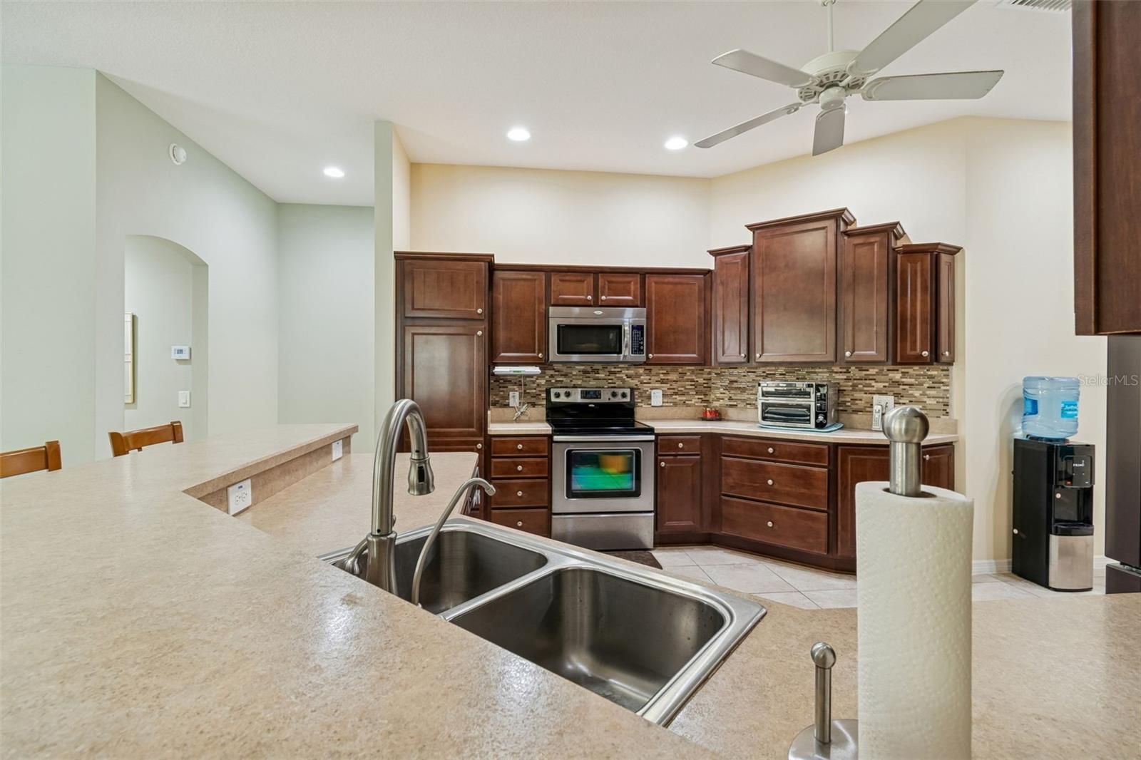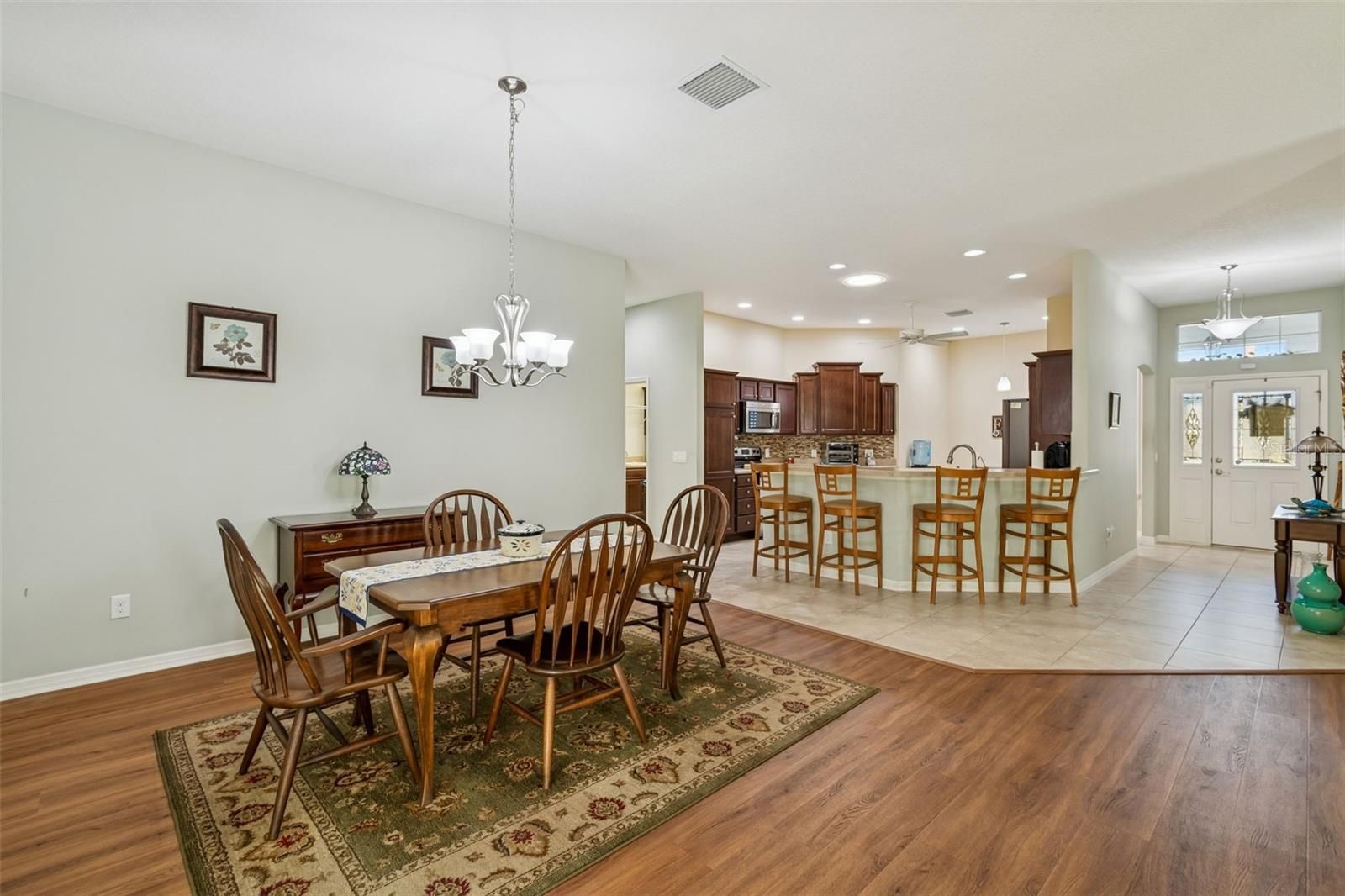 The Village of Sanibel , one of the most desirable areas in The Villages! Welcome to this STUNNING 3-bedroom, 2-bath home featuring an impressive 2-CAR PLUS GOLF CART GARAGE all set with in one of the most desirable floor plans THE GARDENIA just minutes away from championship Golf, Lake Sumter Landing, Brownwood Square, recreation centers, pools and Bonifay Country Club (great for dinning). This Home offers an open concept layout with abundant natural light with multiple Sun Tubes that also include night lights. The open-concept kitchen is both stylish and functional, boasting STAINLESS STEEL APPLIANCES, upgraded cabinetry with pull out shelves and build in pantry— An EAT-IN BREAKFAST AREA completes this ideal kitchen for everyday living and hosting guests. The spacious primary suite serves as a private retreat with Tray Ceiling and double walk-in closets, adding to this a luxurious ensuite bathroom featuring a beautiful, oversized WALK IN TILED SHOWER. This home is loaded upgrades, including a whole-home water filtration system, PLANTATION SHUTTERS and most of all a fully finished FLORIDA ROOM with Tile floor, ceiling fans, drywall, real double pane windows and FULLY OPENING sliders that open this room to the living room and dinning room making a massive open area connecting the Living room, dinning room and Florida room all together. You will find TILE and LAMINATE flooring throughout,(guest bedroom with carpet in great condition.) Natural light is enhanced by a SOLAR tube that fills areas with natural light. The kitchen boasts HIGH-DEFINITION countertops, STAINLESS STEEL appliances, TILE backsplash, cabinet rollouts, and a Cabinet pantry. The Guest bathroom includes a ceramic tile, tile tub/shower combo, upgraded cabinetry, and tall high-definition countertops. The 1st bedroom includes both a custom built in desk and cabinets as well as a double twin bed MURPHY BED with storage perfect for guests and keeping your day to day affairs in order. The laundry room features top-of-the-line front-loading washer and dryer with ample cabinet space for even more storage. Everyone in the villages wants space for the Golf CART so The 2-car plus GOLF CART GARAGE is a very big plus +, let’s not forget the garage door retractable screens! These screens cannot be beat when working on projects in the garage, attic stairs with attic decking for storage is also a big plus and not often found. This home truly has it all, and it’s ready for you. Make this your home and begin to enjoy the lifestyle you are dreaming of! The location is ideal, being close to; CR 466A which provides access to shopping including Colony Plaza and the Walmart Neighborhood Market, dining and medical services. Also close to the Bonifay Country Club, the Captiva Pool and Charlotte Pool as well as numerous Executive Golf Courses Perfectly located just minutes from Brownwood and Lake Sumter Landing Town Squares, Medical Facilities, Shopping, Restaurants and Entertainment with many options for recreation, GOLF courses, pickle-ball, swimming pools and nature! Call today to schedule your private showing and see for yourself why life in The Villages is all about living better, not colder!