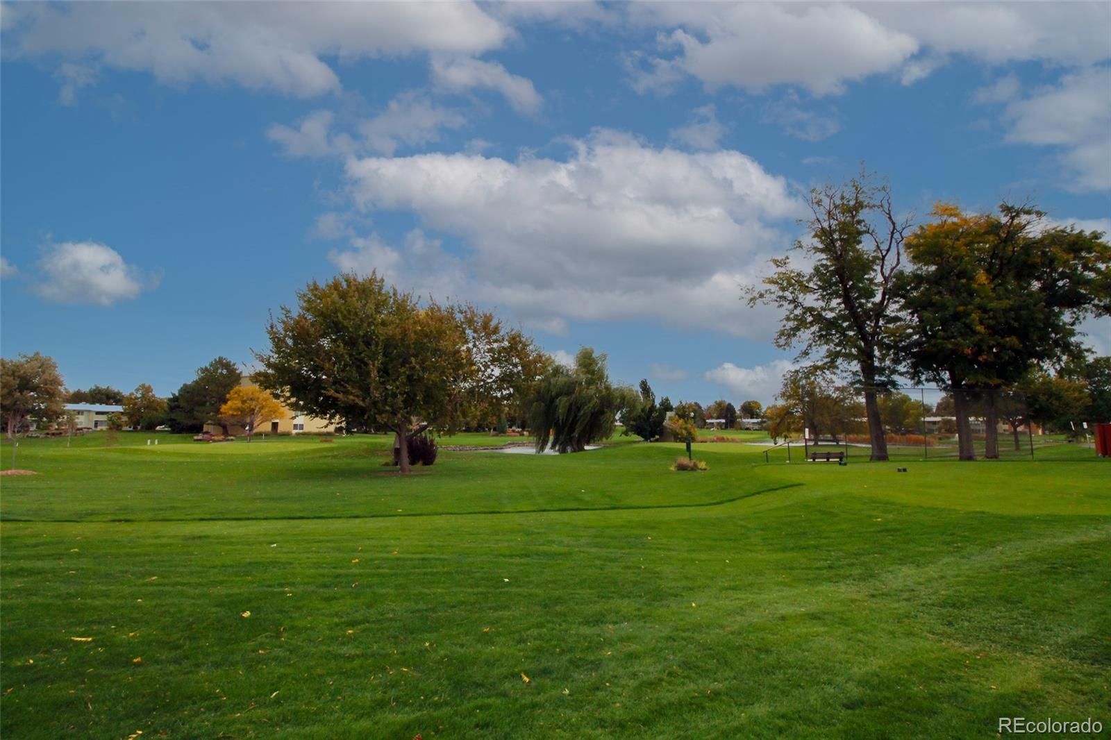 Welcome to Windsor Gardens, Denver’s premier 55+ active adult community! This beautifully refreshed ground-floor corner unit ON THE GOLF COURSE combines comfort, convenience, and community. Featuring new paint and carpet, this 2-bedroom, 1-bath home is move-in ready and offers a bright, open layout with a covered patio that doubles as a private entry and outdoor retreat. Enjoy the convenience of a 1-car detached garage and a storage locker. Windsor Gardens offers resort-style amenities including a golf course, indoor and outdoor pools, sauna, fitness center, clubhouse, restaurant, community gardens, walking trails, nature preserve, RV storage, and countless clubs and activities. Monthly HOA dues include property taxes, heat, water, sewer, trash, recycling, 24/7 patrol, full-time onsite management, and building maintenance. This really is carefree living! Location is second to none with easy access to Cherry Creek, Lowry, DIA, Downtown Denver and the High Line Canal Trail that runs along the south side of the community, making this one of Denver’s best values!