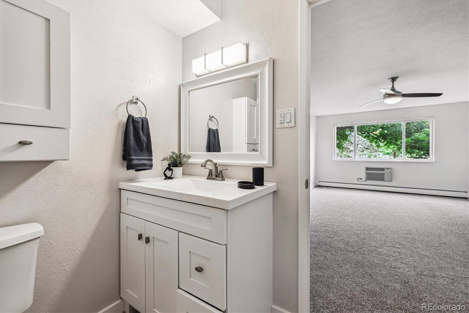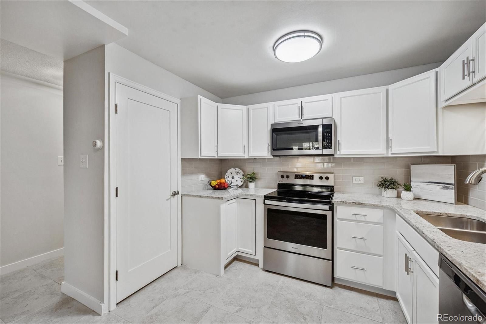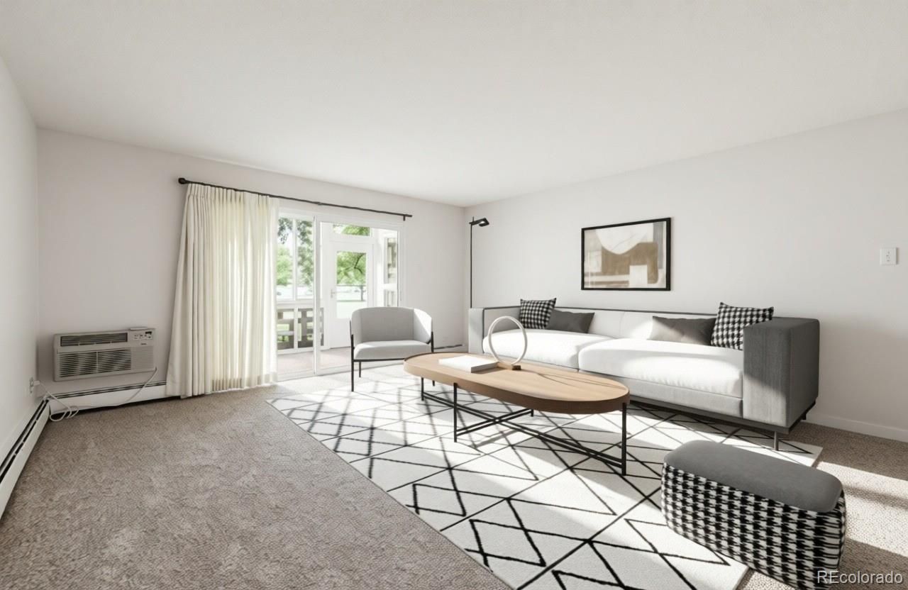 Golf Course Views from 1st Floor Condo! Remodeled and beautiful, this property is 1200 sf, with 2 bedrooms, 2 bathrooms, multi-purpose room, and 1 detached garage included! Kitchen features open floorplan- newer cabinetry freshly painted white, stone slab counters, tile backsplash, stainless appliances, tile floor, and spacious pantry. Bathrooms remodeled with tall white vanities, updated fixtures, lighting, and tile surrounds in both tub and shower. Primary bedroom is oversized with en-suite 3/4 bathroom and oversized walk-in closet. All new carpet and interior nuetral 2 tone paint color scheme. Enjoy the vast golf course scenery from this double pane vinyl enclosed lanai with tile floor. Bonus storage room in building. Additionally there are 2 updated wall ac units- one in living room, the other in primary bedroom. This condo is a must see!**Windsor Gardens is Colorado's Largest Age 55+ Active Adult Living Condo Community. Did you know? Monthly HOA Dues include annual property taxes! And heat, water, sewer, trash, round-the-clock patrolling community responders, full time onsite association management, grounds/building maintenance, and activities department. Enjoy clubhouse amenities such as fitness center, indoor/outdoor pools, hot tub, sauna, billiards, library, craft rooms for ceramics, sewing, woodworking, and 9 hole par 3 golf course and onsite restaurant both open to the public. Stay engaged with a wide array of activities, clubs, and events scheduled every month. Additional features include garden plot program, private walking trail and nature preserve, and RV/Boat storage. The Highline Canal runs full length along south side of the complex. RTD Bus Stops located thru-out the community. FHA/VA approved. Close to restaurants, stores, shopping…Minutes to Lowry, Hwy 225, Cherry Creek…Easy access to DIA and downtown. Come see for yourself what Windsor Gardens has to offer. ©2021**