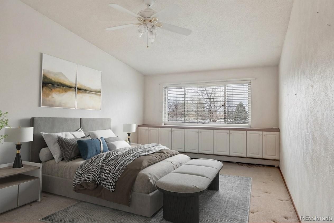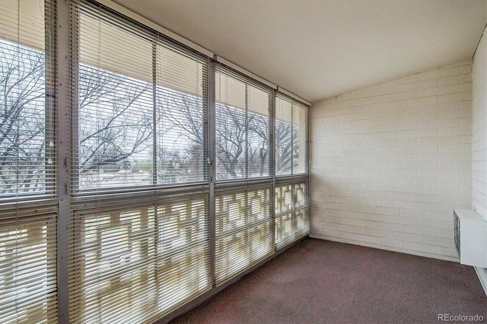 Penthouse condo with trees and peakaboo mountain views in winter! Seller offering a $5000 credit to buyers towards closing costs or off the price! Great location close proximity to the clubhouse and all the amenities. Renovated kitchen is spacious with lots of white cabinetry and plenty of countertop space. Breakfast bar with stool seating and additional eating nook. All appliances included! Updated bathroom vanities, tops, fixtures. Spacious primary bedroom with large walk-in closet and en-suite 3/4 bathroom. 2nd bedroom opens to living room for flexible space- can be bedroom, office, or additional living room...1 newer detached garage is deeded with this property, and bonus storage room is included for this unit located on same floor as condo. Glass/screen enclosed lanai. Move right in- or update further to your liking! **Windsor Gardens is Colorado's Largest Age 55+ Active Adult Living Condo Community. Did you know? Monthly HOA Dues include annual property taxes! And heat, water, sewer, trash, round-the-clock patrolling community responders, full time onsite association management, grounds/building maintenance, and activities department. Enjoy clubhouse amenities such as fitness center, indoor/outdoor pools, hot tub, sauna, billiards, library, craft rooms for ceramics, sewing, woodworking, and 9 hole par 3 golf course and onsite restaurant both open to the public. Stay engaged with a wide array of activities, clubs, and events scheduled every month. Additional features include garden plot program, private walking trail and nature preserve, and RV/Boat storage. The Highline Canal runs full length along south side of the complex. RTD Bus Stops located thru-out the community. FHA/VA approved. Close to restaurants, stores, shopping…Minutes to Lowry, Hwy 225, Cherry Creek…Easy access to DIA and downtown. Come see for yourself what Windsor Gardens has to offer. ©2021**