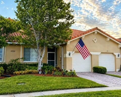 Beautifully maintained 2 Bedroom/2 Bath/+Den home in sought-after Woodfield 55+active community. Ready to move in with 2026 water heater/2024 AC. No carpeting here! The den is a great overflow flex space. Kitchen is large with real wood cabinets w/pull outs, granite countertops. Spacious living area opens up to a tropical oasis on the porch over looking the lake. Clubhouse w/heated pool, fitness center, bocce ball, pickleball, tennis and a fully array of social activities. Close to great dining, shopping and, of course, Vero's beautiful beaches. This home has lower HOA dues.