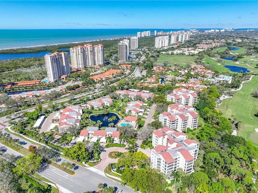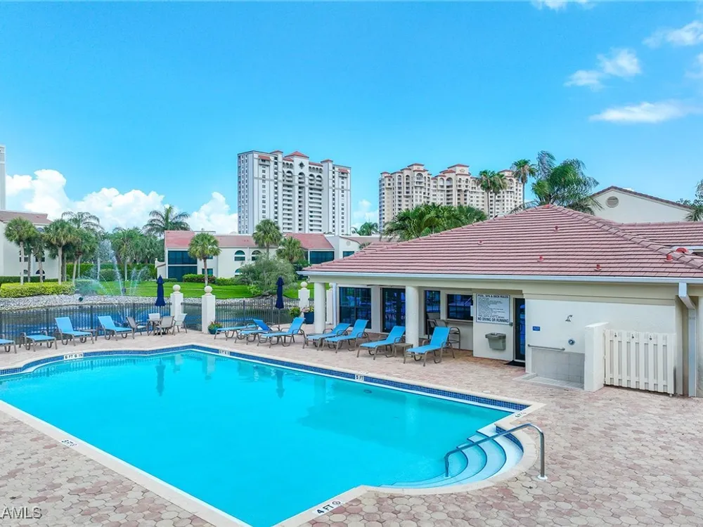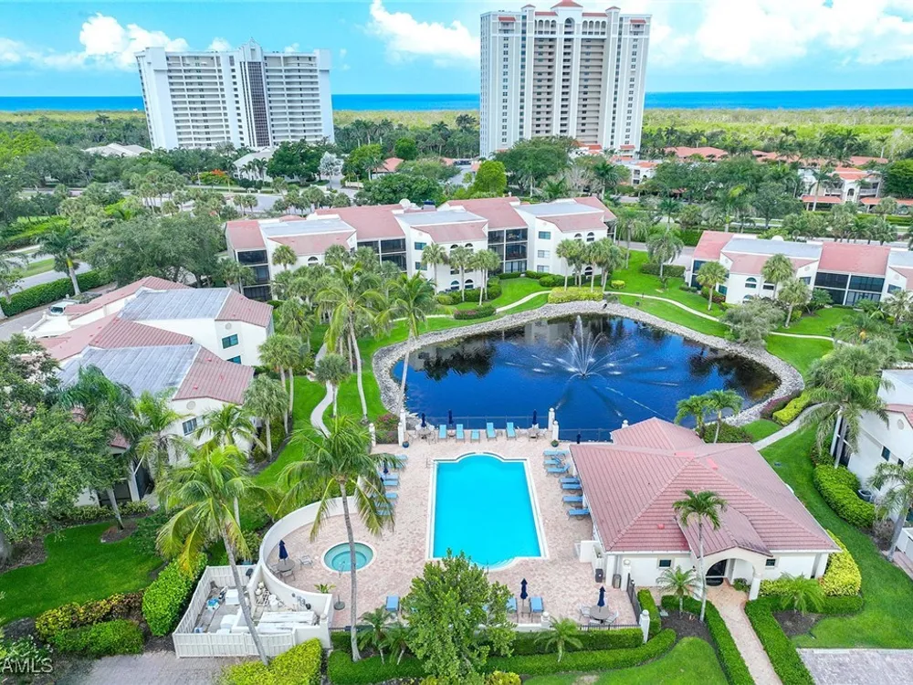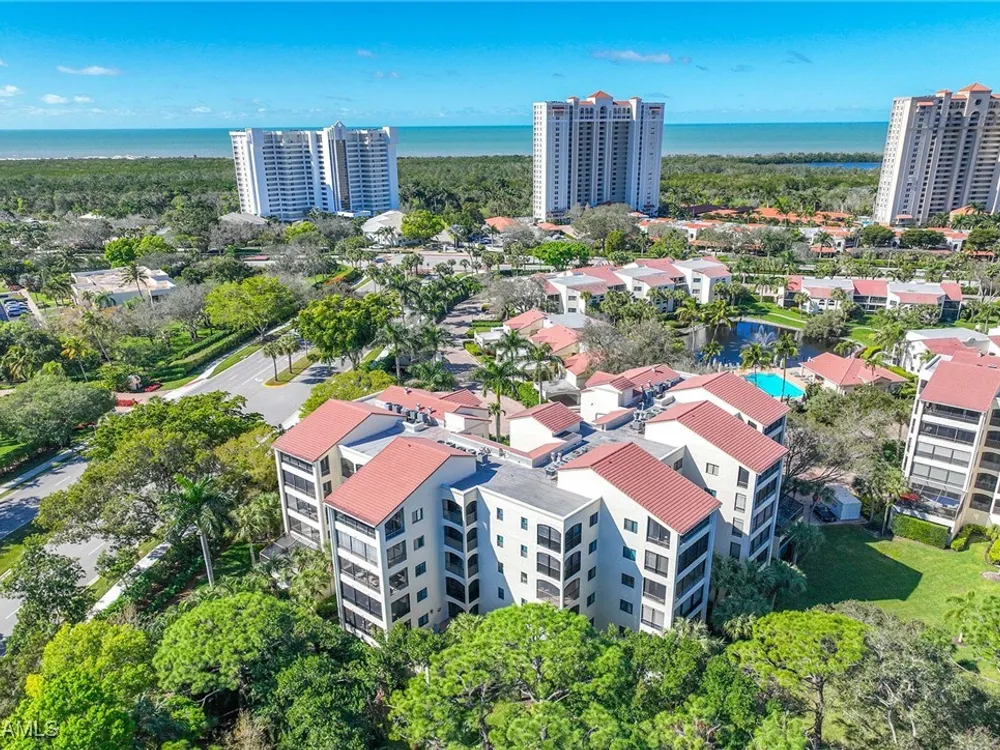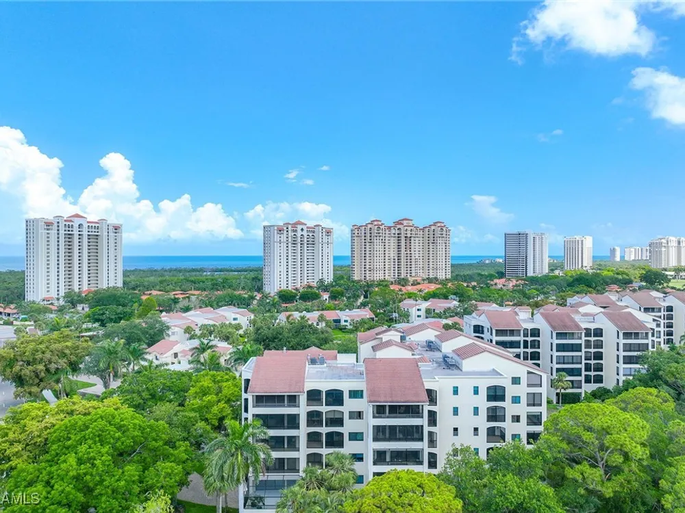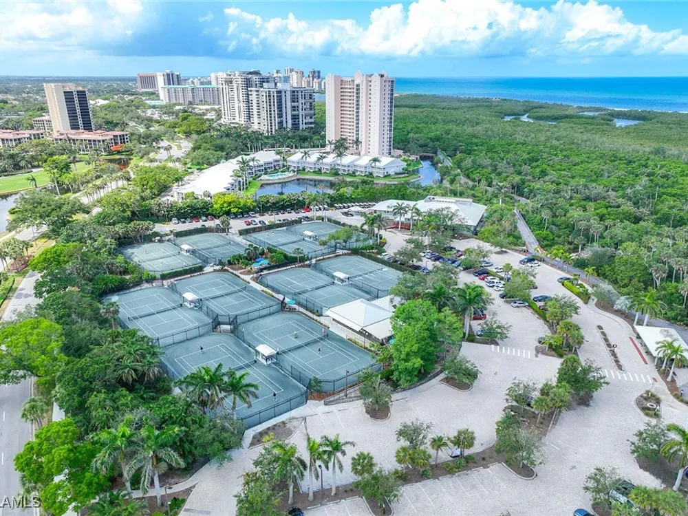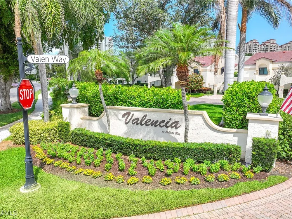 Valencia at Pelican Bay is one of the desirable locations in Naples! In the heart of Pelican Bay, it is a short distance to the Tennis Commons area, Boardwalk Beach tram and the Sand Bar Restaurant. The private Club at Pelican Bay is also a short distance and offers social and golf memberships. The Valencia community is a beautifully landscaped enclave including a large, heated pool, spa, sundeck and cabana overlooking a tranquil lake. Inspired by its namesake in Spain, Valencia was designed to encompass architectural elements reminiscent of Valencia. This fourth-floor residence has three balconies and spacious walk in primary bedroom closet. The kitchen features a new stove and refrigerator and access to a balcony. Every window and sliding glass door frames lush tropical vegetation and treetops with blue skies and sunlight. New carpet in both bedrooms and main bath has a shower and tub. Casually furnished for easy living.