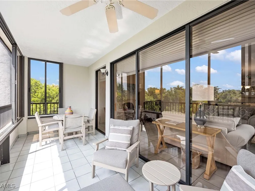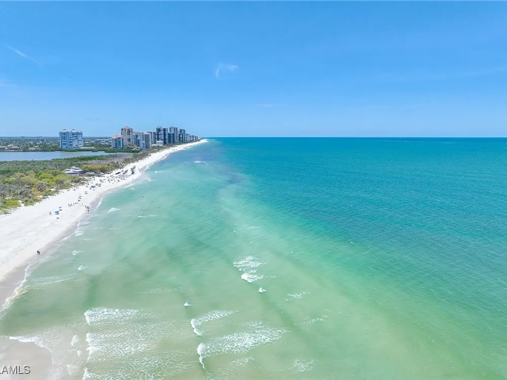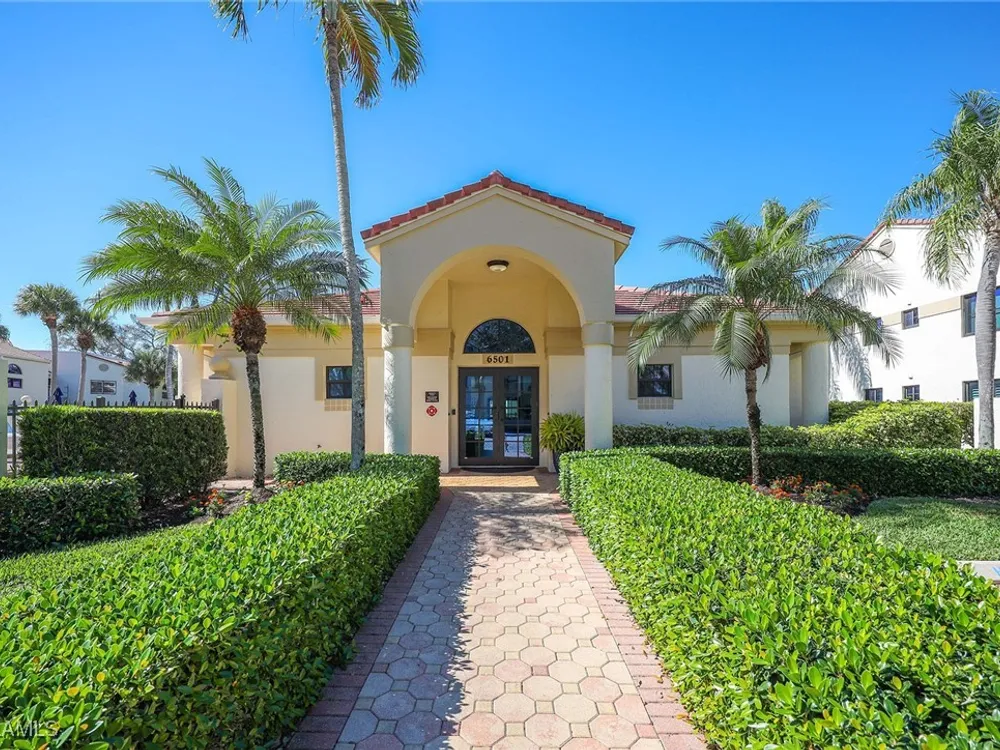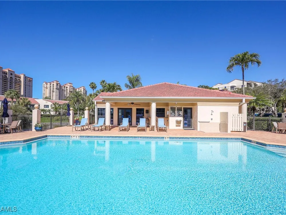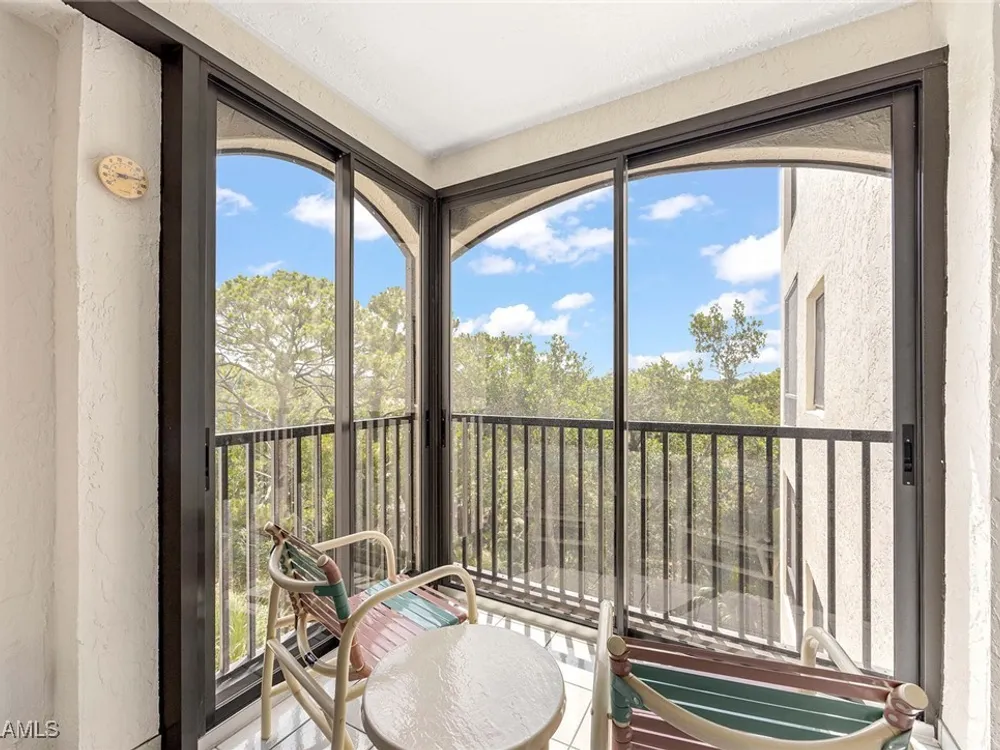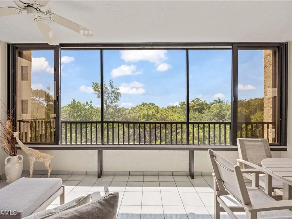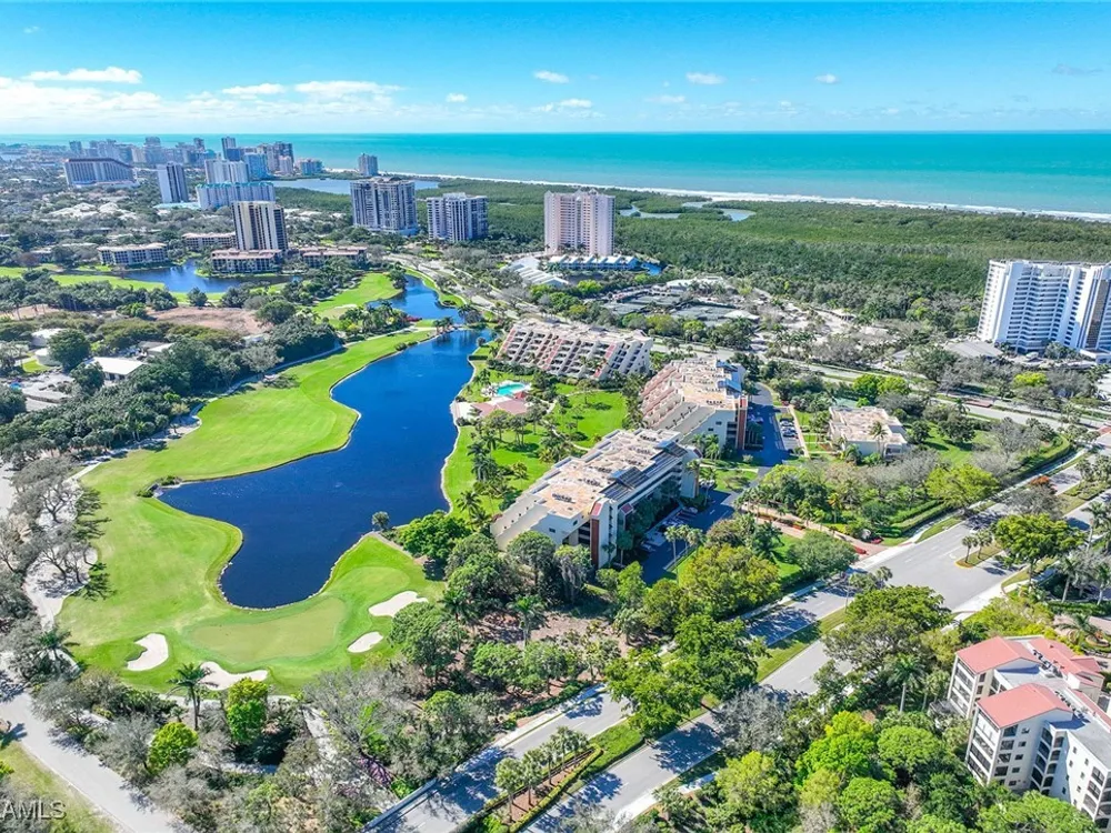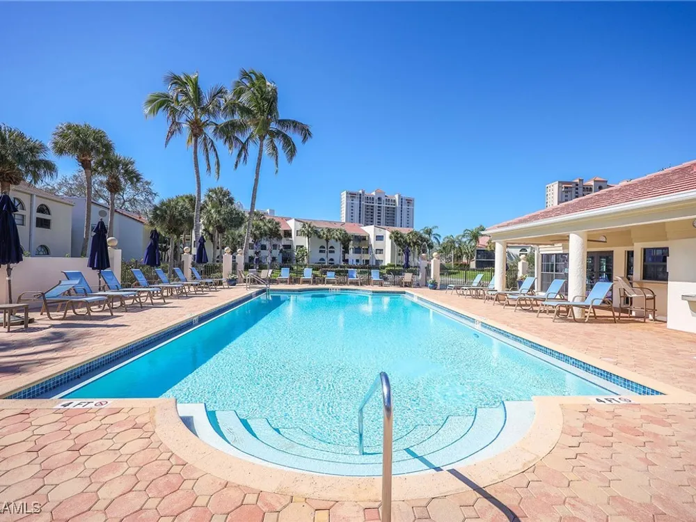 Valencia at Pelican Bay is one of the desirable locations in Naples! In the heart of Pelican Bay, it is a short distance to the Tennis Commons area, Boardwalk Beach tram and the Sand Bar Restaurant. The private Club at Pelican Bay is also a short distance and offers social and golf memberships. The Valencia community is a beautifully landscaped enclave including a large, heated pool, spa, sundeck and cabana overlooking a tranquil lake. Inspired by its namesake in Spain, Valencia was designed to encompass architectural elements reminiscent of Valencia. This fourth-floor residence has three balconies and spacious walk in primary bedroom closet. The kitchen features a new stove and refrigerator and access to a balcony. Every window and sliding glass door frames lush tropical vegetation and treetops with blue skies and sunlight. New carpet in both bedrooms and main bath has a shower and tub. Casually furnished for easy living.