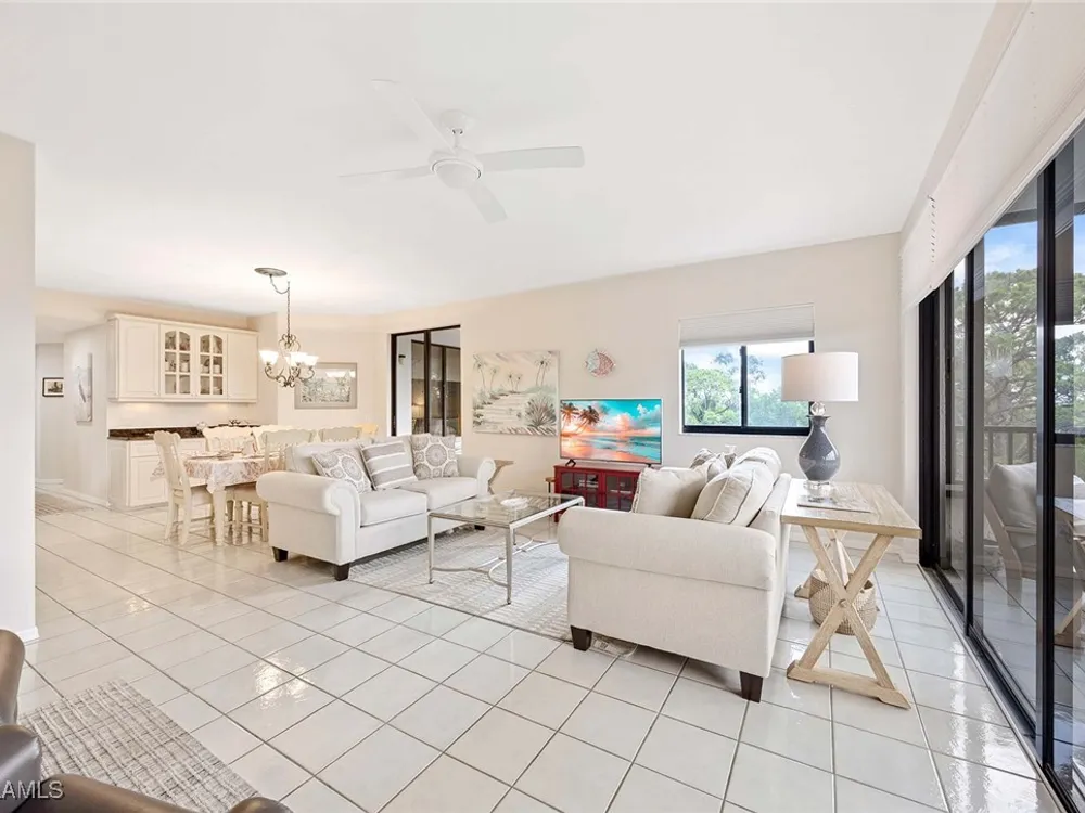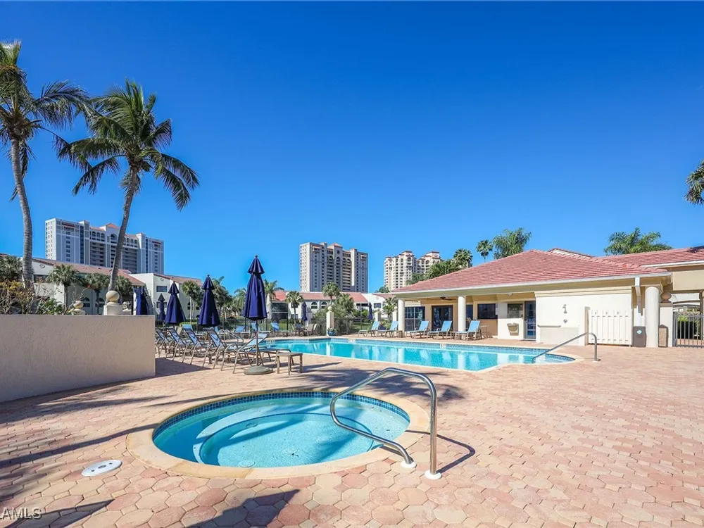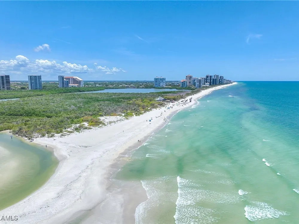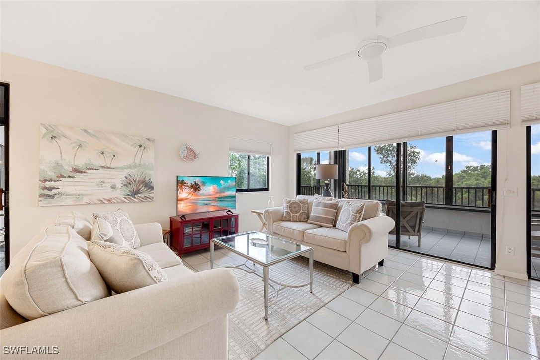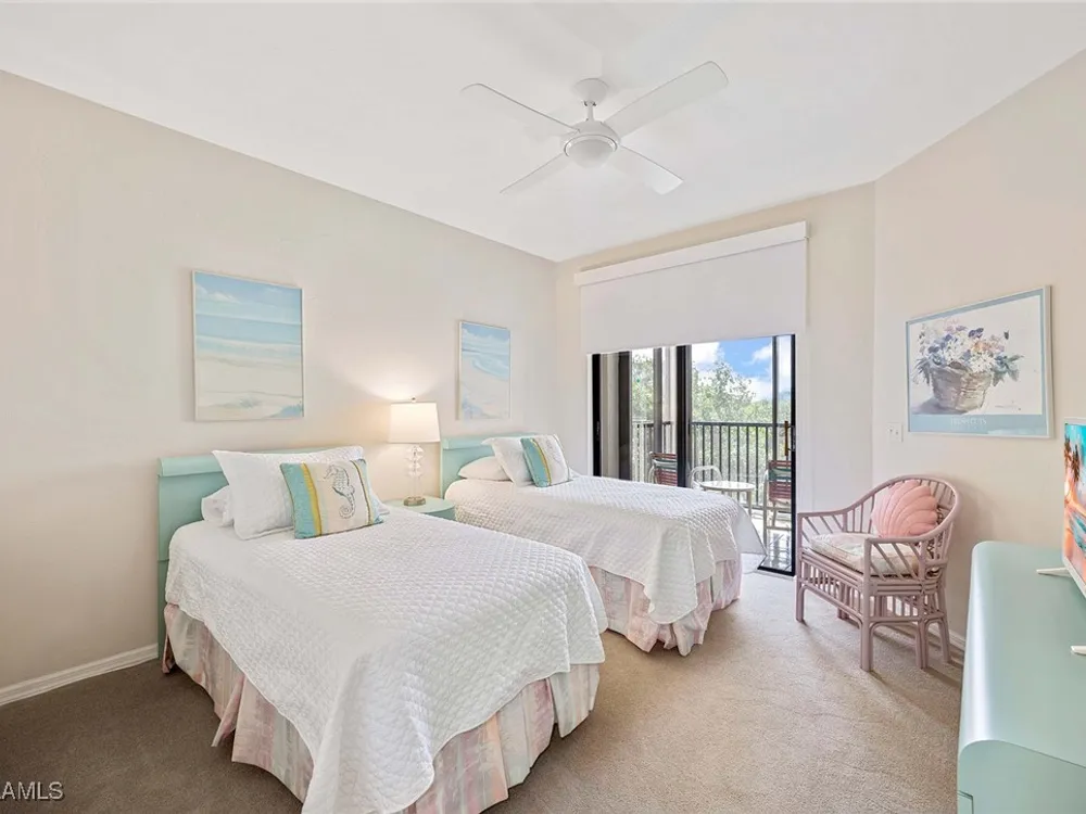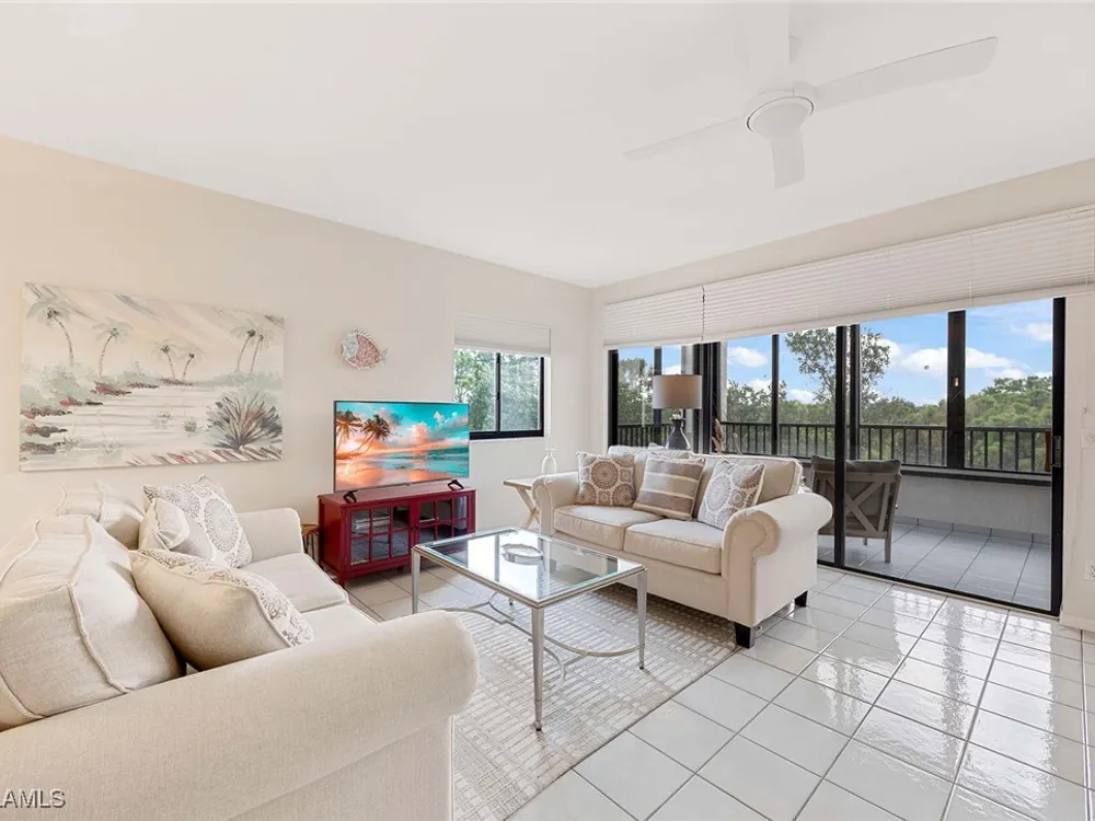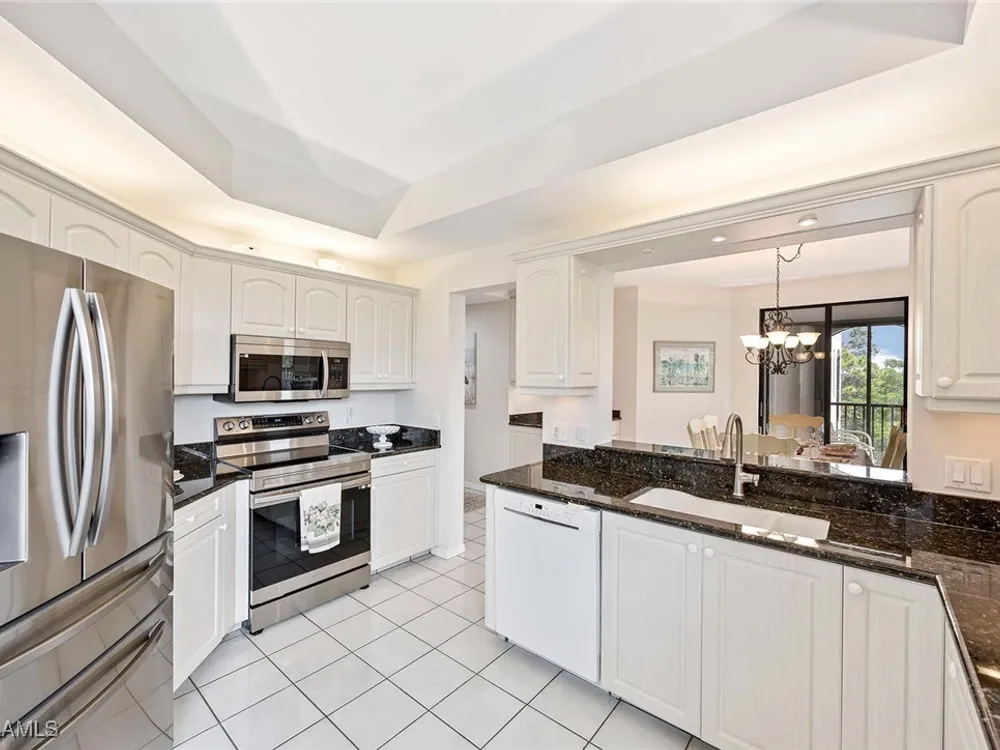 Valencia at Pelican Bay is one of the desirable locations in Naples! In the heart of Pelican Bay, it is a short distance to the Tennis Commons area, Boardwalk Beach tram and the Sand Bar Restaurant. The private Club at Pelican Bay is also a short distance and offers social and golf memberships. The Valencia community is a beautifully landscaped enclave including a large, heated pool, spa, sundeck and cabana overlooking a tranquil lake. Inspired by its namesake in Spain, Valencia was designed to encompass architectural elements reminiscent of Valencia. This fourth-floor residence has three balconies and spacious walk in primary bedroom closet. The kitchen features a new stove and refrigerator and access to a balcony. Every window and sliding glass door frames lush tropical vegetation and treetops with blue skies and sunlight. New carpet in both bedrooms and main bath has a shower and tub. Casually furnished for easy living.