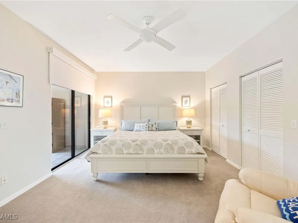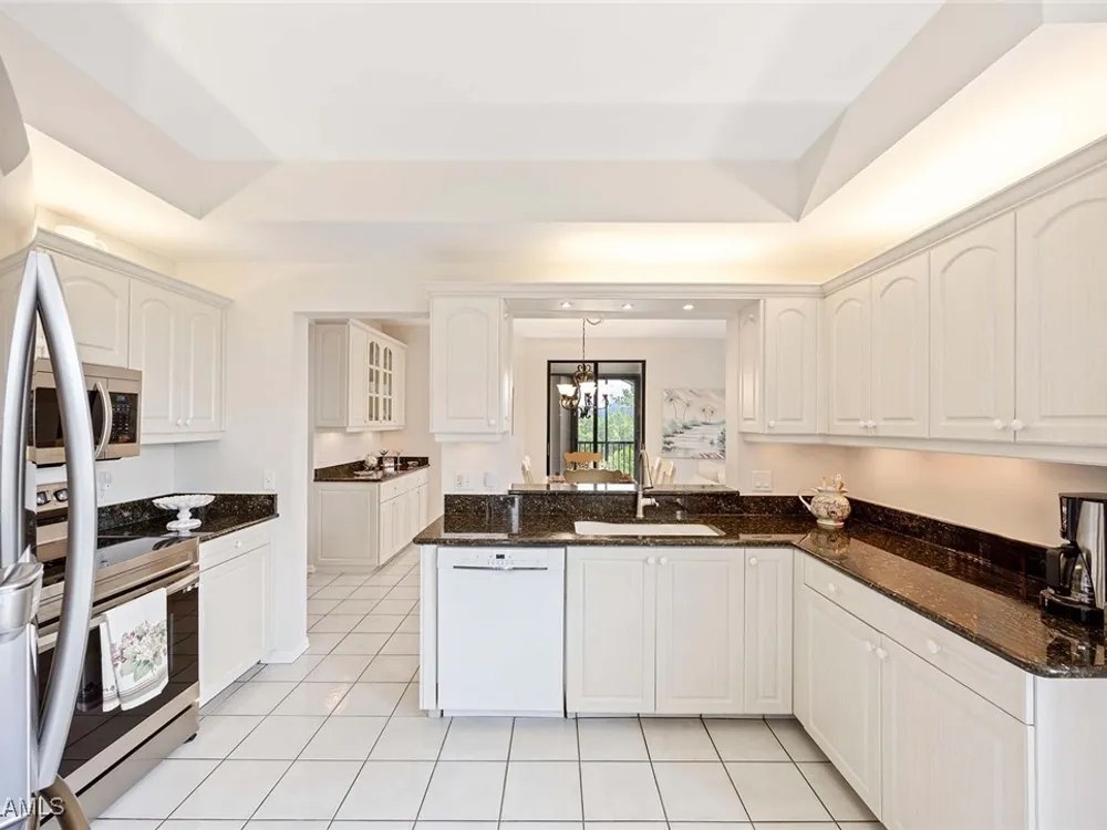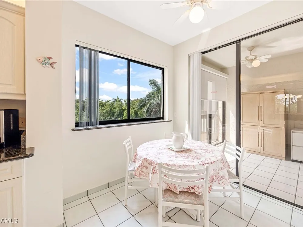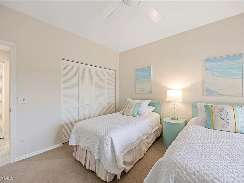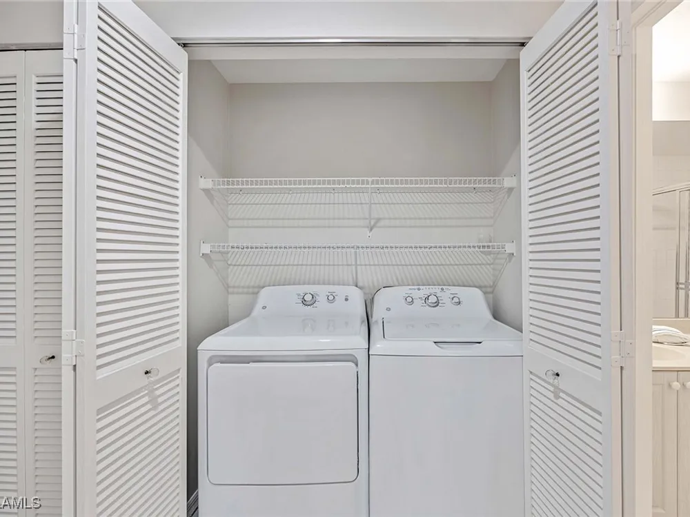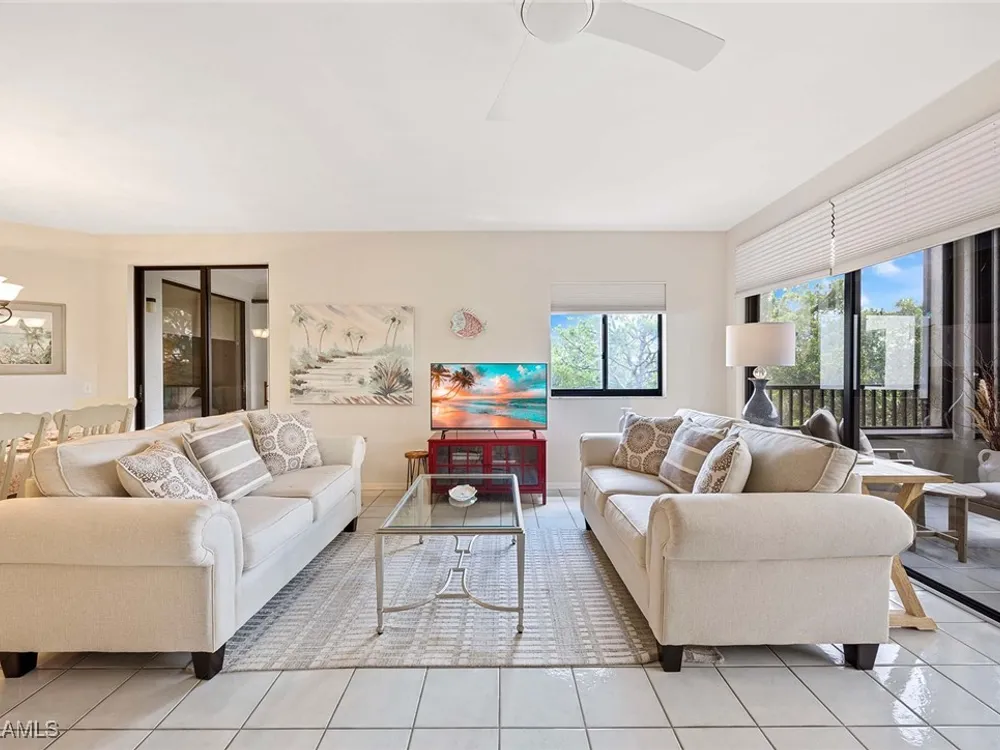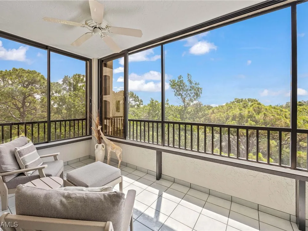 Valencia at Pelican Bay is one of the desirable locations in Naples! In the heart of Pelican Bay, it is a short distance to the Tennis Commons area, Boardwalk Beach tram and the Sand Bar Restaurant. The private Club at Pelican Bay is also a short distance and offers social and golf memberships. The Valencia community is a beautifully landscaped enclave including a large, heated pool, spa, sundeck and cabana overlooking a tranquil lake. Inspired by its namesake in Spain, Valencia was designed to encompass architectural elements reminiscent of Valencia. This fourth-floor residence has three balconies and spacious walk in primary bedroom closet. The kitchen features a new stove and refrigerator and access to a balcony. Every window and sliding glass door frames lush tropical vegetation and treetops with blue skies and sunlight. New carpet in both bedrooms and main bath has a shower and tub. Casually furnished for easy living.