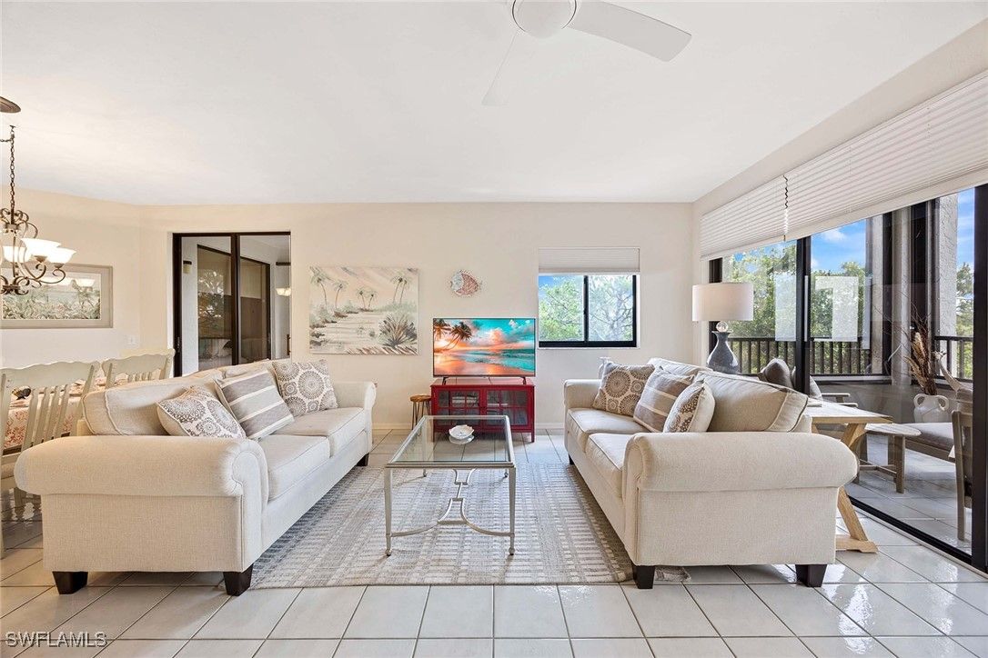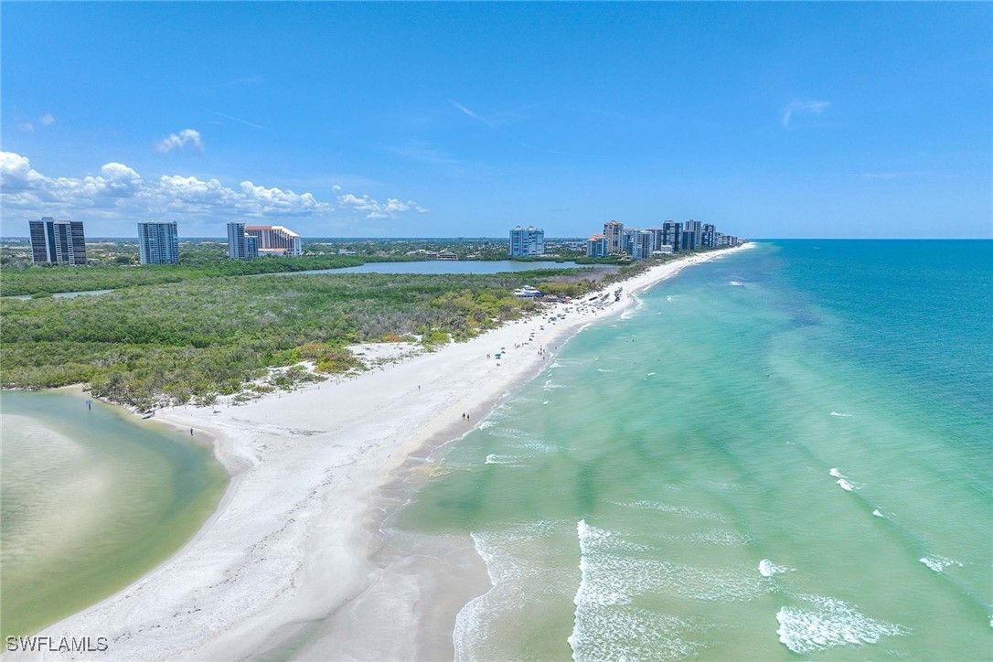Valencia at Pelican Bay is one of the desirable locations in Naples! In the heart of Pelican Bay, it is a short distance to the Tennis Commons area, Boardwalk Beach tram and the Sand Bar Restaurant. The private Club at Pelican Bay is also a short distance and offers social and golf memberships. The Valencia community is a beautifully landscaped enclave including a large, heated pool, spa, sundeck and cabana overlooking a tranquil lake. Inspired by its namesake in Spain, Valencia was designed to encompass architectural elements reminiscent of Valencia. This fourth-floor residence has three balconies and spacious walk in primary bedroom closet. The kitchen features a new stove and refrigerator and access to a balcony. Every window and sliding glass door frames lush tropical vegetation and treetops with blue skies and sunlight. New carpet in both bedrooms and main bath has a shower and tub. Casually furnished for easy living.