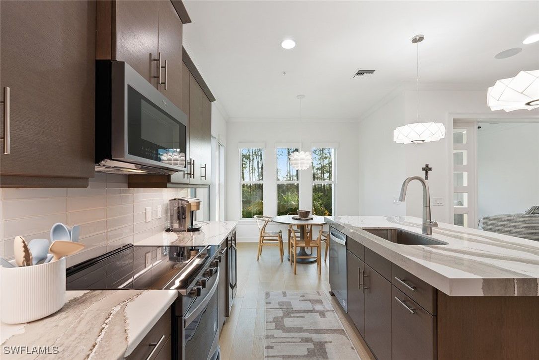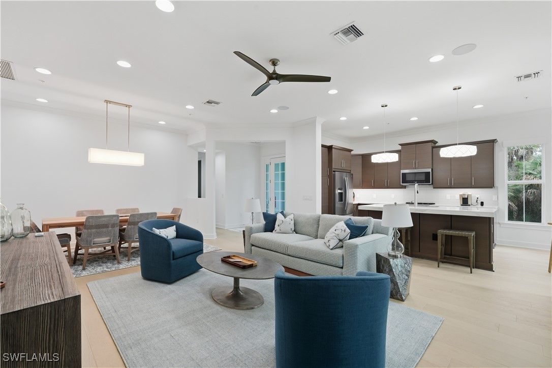 Proud to present this wonderful end-unit first floor coach home, positioned on a quiet cul-de-sac, surrounded by natural beauty outside, with abundant natural light throughout inside, perfectly situated on an oversized, end lot. Embraced by luxury this beautiful home is being offered turnkey furnished, featuring open-concept living with upgrades galore, 3 bedrooms, 3 bathrooms, Den, French doors onto a beautiful Sunroom and oversized 2 car garage. Tasteful window treatments adorn every room. The primary suite is a precious retreat with generous bathroom and large walk-in closets. Enjoy relaxing with family and entertaining friends at spacious island counter in the well equipped kitchen with soft close cabinetry, quartz countertops, and kitchen pantry. The Isles of Collier Preserve captures the timeless architecture and traditions of Old Naples. Over half of the 2,400 acres are lakes, nature preserves and natural habitat. A popular destination for snowbirds, the Isles allows 3 leases per year with a 30-day minimum. The sought after community of The Isles offers incredible amenities; fabulous Florida Clubhouse inspired by The Grand Floridian, fitness and wellness center, resort-style swimming pool, lap pool, tennis, pickleball & bocce ball courts, boat house & kayak launch, 8 miles of kayak, biking and hiking trails along the tranquil Cypress Waterway, Catch and Release fishing and the wonderful Overlook Bar & Grill! Enjoy life in Naples - moments from the Bayshore Arts District, plenty of restaurants, boating options, Bayview Park and next to the US Open Pickleball Championship courts! 4 miles to downtown Naples, sugary sand beaches, and an abundance of shopping and dining!