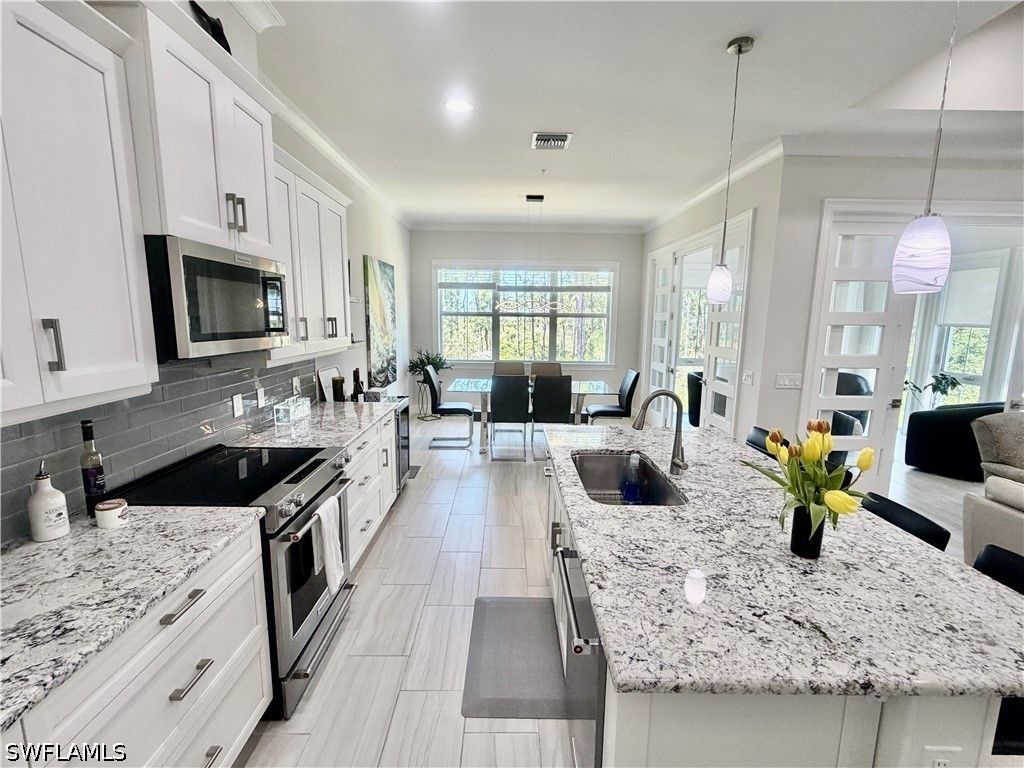 **PARADISE FOUND – Private Preserve Retreat in Isles of Collier Reserve Welcome to your serene escape on Dominica Drive, nestled within the amenity-rich Isles of Collier Reserve. This beautifully maintained 2-bedroom, den, sunroom, 2-bath coach home with private elevator offers exceptional privacy, scenic views, and elevated living. Unmatched Privacy & Natural Beauty Perfectly positioned at the end of a quiet street, this home enjoys minimal traffic and a generous setback from the road. Relax with peaceful preserve views from both the front and back, and take in breathtaking sunset skies each evening. Wildlife enthusiasts will love the frequent sightings of eagles, osprey, owls, deer, tortoises, and more—all just steps from nearby walking trails and waterways. Spacious Kitchen for Everyday Living & Entertaining At the heart of the home, the open-concept kitchen features a large island with seating for four, a deep oversized sink, and abundant storage including a walk-in pantry and pull-out shelving. Enjoy filtered cold water at both the sink and refrigerator, plus a dedicated wine fridge with floating shelves—perfect for a stylish beverage station. Light-Filled Living & Dining Areas The expansive dining area comfortably hosts 8+ guests and is framed by triple windows showcasing tranquil preserve views. The inviting family room boasts a dramatic 12-foot vaulted ceiling with painted beams, a fan/light fixture, and ample space for a large-screen TV—ideal for relaxing or entertaining. Sunroom Sanctuary Your private retreat awaits in the sunroom, complete with glass doors, 7-foot windows on two sides, and no-see-um screens for fresh, pest-free air. Roller shades provide comfort and shade, making this the perfect spot for morning coffee or evening unwinding. Flexible Layout with Elegant Finishes A tiled foyer leads to wood stairs and an airy second level with 10+ foot ceilings, full tile flooring, and cove molding throughout. The versatile den—featuring stylish barn doors—easily converts into a third bedroom, office, or guest space. Comfortable Bedrooms & Spa-Inspired Baths The spacious primary suite features a tray ceiling, a large custom walk-in closet, and a spa-like bath with dual sinks and an oversized shower. The second bedroom offers generous storage and is paired with a beautifully appointed full bath. Convenience Meets Smart Living Private elevator from garage to main living level Oversized 2-car garage with 12’ ceilings, EV outlet, and extensive storage Smart home features: security system, thermostat, lighting, garage camera, and more Dedicated laundry/HVAC room with added storage and regular servicing Upgraded Systems & Peace of Mind Includes a water heater with powered anode, hot water circulation pump, upgraded shutoff valves, and long-life smoke/CO detectors (installed June 2025)**** Located 4 miles from active 5th Ave. sparkling lights and 4.5 miles from The Gulf of America. ** WELCOME TO PARADISE **