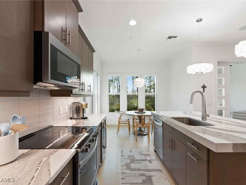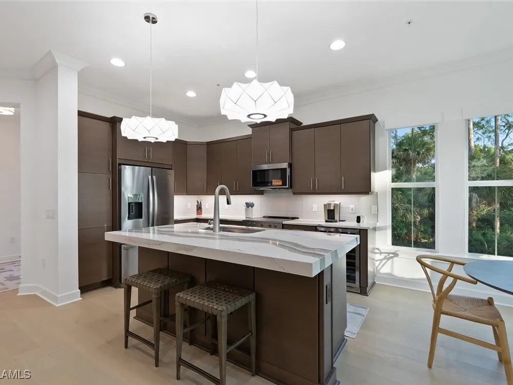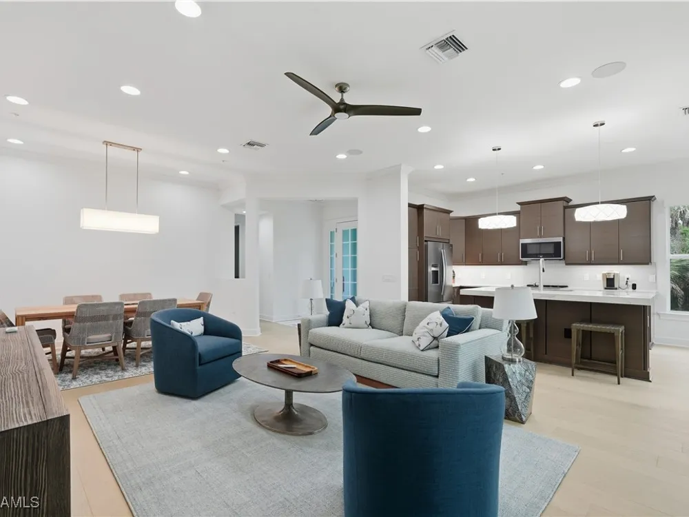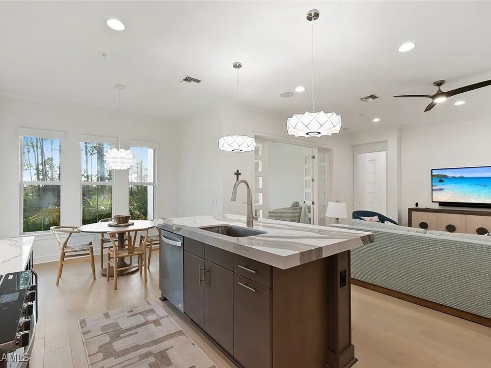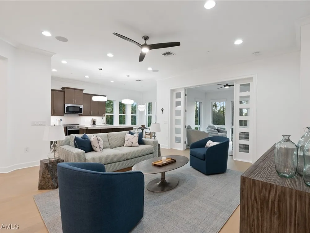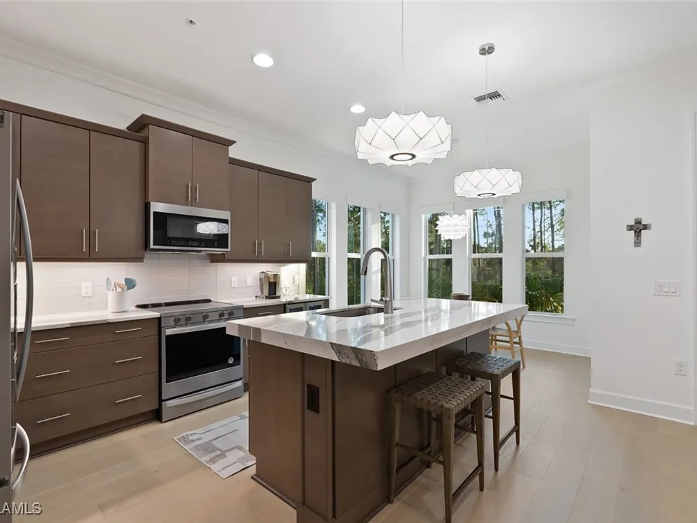 Proud to present this wonderful end-unit first floor coach home, positioned on a quiet cul-de-sac, surrounded by natural beauty outside, with abundant natural light throughout inside, perfectly situated on an oversized, end lot. Embraced by luxury this beautiful home is being offered turnkey furnished, featuring open-concept living with upgrades galore, 3 bedrooms, 3 bathrooms, Den, French doors onto a beautiful Sunroom and oversized 2 car garage. Tasteful window treatments adorn every room. The primary suite is a precious retreat with generous bathroom and large walk-in closets. Enjoy relaxing with family and entertaining friends at spacious island counter in the well equipped kitchen with soft close cabinetry, quartz countertops, and kitchen pantry. The Isles of Collier Preserve captures the timeless architecture and traditions of Old Naples. Over half of the 2,400 acres are lakes, nature preserves and natural habitat. A popular destination for snowbirds, the Isles allows 3 leases per year with a 30-day minimum. The sought after community of The Isles offers incredible amenities; fabulous Florida Clubhouse inspired by The Grand Floridian, fitness and wellness center, resort-style swimming pool, lap pool, tennis, pickleball & bocce ball courts, boat house & kayak launch, 8 miles of kayak, biking and hiking trails along the tranquil Cypress Waterway, Catch and Release fishing and the wonderful Overlook Bar & Grill! Enjoy life in Naples - moments from the Bayshore Arts District, plenty of restaurants, boating options, Bayview Park and next to the US Open Pickleball Championship courts! 4 miles to downtown Naples, sugary sand beaches, and an abundance of shopping and dining!