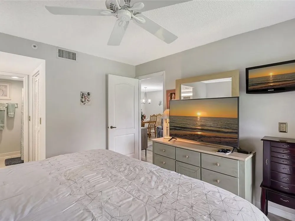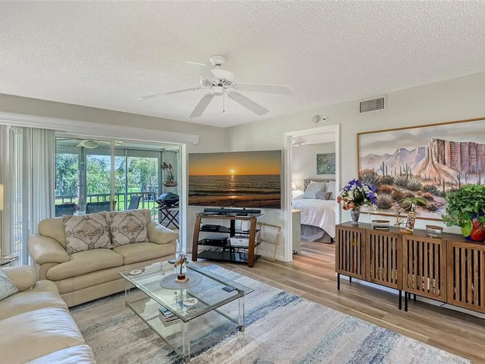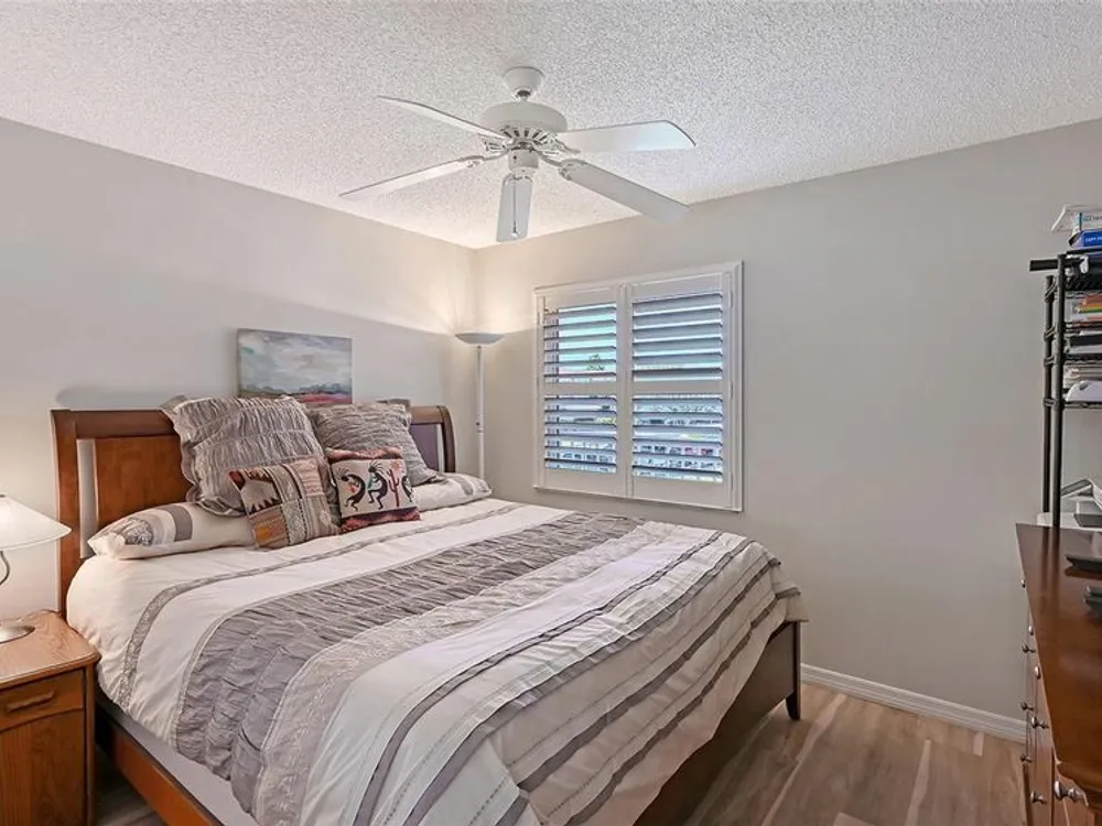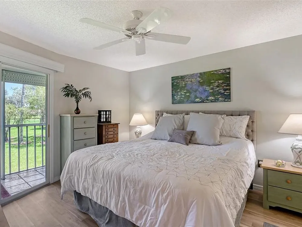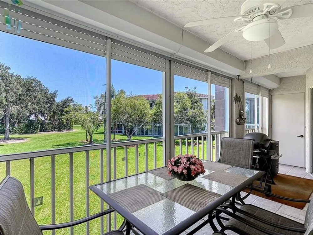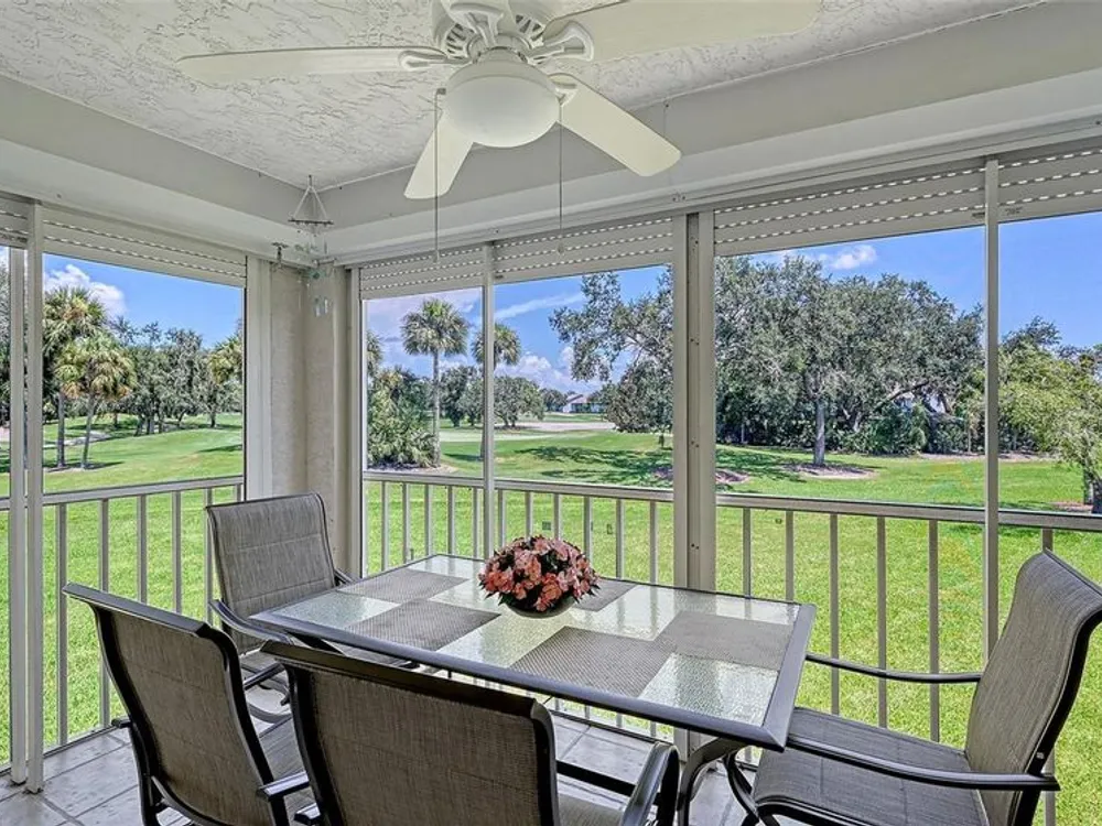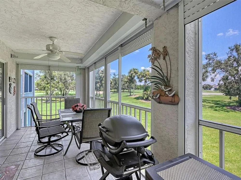 This meticulously updated second-floor condo includes a Class A Golf Membership to award-winning Tara Golf & Country Club, where you'll enjoy immediate access to a newly renovated 18-hole championship course, resort-style amenities, and an active social scene. Whether you're an avid golfer or simply looking for a vibrant, amenity-rich community, Tara is the place to be. Step inside to find a beautifully updated kitchen featuring a brand new composite double-sink, MOEN faucet, and garbage disposal, along with new quartz countertops and a marble backsplash. The adjacent dinette/bar area includes custom soft-close cabinetry and drawers, a built-in lazy Susan, and matching quartz surfaces and backsplash - a perfect blend of function and style, making entertaining guests easy. The spacious layout includes a primary suite with direct lanai access and sweeping golf course views, along with a large walk-in closet with custom built-ins and ensuite primary bath. The guest bedroom and updated second bath are located on the opposite side of the unit for added privacy. Both bathrooms feature spacious walk-in showers. The open living area offers ample space to relax or host friends, and the laundry closet includes built-in shelving for added storage. Enjoy peace of mind with electric hurricane shutters enclosing the lanai - ideal for locking up when traveling and for added storm protection. Living in Tara means more than just golf. Residents enjoy two pools, a state-of-the-art fitness center, bocce ball, bridge, and new pickleball courts coming Fall 2025. After a day on the course, or at the pool, unwind at the Grill Room or meet friends for cocktails at the Club’s lively gathering bar. Tara is perfectly located just off I-75, minutes from UTC Mall, Sarasota Airport, Lakewood Ranch Main Street, and the Tampa/St. Pete metro area. This thoughtfully updated condo offers the perfect blend of comfort, location, and resort-style living with golf at your doorstep. Don't wait - schedule your private showing and start living the golfer's dream today!