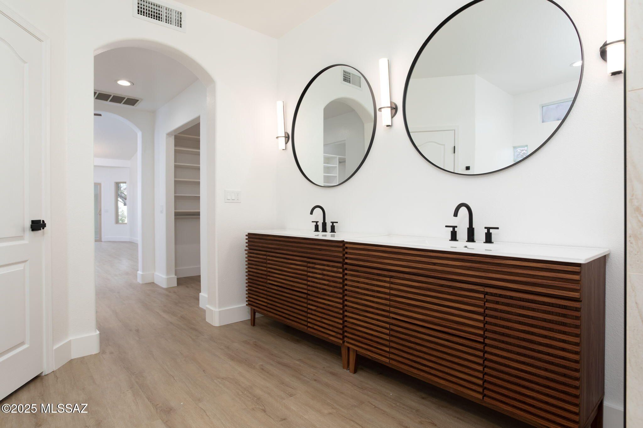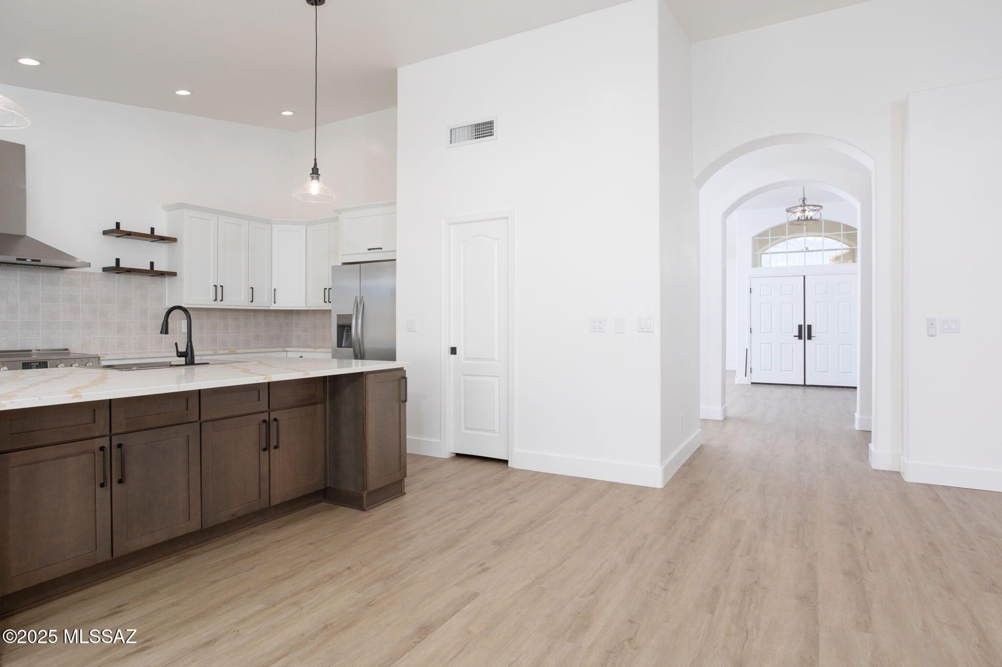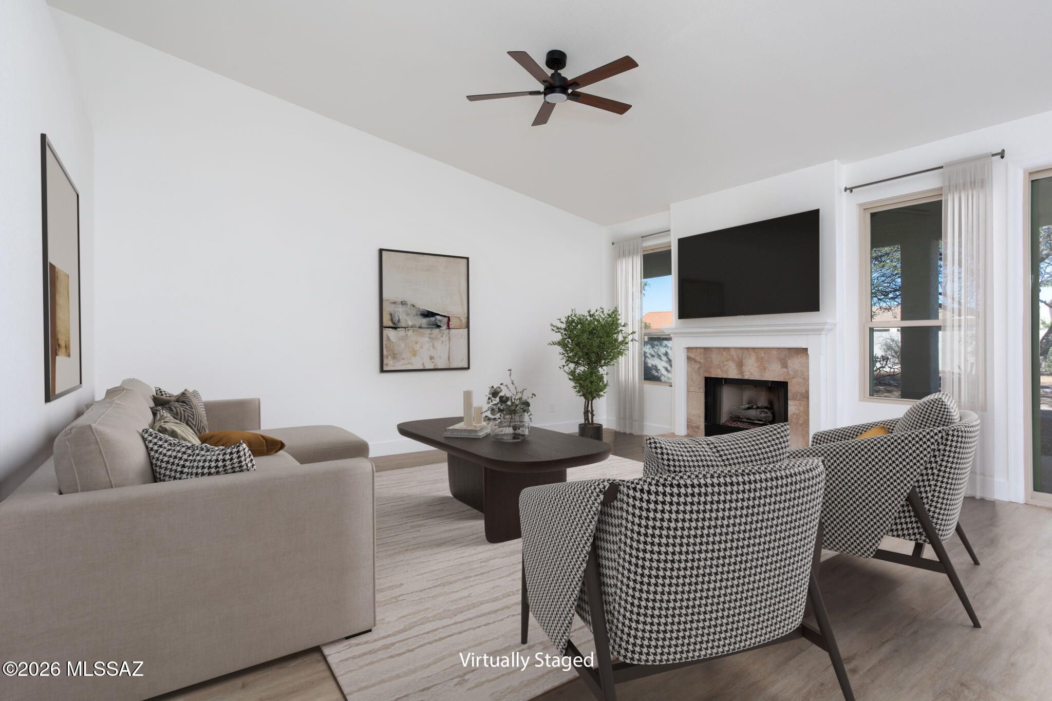 Stunning remodeled Galleria with mountain views. Enter the front door into a bright, light filled living room and formal dining with brand new LVP flooring throughout. A dream gourmet kitchen with new two tone cabinets, large island, quartz countertops, stainless steel appliances, tons of storage, a huge pantry and family room with gas fireplace. The large primary suite includes a sitting area, two walk-in closets, remodeled bath with gorgeous walk in shower, soaking tub and dual vanity. Also includes nice office plus powder bath. Laundry room with storage and utility sink leads to 3 car garage. 2 bed/1 bath upstairs ''casita'' perfect for guests. New HVAC to be installed plus new partial roof. New interior/exterior paint. This stunning home is a must see!