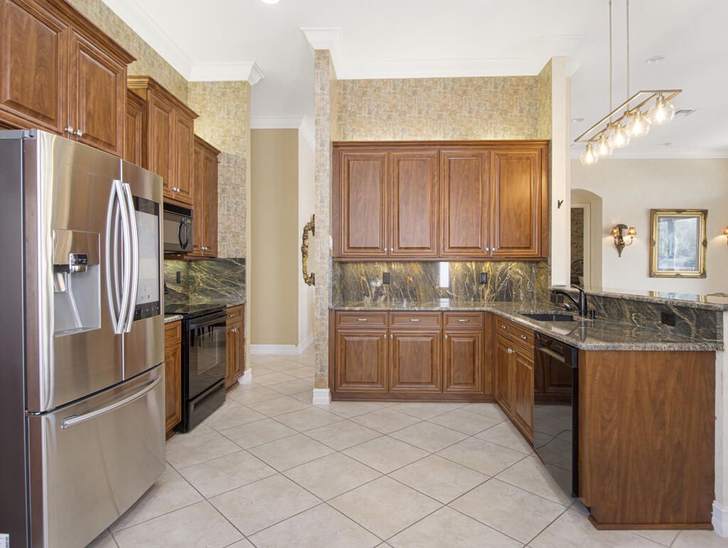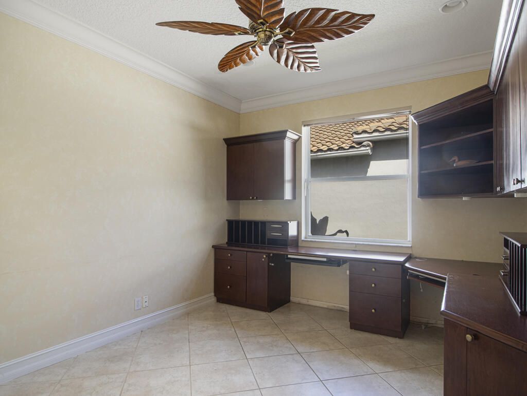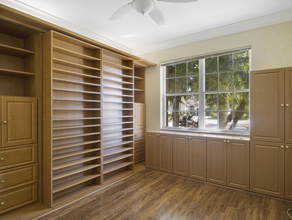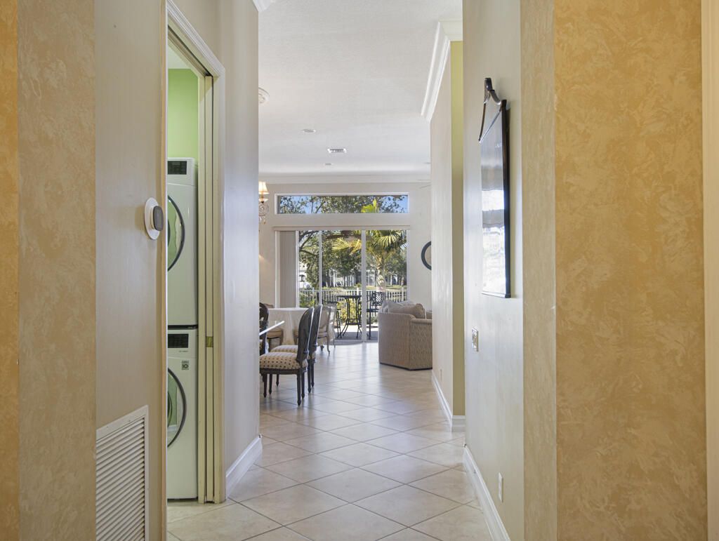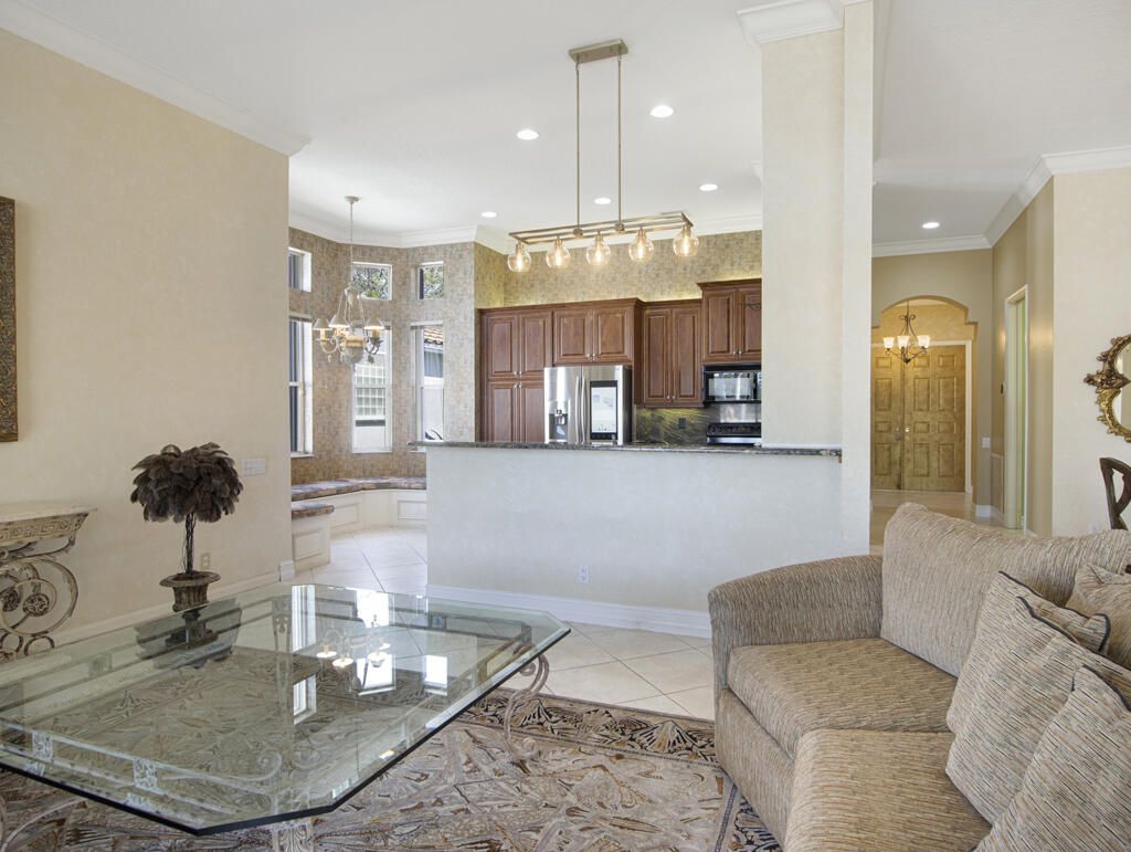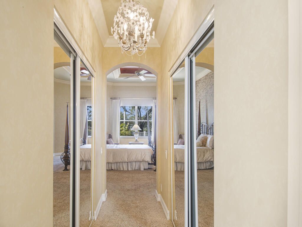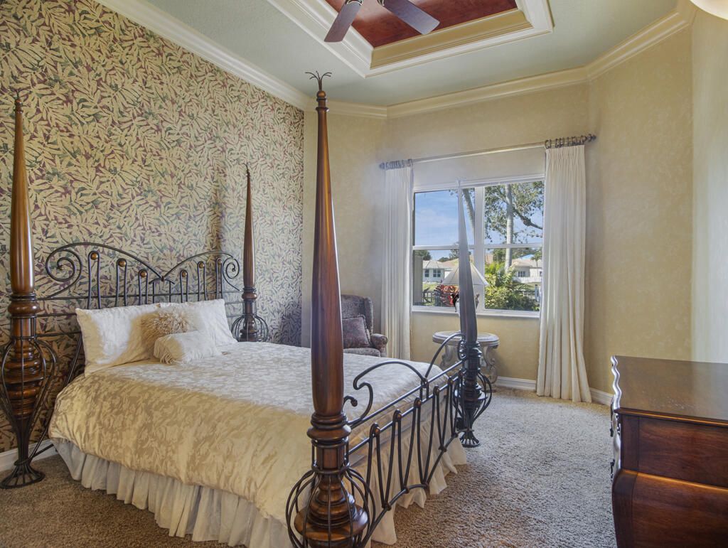 Step into S. Florida's best, a sophisticated LAKEFRONT on a CUL DE SAC in luxurious Bellaggio, an active adult community. Enjoy uncommon peace of mind with features such as: new 2024 ROOF, 2025 Whole-house GENERATOR, 2021 AC w/UV PURIFICATION, 2022 water heater, 2023 refrigerator, 2024 washer/dryer and Accordion shutters throughout. The traditional interior is a perfect canvas for your personal touches. Note, Murphy's bed, bay window bench, high ceilings & large windows flood the space with natural light & dreamy lake views. The oversized & fenced patio is a tropical showstopper with coy-pond, exotic palms & sculptures. Centrally located with quick access to the FL Turnpike, 441, the beach, equestrian sports, hospitals, PBI airport & miles of shopping & dining - this home has it all. Measurements and information offered is deemed reliable but is not guaranteed. Storage cabinets in the garage convey. Offered As-Is with right to inspect.