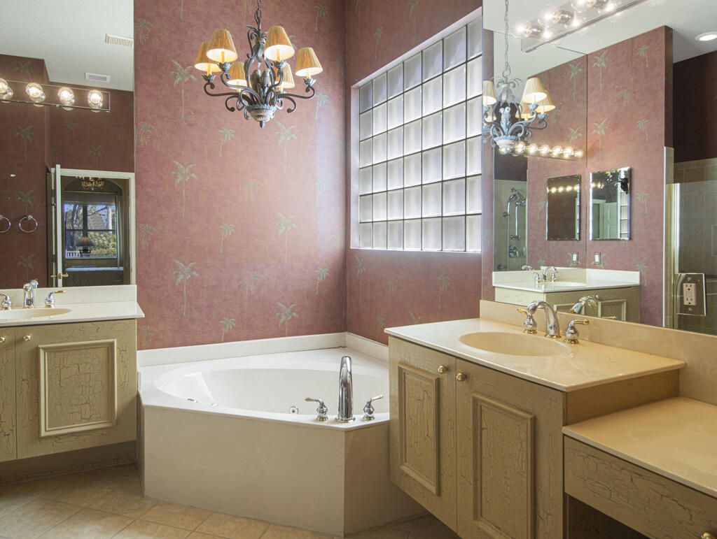 - High Ceilings, Walk-In Closet(s), Split Bedrooms, Breakfast Area, Separate/Formal Dining Room, Snack Bar, Dual Sinks, Main Level Primary, Separate Shower, Soaking Tub