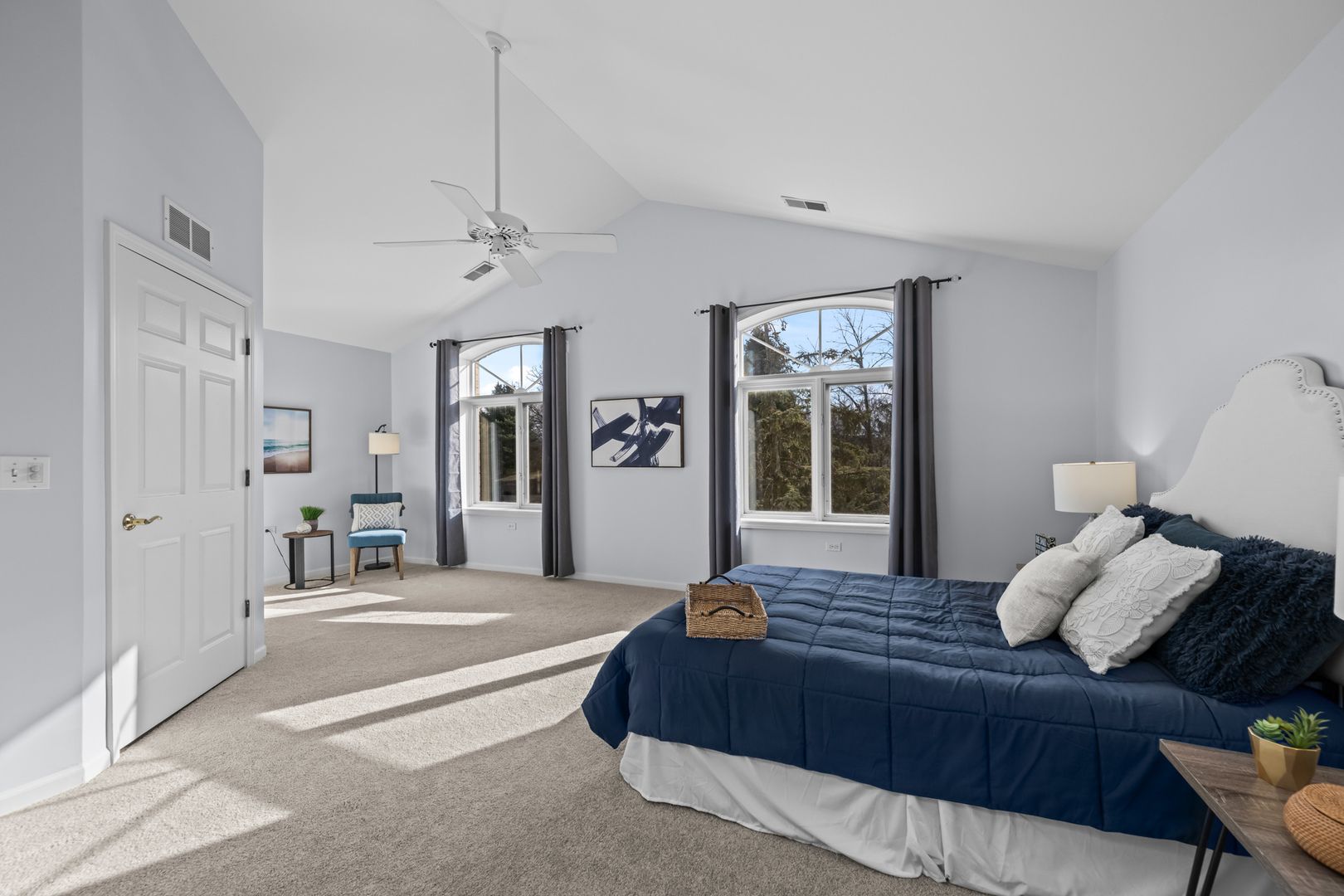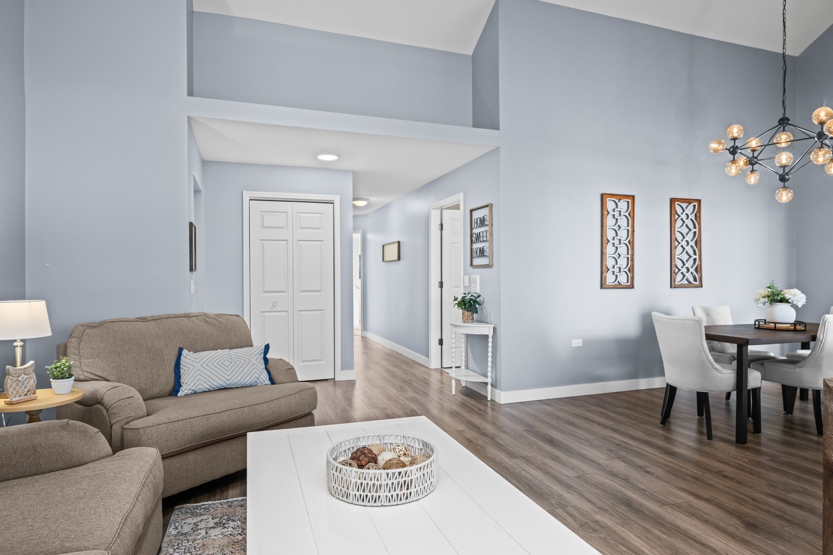 Light-filled and inviting condo in the highly sought-after The Pines subdivision of Tinley Park, a well-maintained 55+ adult community. (Note: The Pines allows up to one fifth of the units to be owned by individuals aged 18-54. This unit is available to an under 55 buyer!) Nestled in a quiet, close-knit community, this peaceful home offers serene pond views and a welcoming atmosphere throughout. Step inside to a spacious, open-concept living and dining area featuring vaulted ceilings and a gas fireplace-perfect for both everyday comfort and entertaining. The thoughtfully designed kitchen provides generous counter space and a tranquil eat-in area overlooking the pond, while the separate dining room easily accommodates dinner parties and gatherings. Enjoy outdoor relaxation on the large screened-in balcony, complete with an additional walk-in storage room. The sun-drenched primary suite is a true retreat, offering a large walk-in closet and a spa-like ensuite bath with abundant counter space, a separate shower, and a luxurious whirlpool tub. A spacious second bedroom with ample closet space and an additional full bath ensures comfort for guests. Recent updates include brand-new carpeting in both bedrooms and fresh paint throughout the kitchen, bedrooms, and bathrooms in soothing, neutral tones. Additional highlights include an attached one-car garage with extra storage, driveway space, and plentiful guest parking just steps away. This quiet, safe, and beautifully kept community offers the perfect blend of comfort, convenience, and low-maintenance living. Home is part of an Estate and being offered AS-IS.