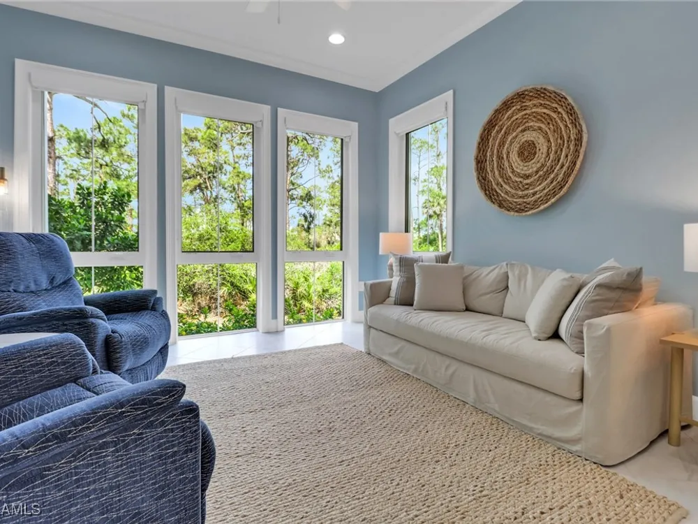 Experience elevated living in The Isles of Collier Preserve with this stunning newer construction coach home spanning over 2,200 sqft. This 3bd+den, 3 bath residence exudes elegance, comfort, and sophistication. The open-concept layout, and thoughtful design details feature an intimate sunroom and dining area that seamlessly connects to the well-equipped kitchen. Walls of windows draw your eyes to the private preserve views that offer endless entertainment of nature. The primary suite is a serene retreat with abundant closet space and generous walk-in shower. You are sure to appreciate the efficient use of space with two guest bedrooms (1 suite), and flex room/den. Highlights include upgraded tile floor throughout, quartz countertops, custom plantation shutters and electric blinds, impact-resistant windows and doors, whole home water filtration system plus reverse osmosis system in kitchen, and an oversized garage that offers plenty of extra storage space. Enjoy the privacy and convenience of being positioned on a quiet cul-de-sac with nearby access to nature trails and the community mailboxes. This extraordinary home is conveniently located within the community to all the Isles’ amenities: The Isles Club with state-of-the-art fitness center, resort pool, lap pool, bocce, tennis and pickleball courts, The Overlook Bar and Grill, kayak launch, trails and so much more! The Isles of Collier Preserve is located just 4 miles from Naples' prestigious 5thAvenue dining, entertainment, shopping and white sand beaches, and neighbors the Naples Botanical Gardens and Bayshore Arts District.