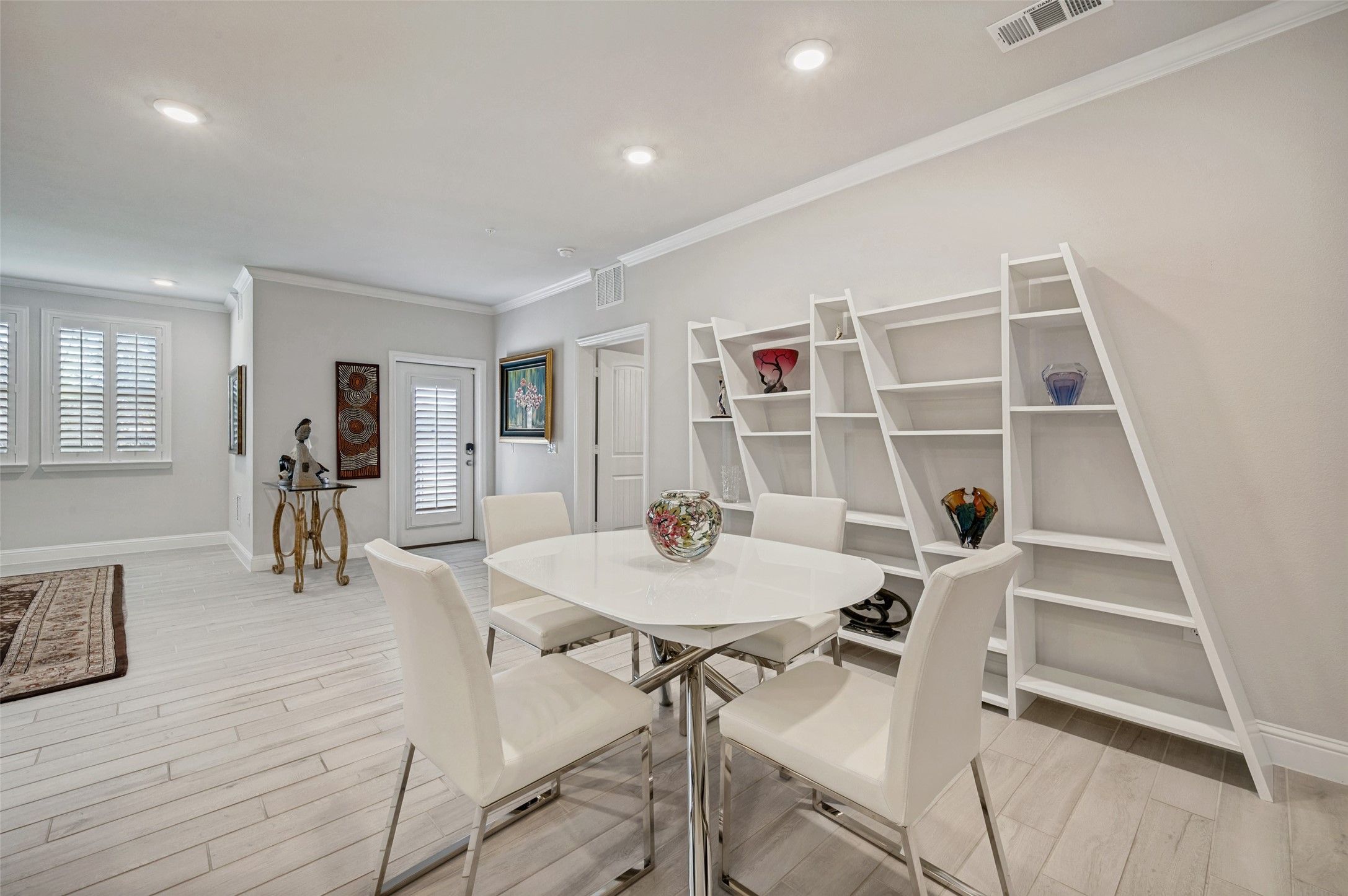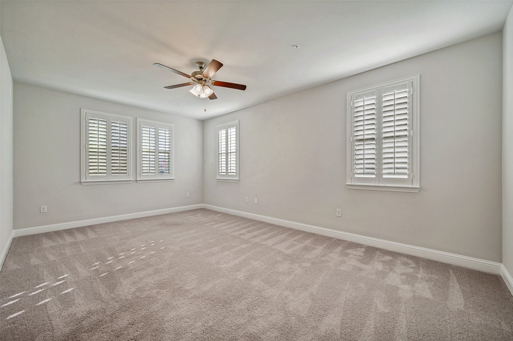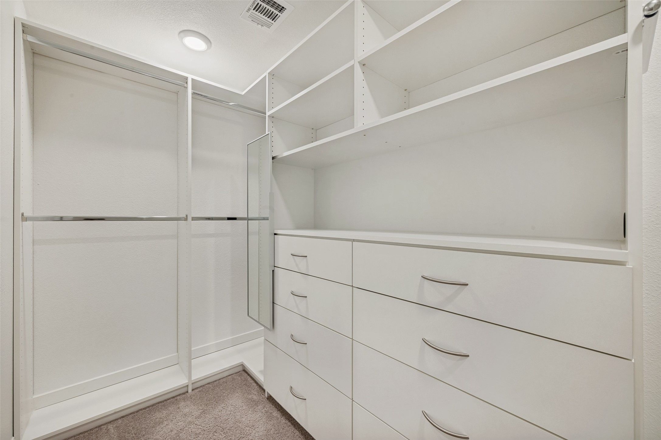 Welcome this beautifully maintained 2-bedroom, 2-bathroom condo with an expansive home office in Allen's luxurious 55+ Adult Community at the Gatherings at Twin Creeks. This convenient First Floor condo is located close to the main lobby and includes a single oversized garage located just steps away from the condo's front door! Inside the condo you will find an open and airy floor plan that maximizes space and natural light, creating an inviting and refreshing ambiance. The spacious living area flows seamlessly into a well-appointed kitchen featuring sleek countertops, stainless steel appliances, and ample cabinet space. The large kitchen pantry is a must see with several pull out shelves and a custom tool rack perfect for hanging additional tools, appliances and much more. The primary bedroom offers a retreat-like atmosphere with its generous layout, complete with an en-suite bath featuring contemporary fixtures and finishes. The second bedroom is equally well-sized, perfect for guests, accompanied by an additional full bath. Over $30k worth of custom closets and cabinetry can be found throughout the condo making storage convenient and organized. A built in storage safe is also securely tucked away in the secondary closet to keep safe all of your precious valuables. The home office is large and could easily be converted to a third bedroom. The office includes several built in shelves, two built in desks and several storage cabinets and drawers. Other features include newly installed plantation shutters throughout all rooms, as well as an epoxy floor in the garage. The condo includes a spacious laundry room featuring cabinets and a large sink for convenience. Residents can also enjoy fabulous amenities including a lap pool with cabanas, social areas, putting green, dog park, fitness center and pickle ball courts. Located in a desirable area near shopping and dining, this condo is just moments away from the best that Allen has to offer.