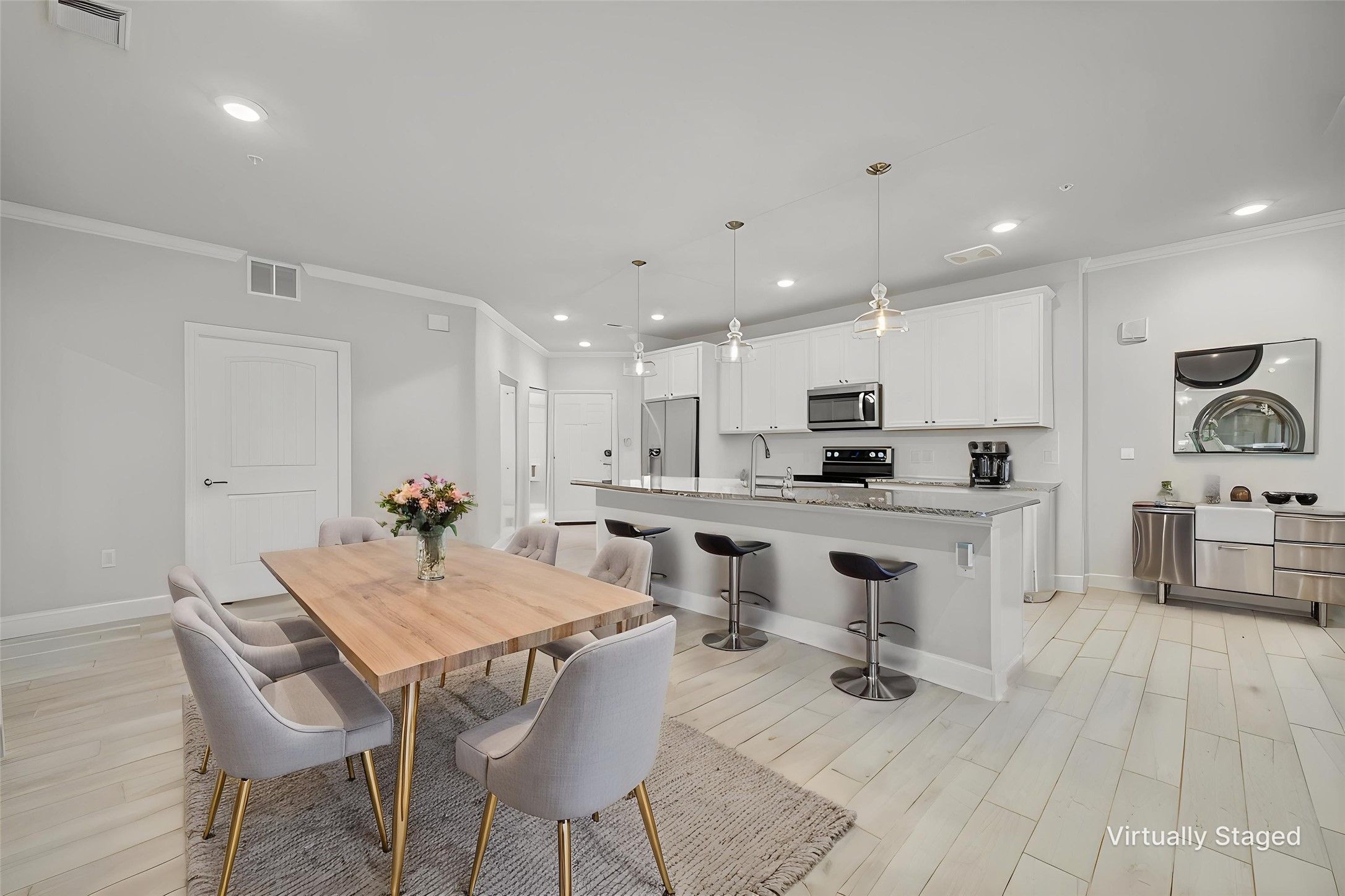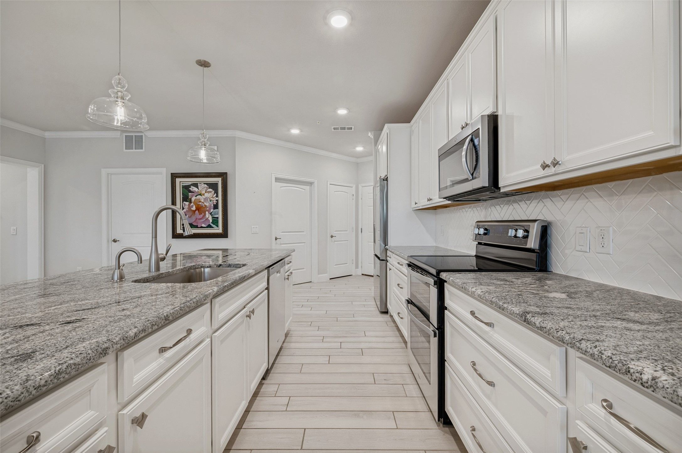 - Decorative/Designer Lighting Fixtures, Eat-in Kitchen, Granite Counters, High Speed Internet, Kitchen Island, Open Floorplan, Pantry, Cable TV, Walk-In Closet(s), Wired for Sound